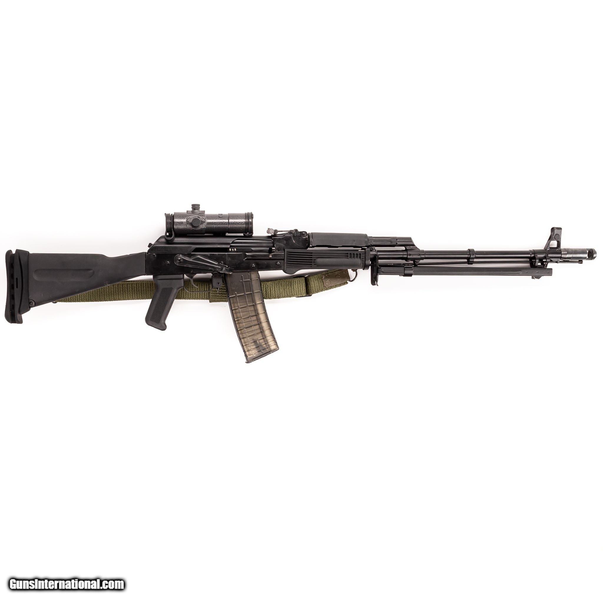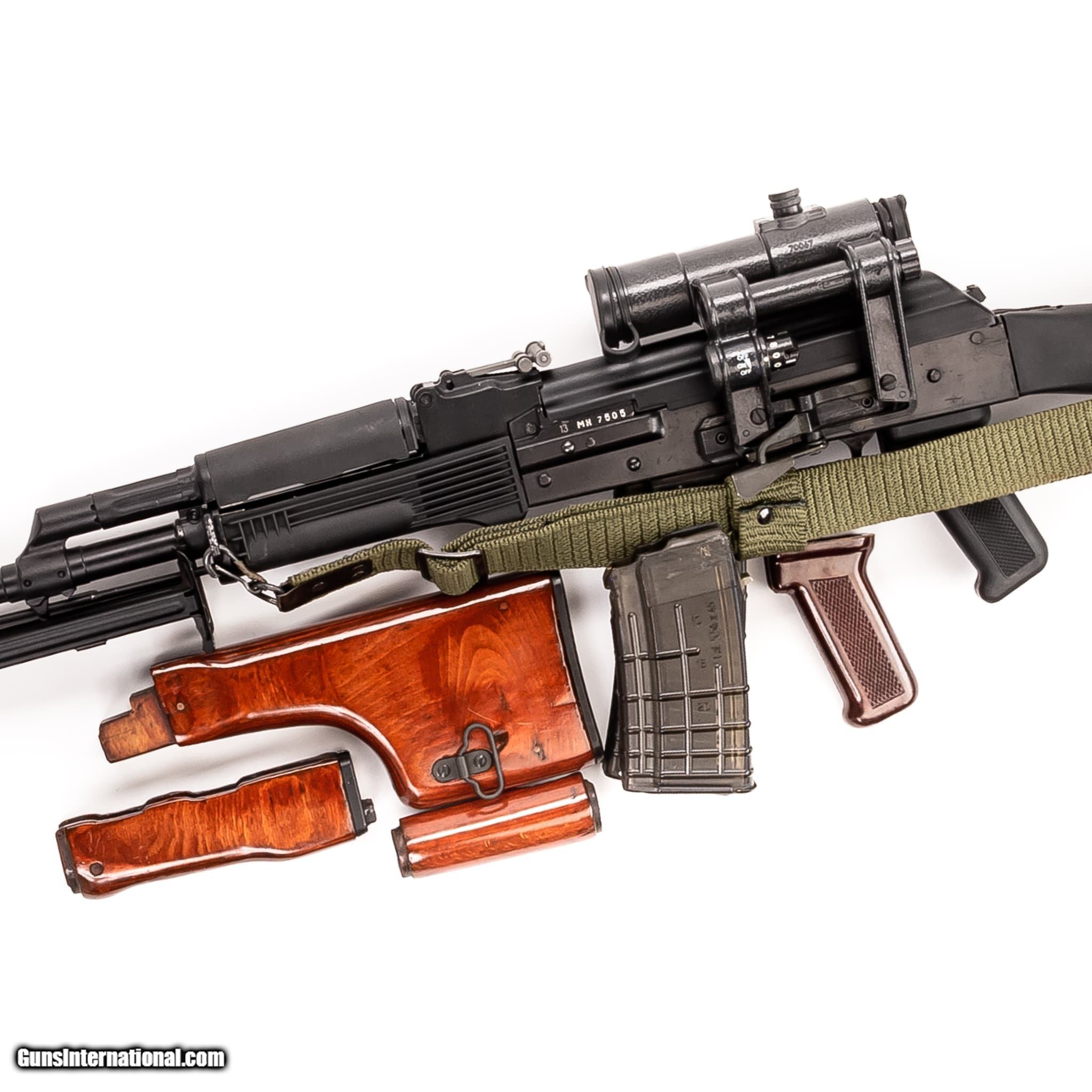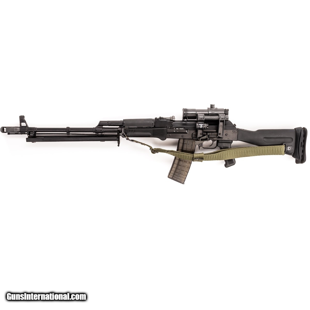 Description: Guns Listing ID: 394061 In the early 1960s, the Russian defense ministry was aware that they needed a change in their support weapon platform from the belt fed machine used for infantry squad tactics and movements to a lighter weapon system that could accept the same magazine system that regular riflemen This pushed Mikhail Kalashnikov to design the RPK, an AK pattern rifle with a heavy and beefed up receiver, trunnion, and barrel. The RPK and its variants have been in service ever since. This is a COMBLOC kit built on a US made/stamped receiver. This NDS-8 features a bipod, a 30-round magazine, a 20-round magazine, a spare Russian RPK bakelite furniture set included, a Venezuelan made PK-A Red Dot sight, a sling, and a cleaning rod. SOLD Manufacturer: D.C. INDUSTRIES INC Model: . NDS-8 Caliber Info: 5.56X45MM NATO Condition: Used - Non-Certified Barrels: 22 BARREL Finish: BLACK |