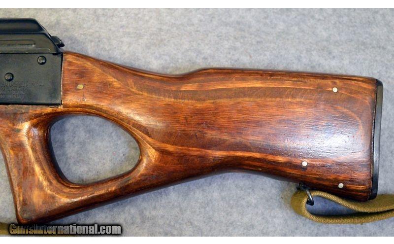 Description: This is a semi-automatic Egyptian Maddi ARM rifle chambered in 7.62×39 mm. It has 16.5" blued barrel with semi-hooded front sight and range adjustable rear notch sights. This rifle has matching wooden fore arm and a thumb hole stock that are in very good condition, with some markings. The metal is also in very good condition, with some markings. The bore is bright and shiny. This rifle comes with two magazines and a sling. 7.62X39mm SOLD Chambers: Semi-automatic Metal Condition: Very good, with some markings. Wood Condition: Very good, with some markings. Bore Condition: Bright and shiny. Barrels: 16.5" Blued barrel. Triggers: Single curved Trigger. Stock Dimensions: 13" LOP Fore End: Wooden fore end. Butt Pad: Metal butt plate. Weight: 7 lb 9 oz Sights: Semi-hooded front sight and range adjustable rear notch sights. Item Location: Huntsville, AL |