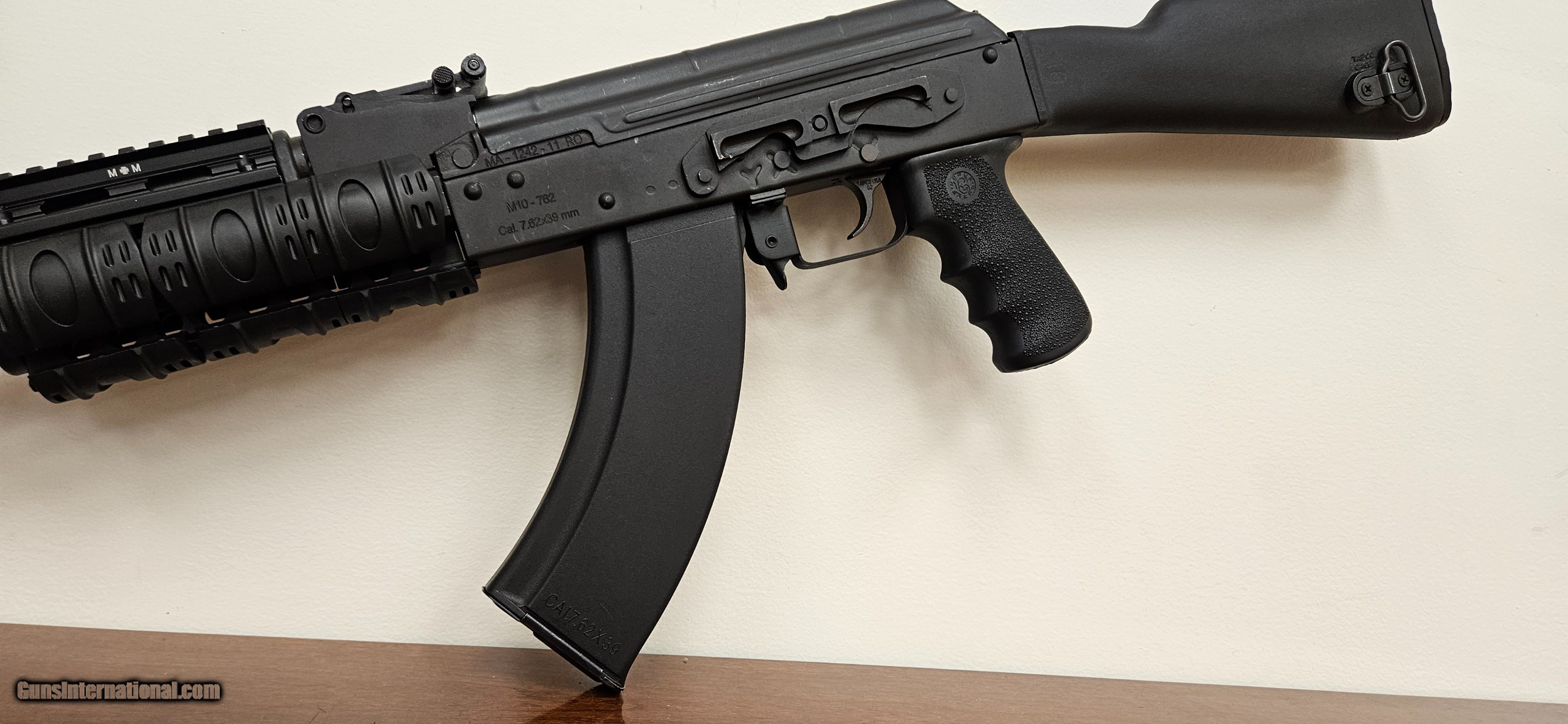 Description: Up for sale is a FA Cugir M10-762 chambered for 7.62x39. This rifle is supposedly unfired since being purchased new. This rifle comes with the box and is equipped with a Hogue pistol grip, fixed Tapco stock, Tapco G2 trigger, M+M Industries quad rail, and a windage adjustable RPK style rear sight. Internet sales are managed 10am to 6pm MST M-F. Our inventory listed for sale is not live, meaning just because you click “BUY NOW” doesn’t mean you have purchased the firearm. We consider a sale final once we have received payment. All our listings are also available for sale in our retail store. Shipping starts at $75 for long guns and $50 for handguns We ship to the contiguous United States and Alaska, with some state law restrictions. SOLD Rifle Caliber: 7.62x39mm Manufacturer: FA Cugir Model: M10-762 Item Location: Lakewood, CO |