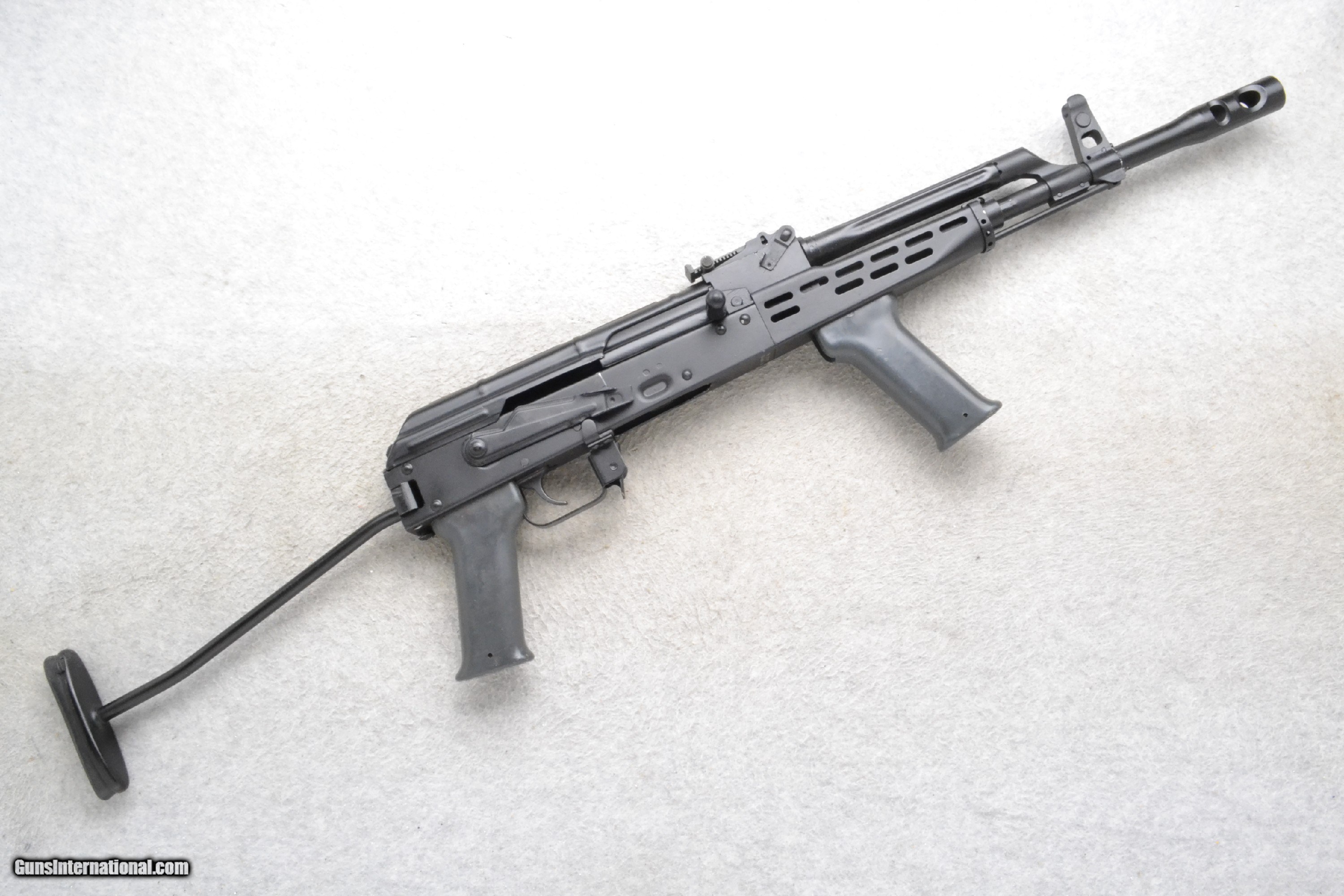 Description: This FEG SA 2000M is a right-hand semi-auto rifle in 7.62x39MM Cal. The barrel is 16 inches with a muzzle break. It has an A-frame post, with side protectors, front sight, and an adjustable notch rear sight. It has a smooth, angled, foregrip, and a side-folding, wire stock with a black rubber butt pad. The pistol grip smooth polymer. It includes one magazine. 7.62X39mm Chambers: 30 round detachable magazine Metal Condition: Excellent with handling marks Bore Condition: Excellent Barrels: "16"", muzzle break Stock Dimensions: Lop 13.25 Fore End: Angled foregrip Butt Pad: Smooth black rubber Weight: 6 lbs 8 oz Sights: "A-frame post with side protectors front, adjustable notch rear Item Location: Richfield, WI Price: $1,499.99 Contact Seller |