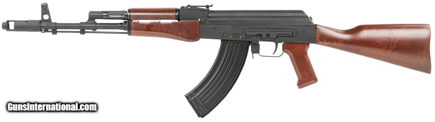 Description: Guns Listing ID: 284640 An absolutely 100 American Made AK103 was one of the last designs overseen directly by Mikhail Kalashnikov within the iconic AK platform. Based on the AK74 the 103 will accept all AK74AKM furniture and accessories. SOLD Manufacturer: KALASHNIKOV USA Model: KR-103 Caliber Info: 7.62X39MM Condition: new Barrels: 16.3 BARREL Finish: BROWN |
