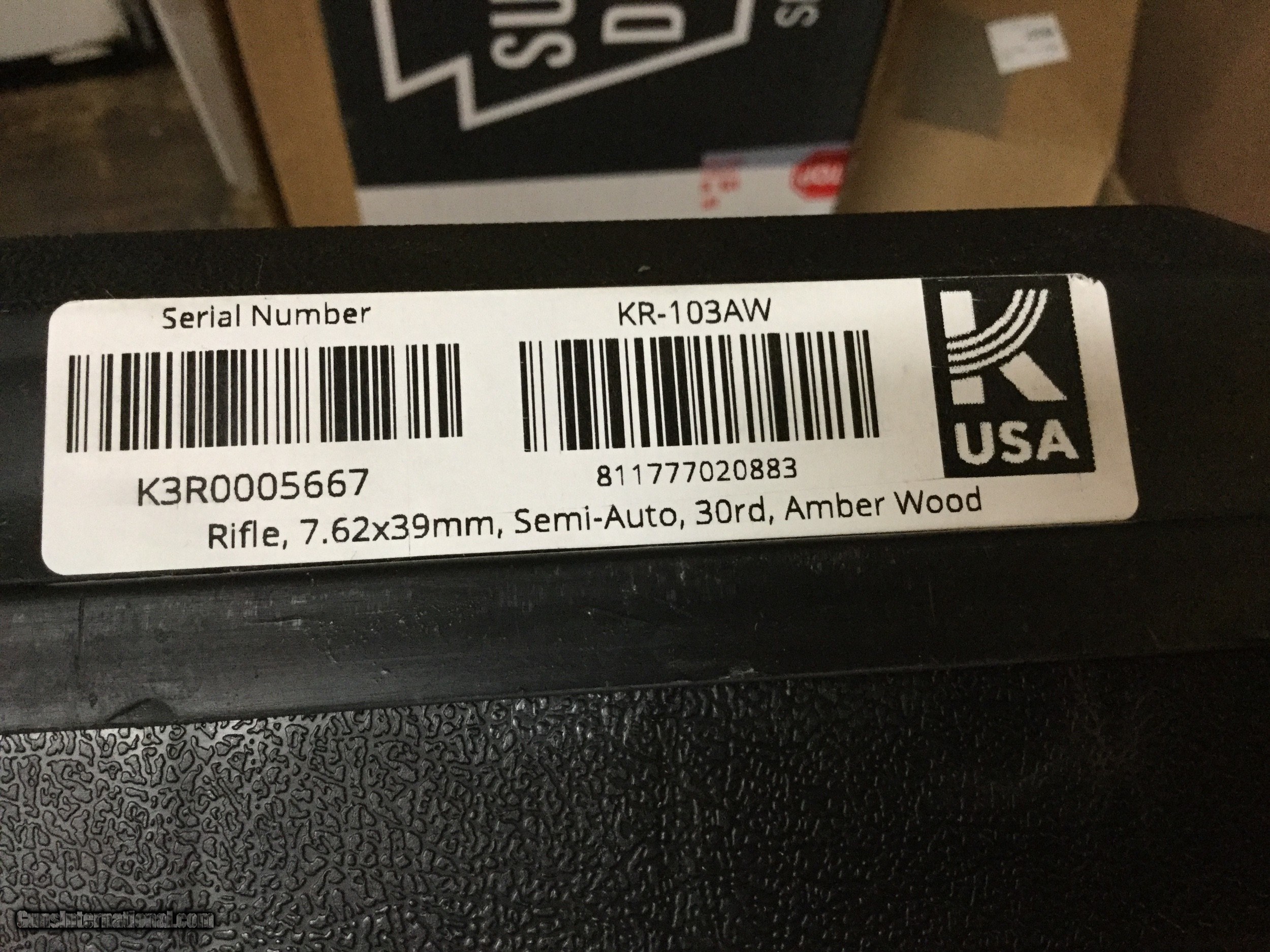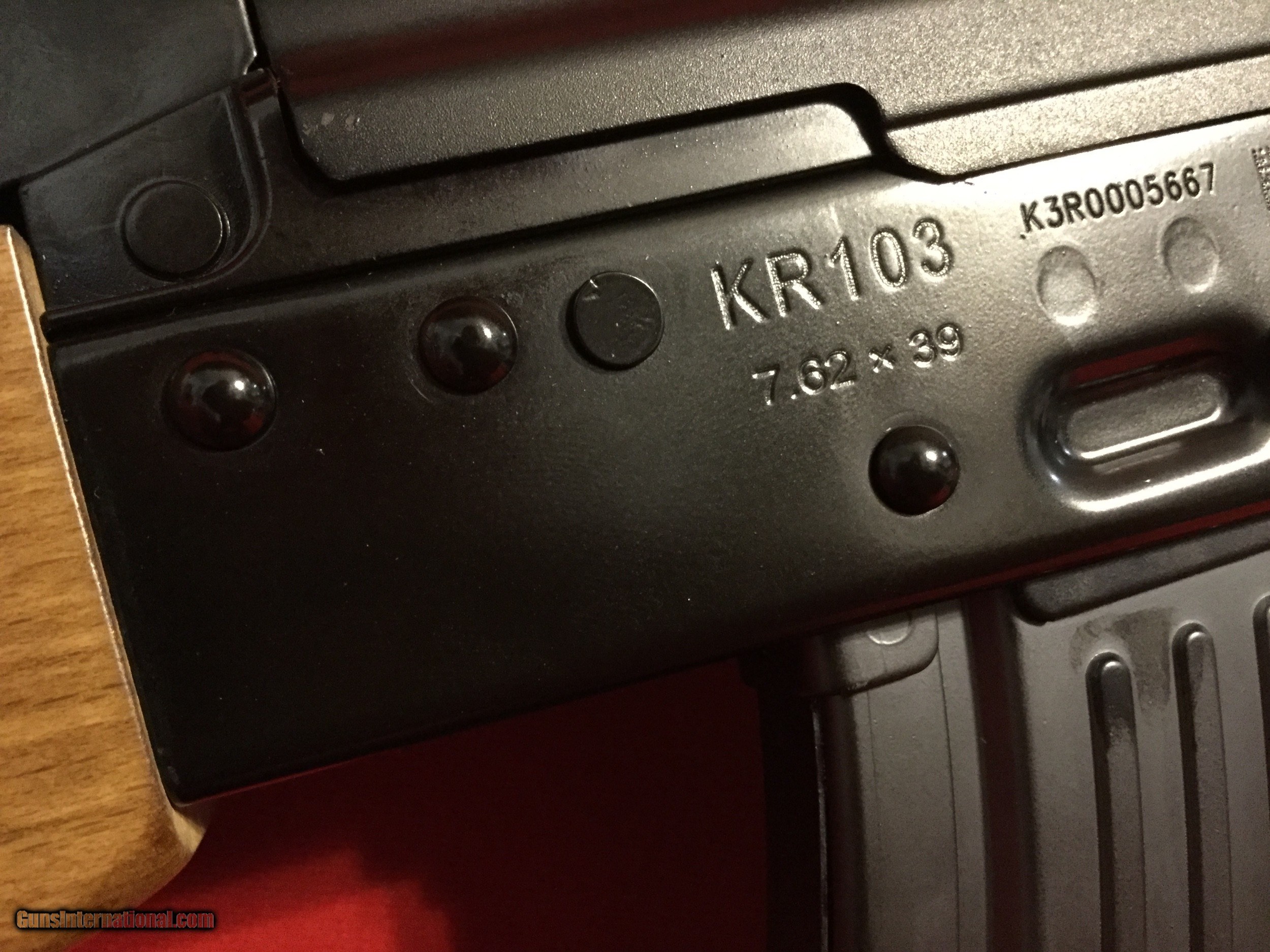 Description: ~~NEW~~ Kalashnikov USA KR103AW KR-103 7.62x39mm Caliber with 16.33" Barrel, 30+1 Capacity, Black Metal Finish, Amber Wood Stock Black Polymer Grip Right Hand MFR # KR103AWUPC # 811777020883 $1295.00 plus $60.00 insured and shipped to your FFL dealer. Add 3% for payments by card. "An absolutely 100% American Made AK-103 was one of the last designs overseen directly by Mikhail Kalashnikov within the iconic AK platform. Based on the AK-74, the 103 will accept all AK74/AKM furniture and accessories." ~~Sports South SOLD |