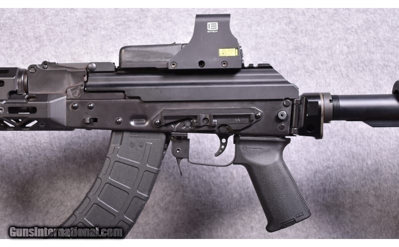Description: This Lee Armory AKM has it all! It has a Magpul adjustable/folding stock with a vertical forend grip. The KPYK CRC 1U020 forend accepts M-LOK attachments and has a 2" Picatinny rail for accessory mounts. It has a BattleArms AK trigger upgrade. The receiver also has a Picatinny rail and Texas Weapon Systems Hob Knob oversized bolt knob. It is topped with an EOTECH Holographic Weapon Sight. It also has a VG6 Precision Epsilon AK combination muzzle brake, compensator, and flash hider. To finish it out, it comes with 8 magazines. 7.62x39mm SOLD Metal Condition: Excellent Bore Condition: Excellent Barrels: 16 Triggers: BattleArms AK trigger Stock Dimensions: Adjustable Butt Pad: Magpul adjustable/folding stock Weight: 9.25 lbs Sights: EOTECH HWS Item Location: Boise, ID |