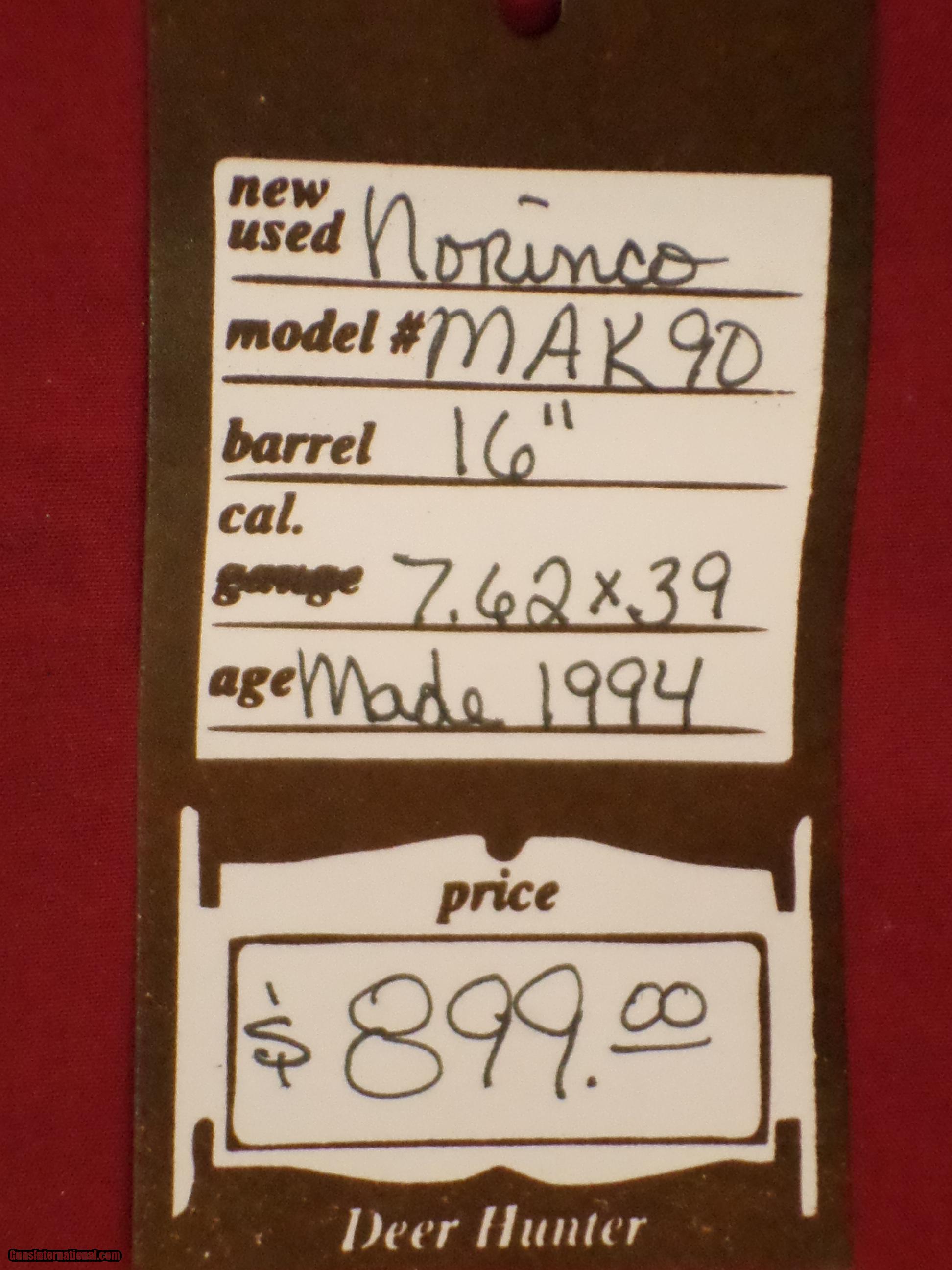 Description: SOLD For sale, Norinco Mak 90, 16" bbl, thumbhole stock, 7.62x39 cal. Excellent condition. Circa 1994 SOLD To see more of our inventory, visit deerhunterguns,com We collect 7% sales tax for Florida sales. We accept MC, Visa and Discover, no AmEx. No Sales to California. Like us on Facebook: Deer Hunter Guns SOLD |
