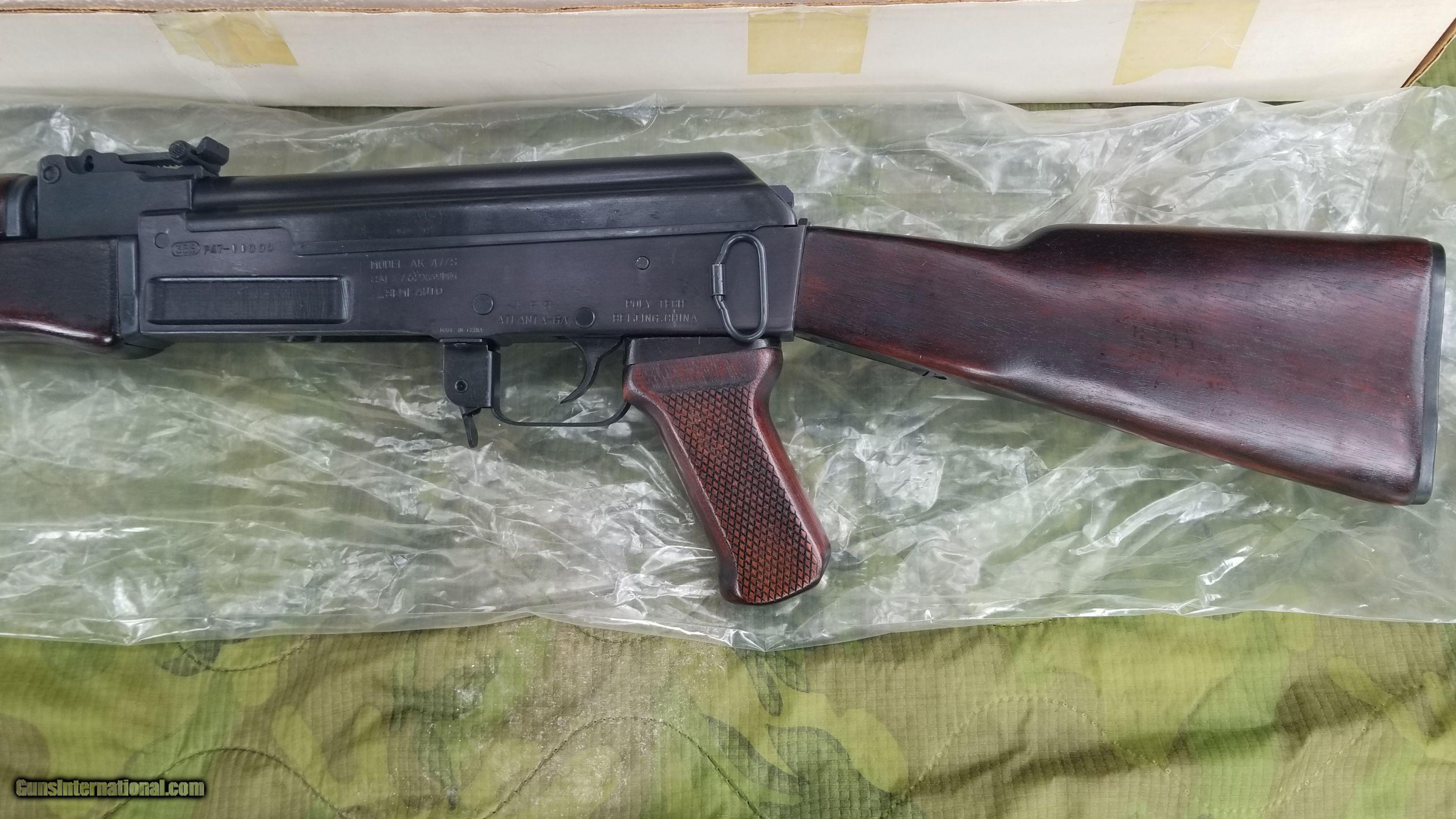 Description: Mint condition, numbers matching Polytech Legend. Rifle is unfired and comes with all factory accessories including three chrome follower magazines. Box is in very good plus condition. SOLD Manufacturer: Polytech Model: AK/47S Caliber Info: 7.62x39 Metal Condition: Excellent Wood Condition: Excellent |