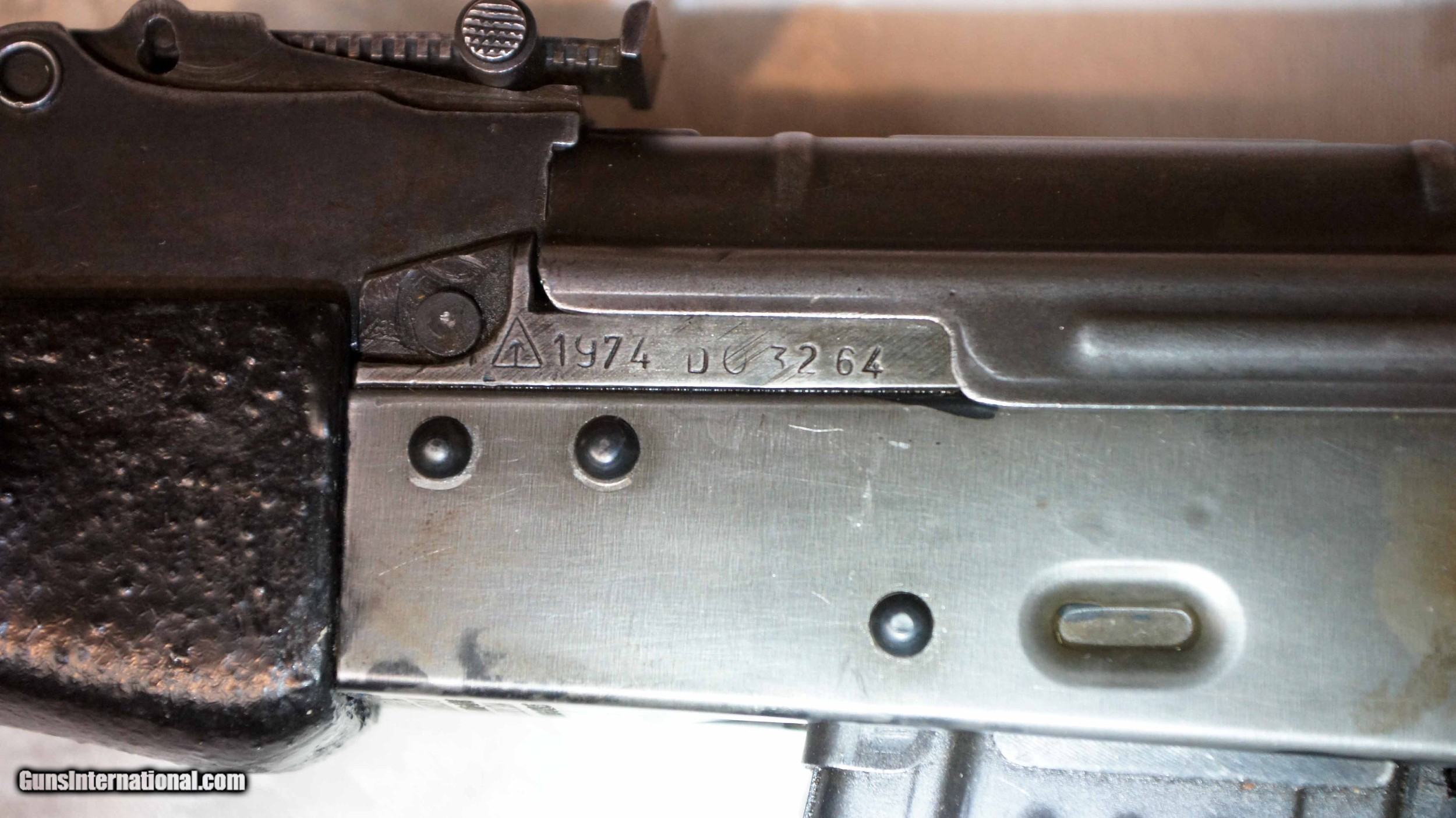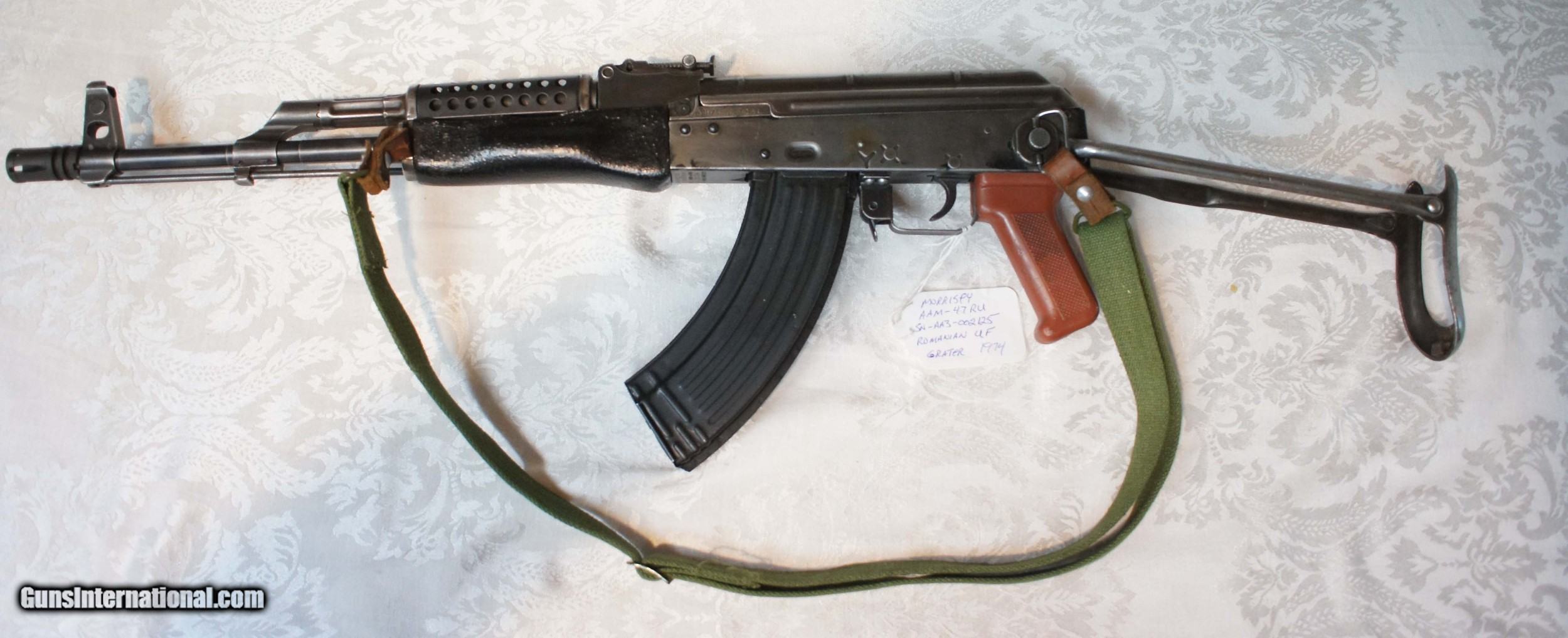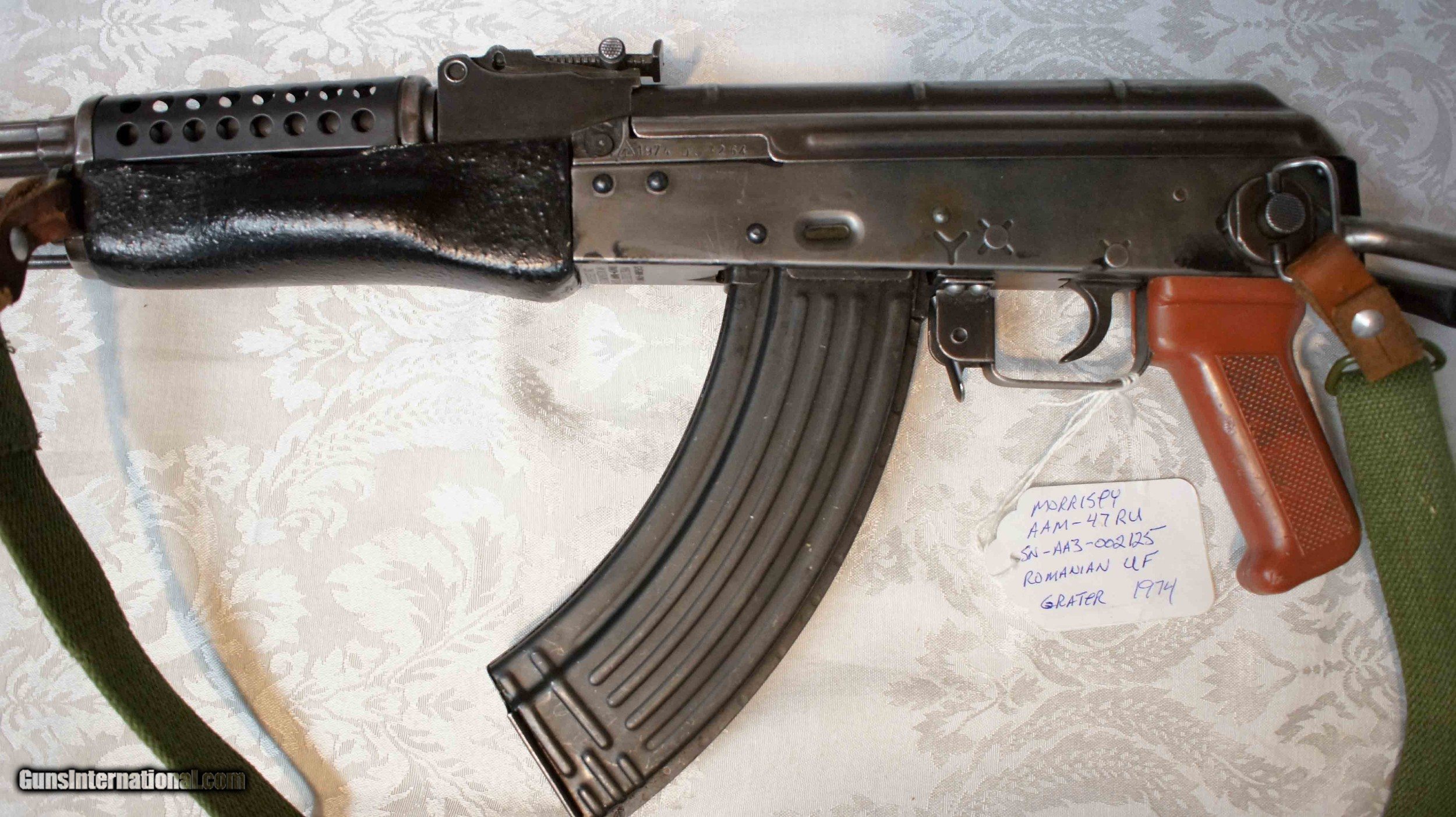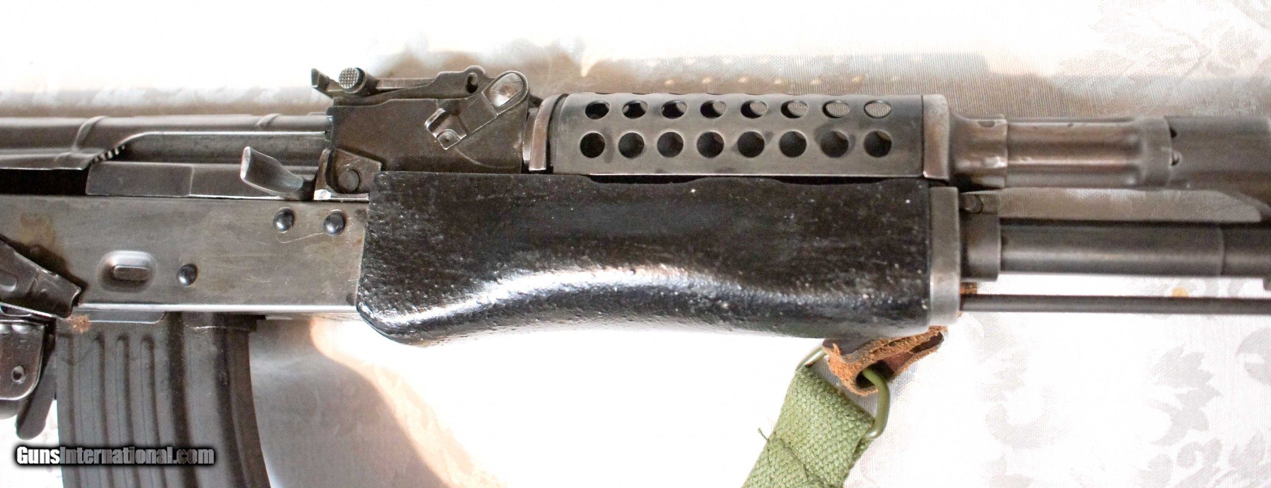 Description: THIS GUN IS SOLD Preban Romanian underfolder dated 1974 with a grater top guard. Pro built on a Morrissey receiver. Black pebble finished handguard. This is a very classic sought after gun. It printed a very accurate test target at 50 yds. SOLD Rifle Caliber: 7.62x39mm Model: 47RU Serial Number: AA3 002125 Barrel Length: 16 Bore Condition: excellent |