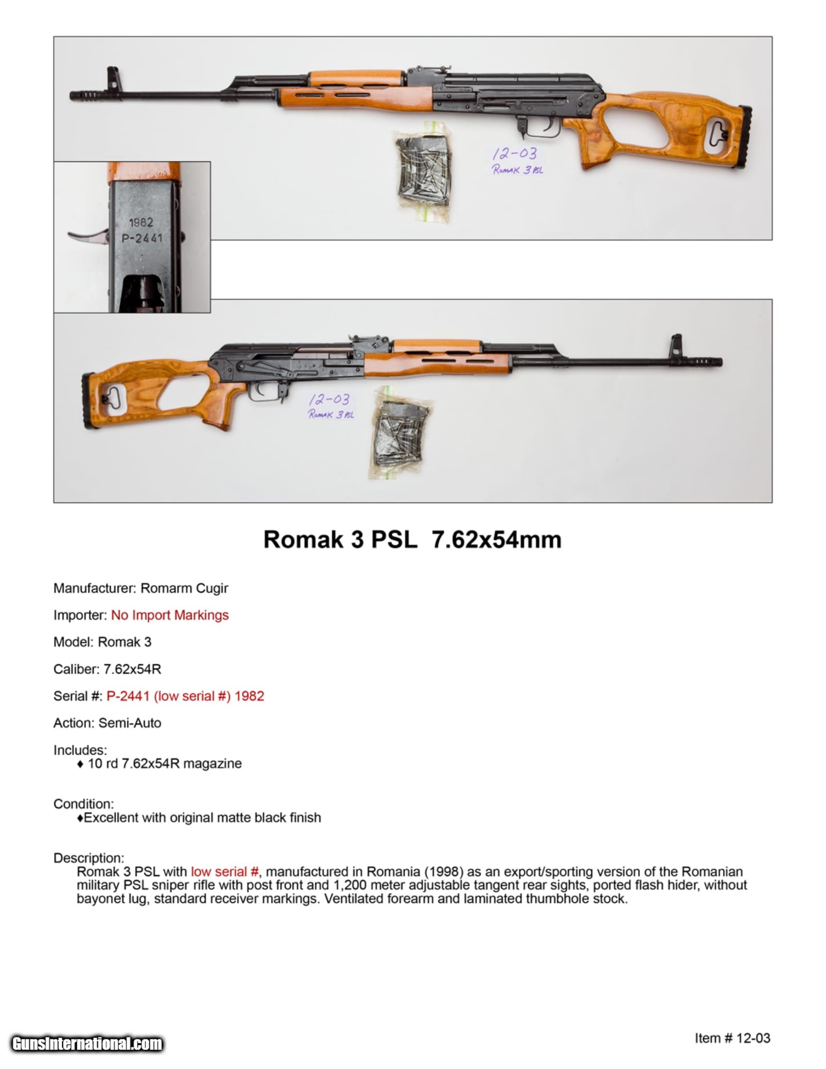 Description: Romak 3 PSL 7.62x54mm - Used SOLD |