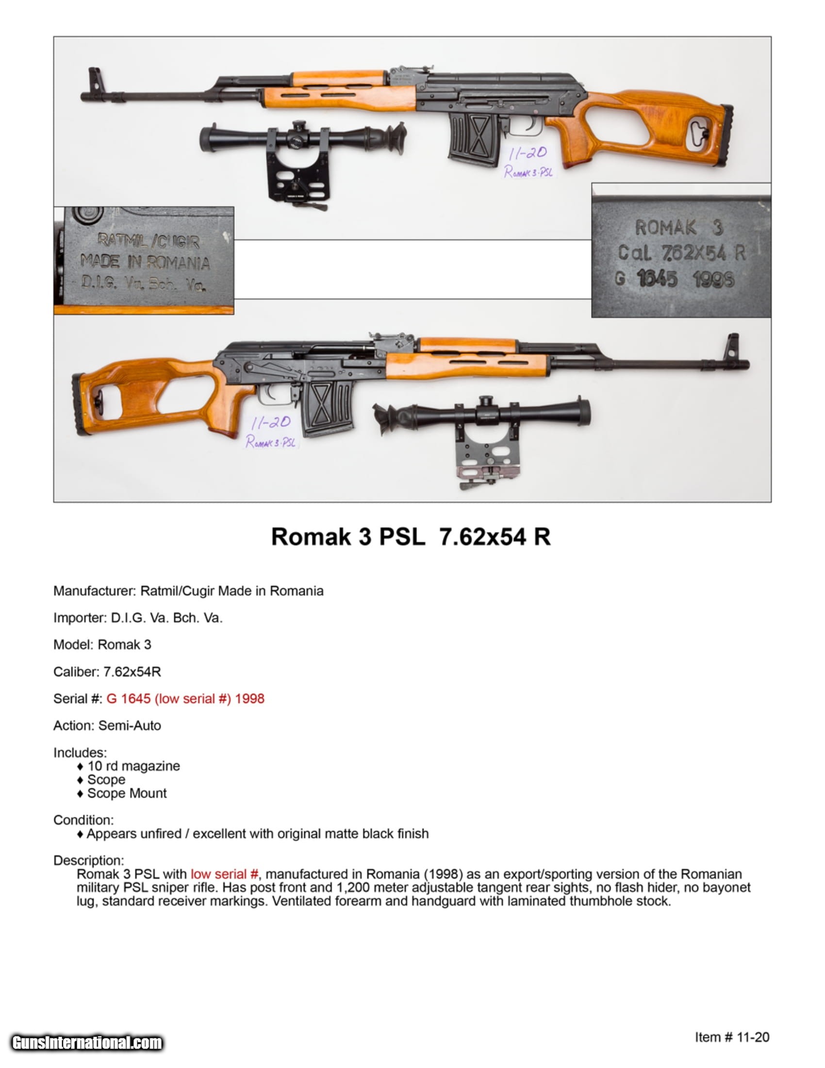 Description: Romak 3 PSL 7.62x54R - Used SOLD |