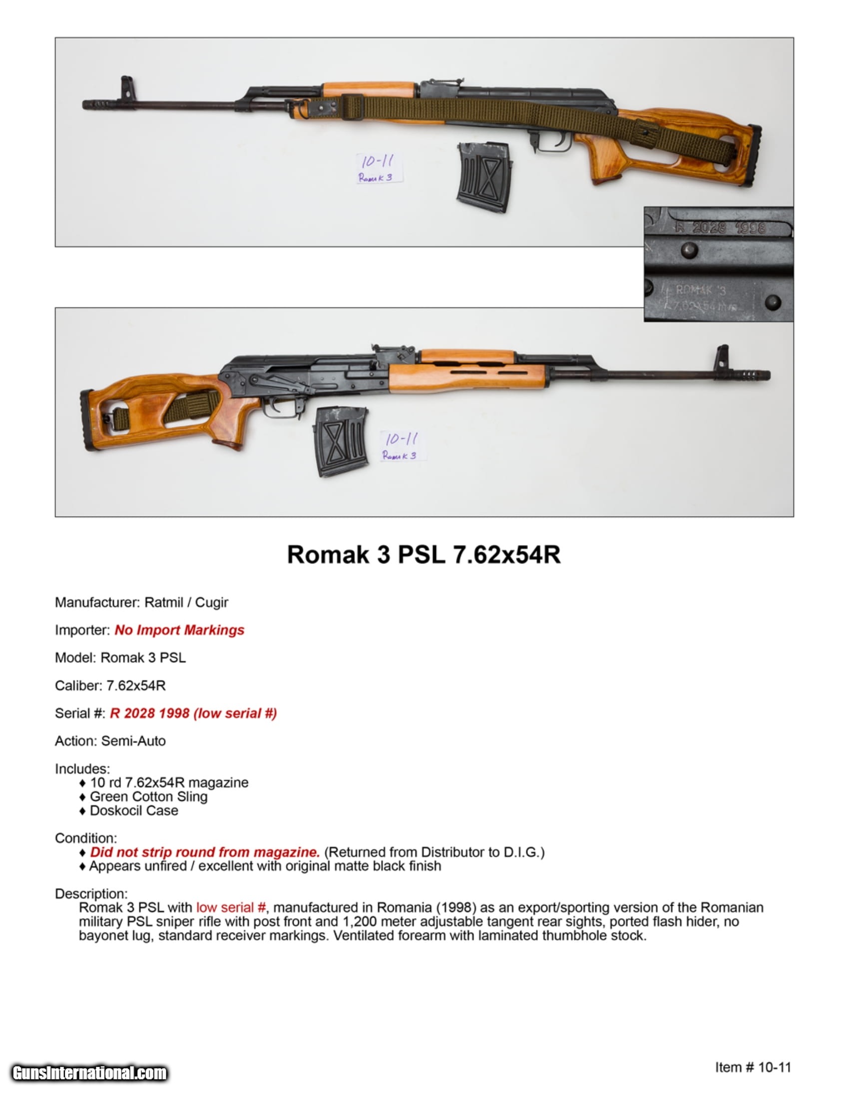 Description: Romak 3 PSL 7.62x54R - Used SOLD |