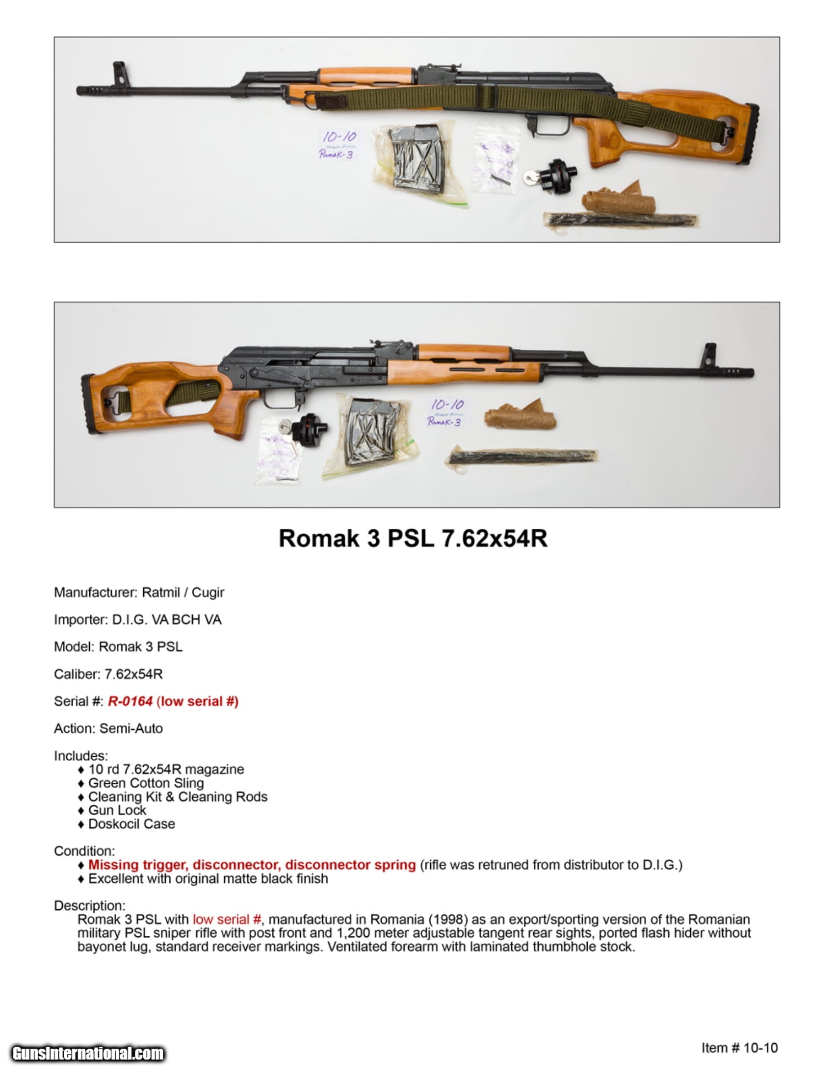 Description: Romak 3 PSL 7.62x54R - Used SOLD |