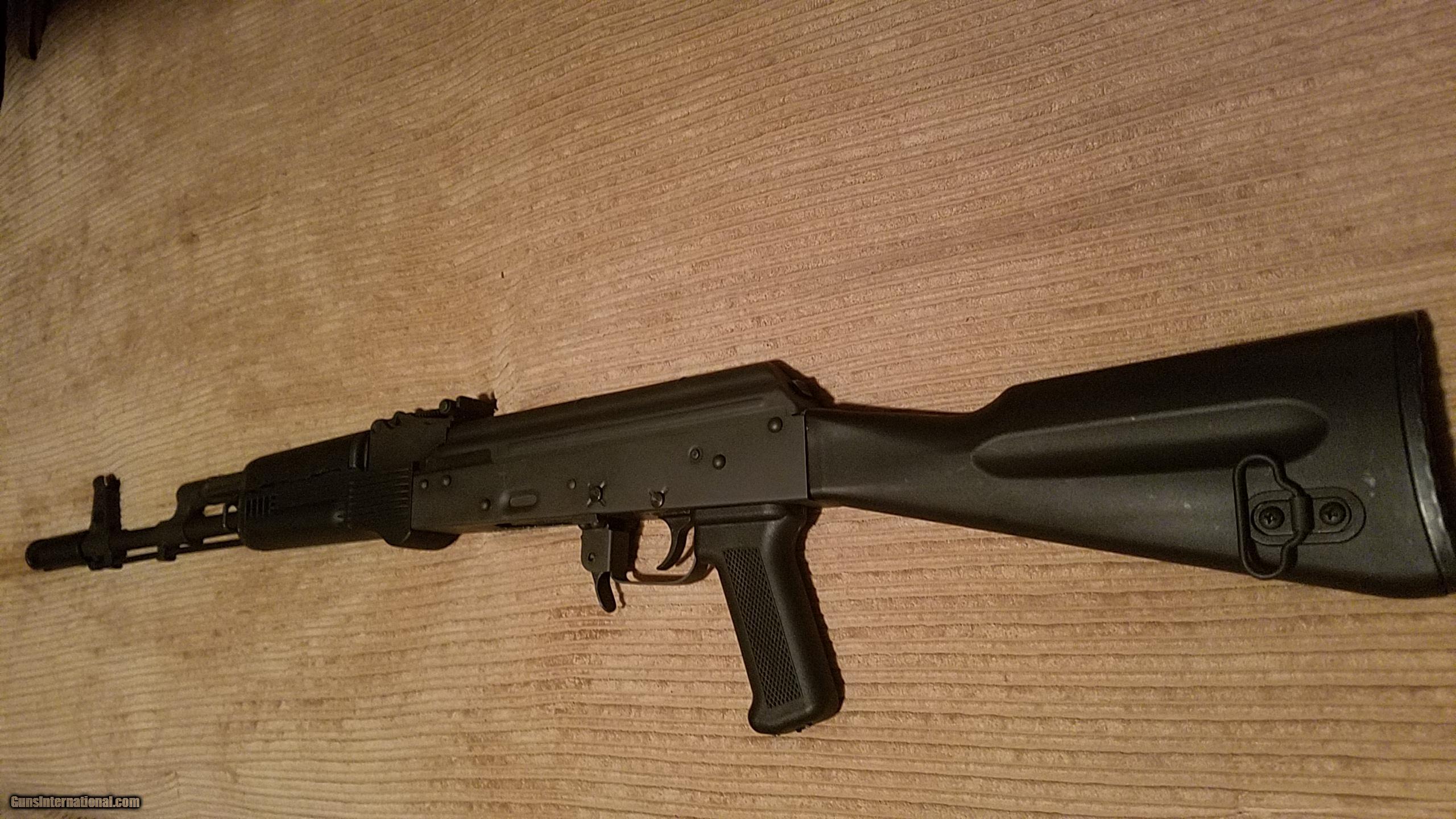 Description: This is a Bulgarian AK-74 from Inter Ordinance. Comes with an original Circle 10 bulgarian magazine and an original bulgarian bayonet. Original black poly stock with very minor scratches on the butt stock and metal. The bore is excellent and the gun has about 500 rounds through it. All matching parts SOLD Manufacturer: Inter Ordinance Model: AK-74 Serial Number: A010026 Caliber Info: 5.45x39mm Bore: Excellent Condition: Very good Metal Condition: Very good, minor scratches Wood Condition: Black poly stock in very good condition, minor scratches Bore Condition: Excellent Barrel Type: Chrome lined barrel Action: Gas operated, rotating bolt Stock: Black Poly stock Weight: 6.8 pounds (with magazine) Item Location: Miami, Fl |