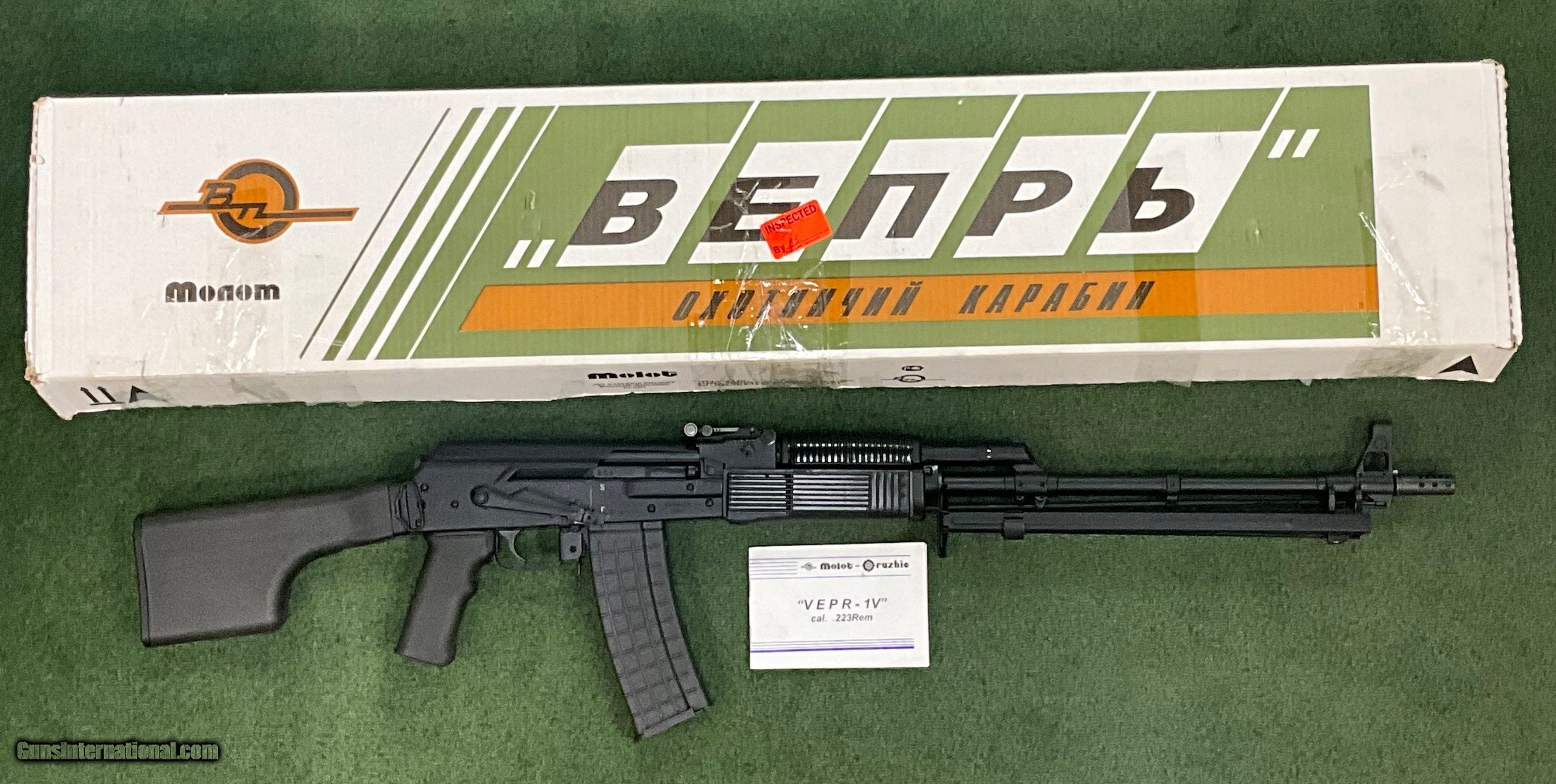 Description: Russian Molot Vepr-1V, 223 Rem, very rare, 30 rd mag, original box, looks unfired SOLD |