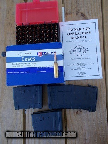 Description: Custom built by APF AR10 6mm Creedmore with 24 inch stainless fluted and threaded barrel with APF muzzle brake, Superlative adjustable gas block, Trigger Tech trigger, Magpul adjustable stock, topped with a Vortex Viper 6-24x50, illuminated EBR-1 (Enhanced Battle Reticle), Warne 20 MOA mount and Vortex scope level. This rifle has been through proper break in, load development and ballistics verification. Total round count is 125. Includes 3 magpul magazines (10,10,20) and 100 rounds of new custom ammo in Lapua brass with Hornady 108 grain ELD Match bullets. This rifle shoots 3 inches at 800 yards. plus shipping SOLD Rifle Caliber: 6mm Creedmoor |