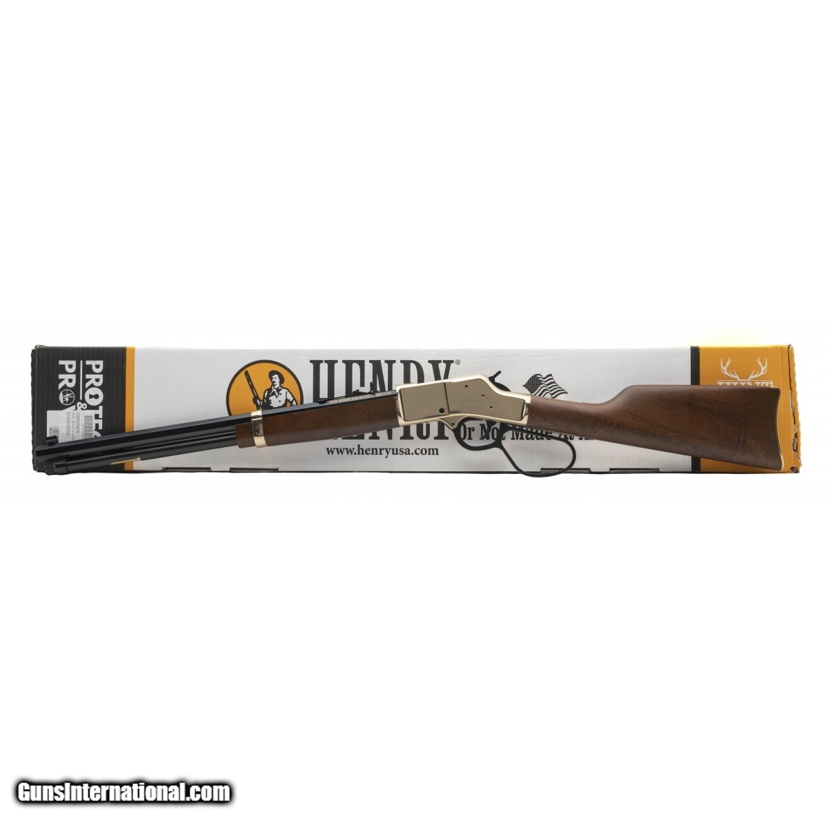 Description: " Big loop lever action 20"" octagonal barreled field gun with a blued finish, golden receiver, barrel band, and a walnut stock. NEW. UPC:619835060242. SOLD |