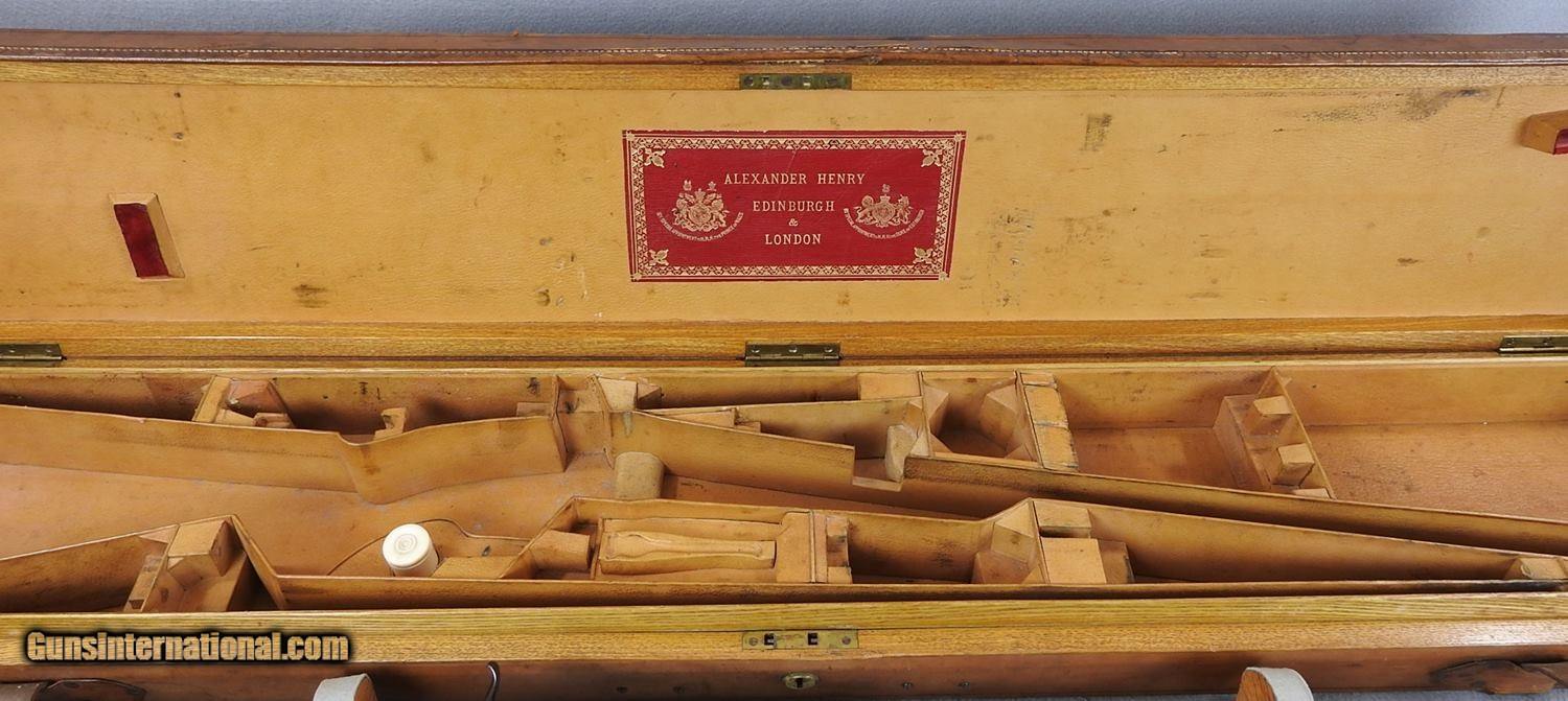 Description: This is a beautiful condition inside and out Alex Henry 360 2 1/4” Single Shot Miniature Falling Block Rifle with the original case. It has some of the original reloading equipment still with it. The rifle retains 92% blue has very good crisp and tight mechanical function and a very good bright and shiny bore. Two flip up rear sights, 150 yards and 200 yards. The LOP is 14 ¼” and it weighs 5 pounds 6 ounces. The serial number is 3678 and was made about 1873 or 1874. The wood is beautiful with sharp checkering and a pistol grip with a horn cap on it. The tip of the fore stock appears to also be horn. The case contains 4 boxes of new unfired Bertram brass. The bullet mold is marked A.H. #4197 marked and is .363” diameter, a A. Henery stuck cartridge remover tool, an unmarked oil canaster, a brass capping and decapping tool, another tool with the number 4197 the same as the mold and a ivory jar. The case is leather covered made of very solid oak with a beautiful condition Alex Henry Label Edinburgh & London, no key for the lock. I would consider trades for pre 1899 ANTIQUE PISTOLS and rifles on any of my items.. WHAT DO YOU HAVE TO TRADE? Ask about our 30-90 day lay-away program. We accept Bank Check, Money order, Personal checks or wire transfer. SOLD Antique: Yes Manufacturer: Alexander Henery Serial Number: 3678 |
