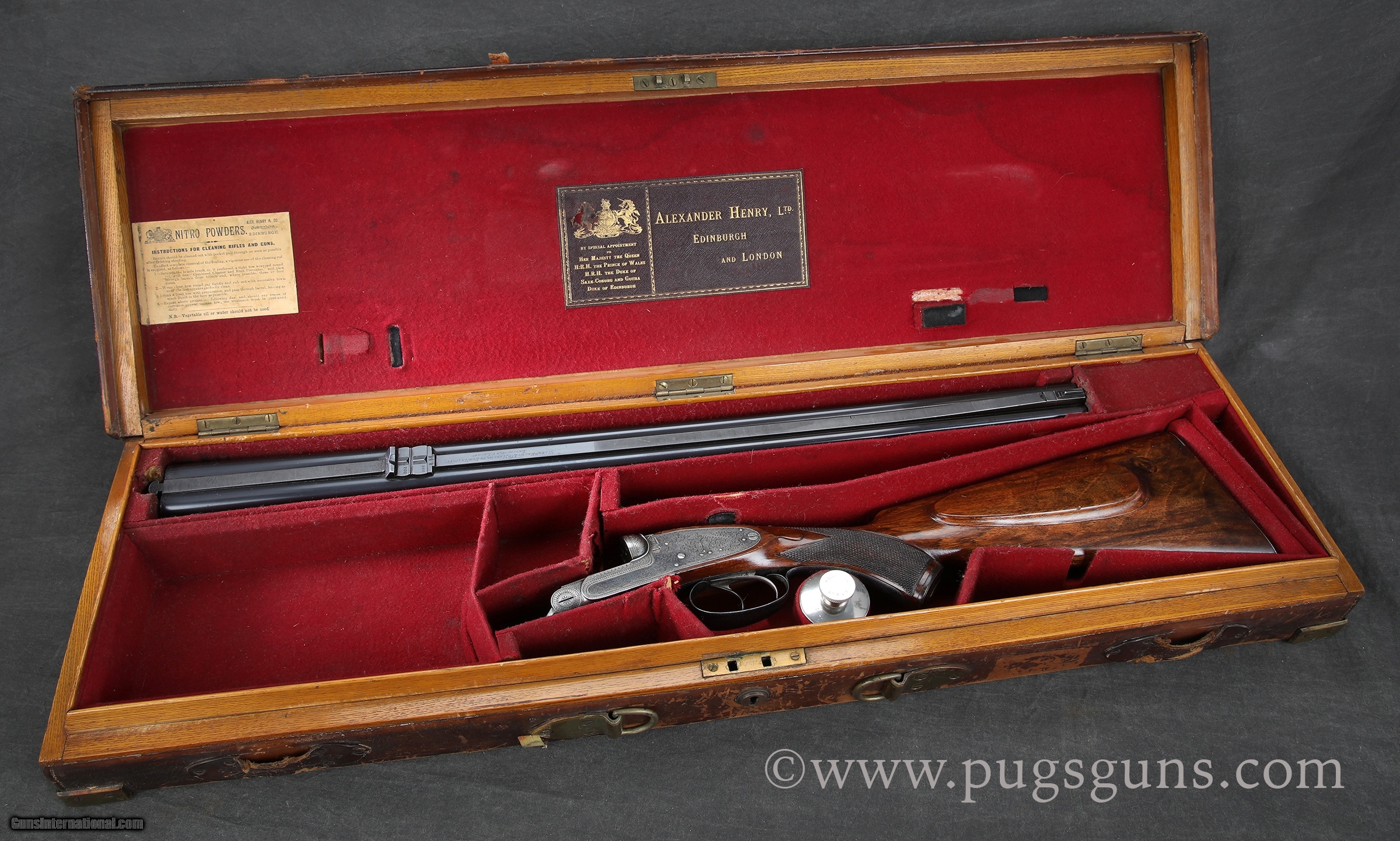 Description: Cased SOLD Manufacturer: Alex Henry Model: SL Serial Number: 6938 Caliber Info: 375 Barrels: 26 inches Action: SE Triggers: Double Trigger Fore End: Splinter LOP: 14 inches |