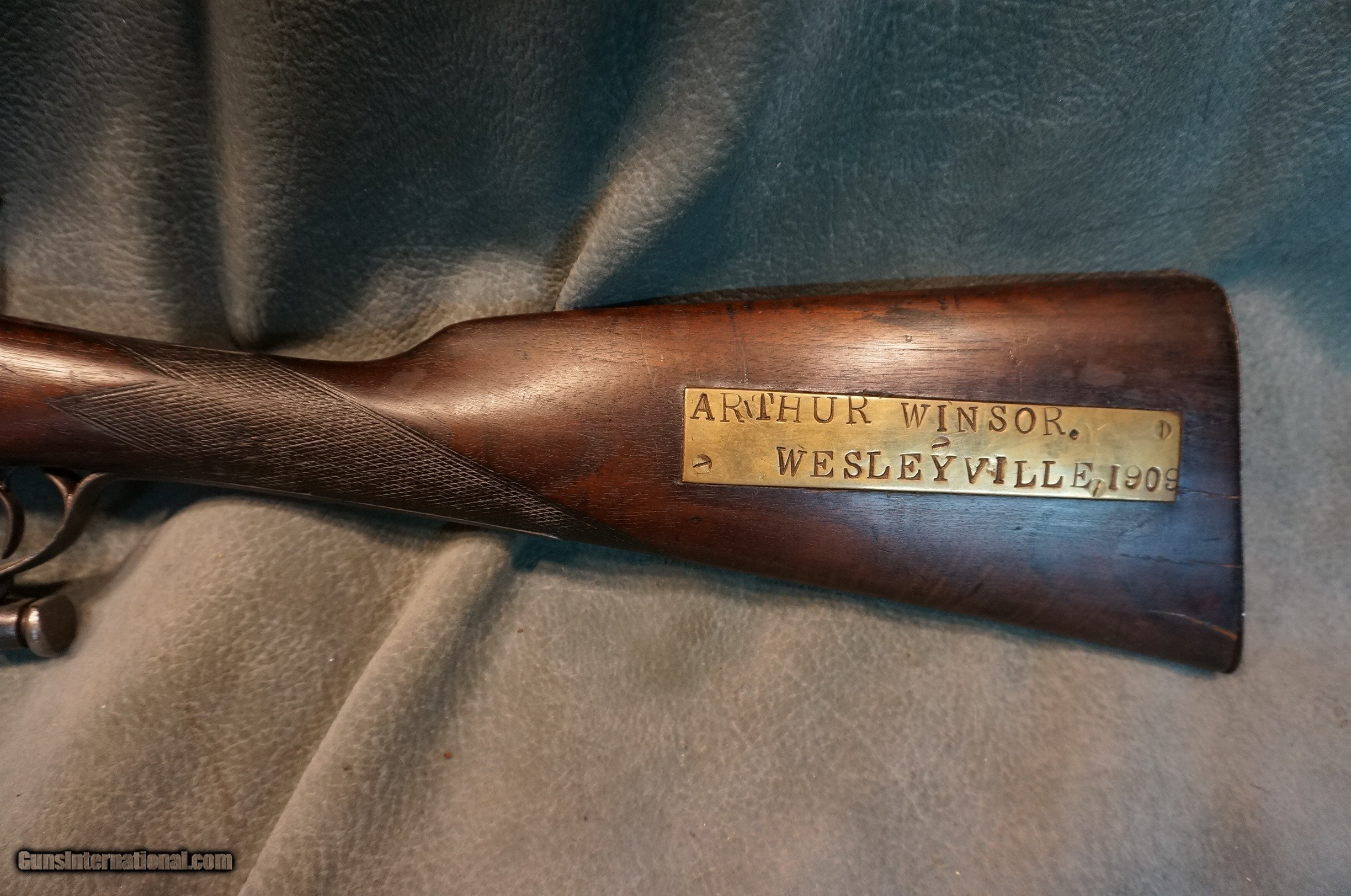 Description: Alexander Henry 450 Express Whaling Gun 29" barrel,brass plate on the stock,"Arthur Winsor Wesleyville 1909" historical gun from the past.It is from the Newfoundland Seal Hunting Fleet . Arthur Winsor was a ship captain and I believe this was presented at his retirement . There were a number of generations of Arthur Winsor through the 1800's there . GUN COLLECTIONS WANTED FOR CASH! We buy, sell, consign and trade new and used firearms.We will pay finders fees and travel for large collections. This is our 45th year in business. We offer 90 day layaways with 20% down. No return on layaways. Firearms will need to be transferred through a FFL dealer. Prices reflect a cash discount. There will be 3% added to credit card sales. We trade for gold and silver. THANK YOU! SOLD |