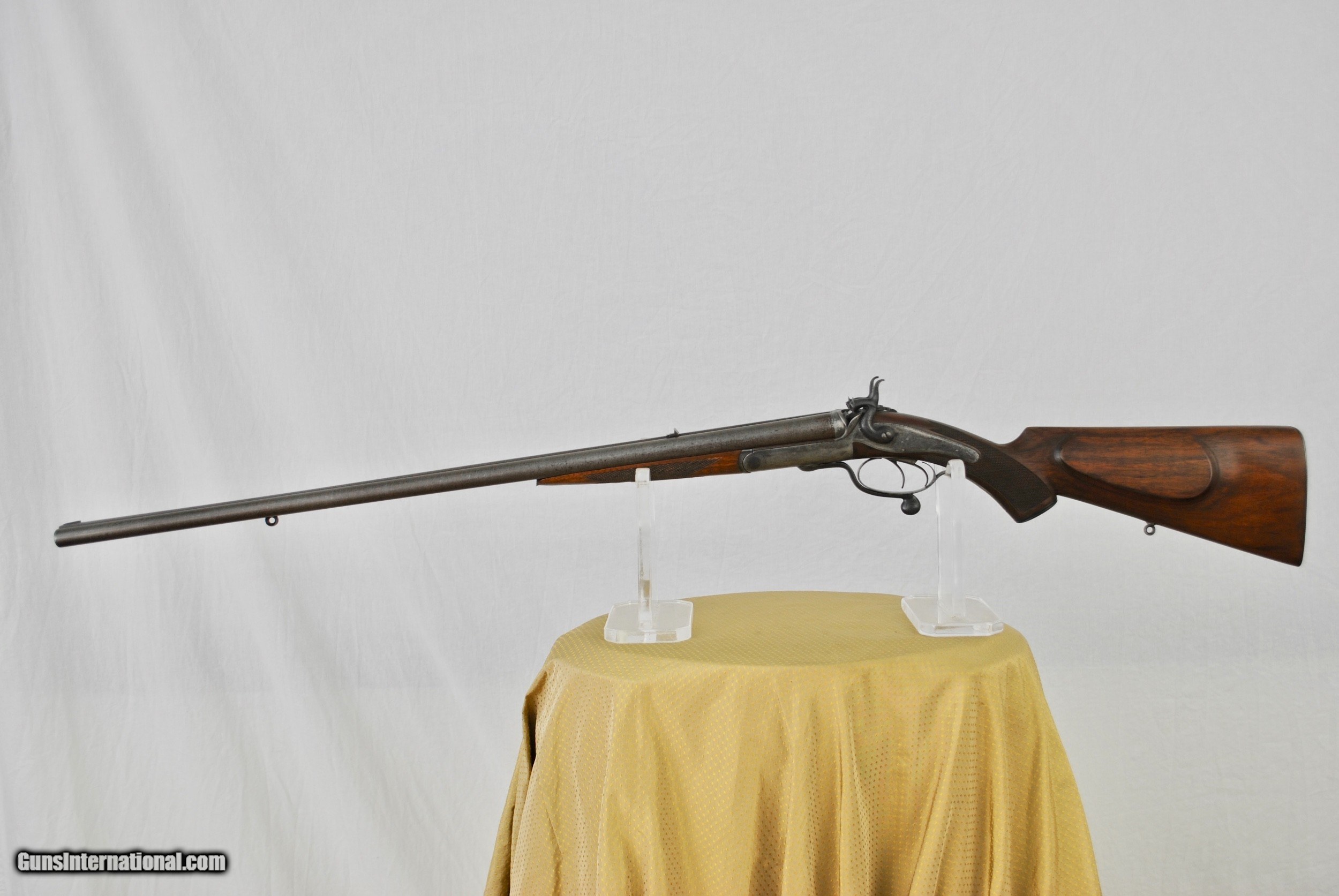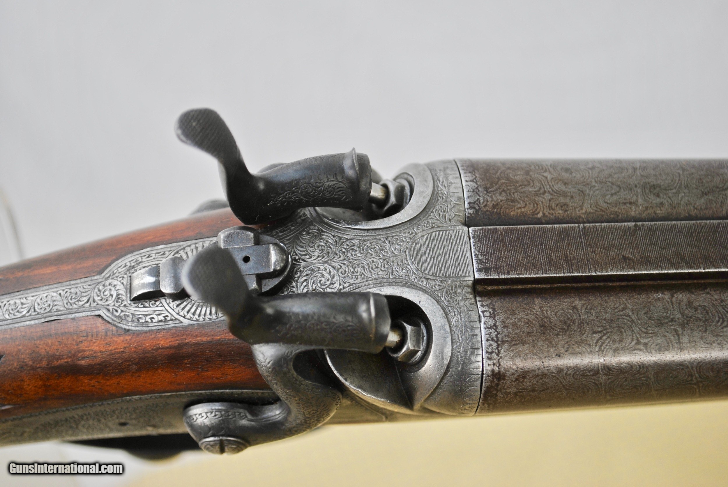 Description: Here is an Alexander Henry best quality double rifle in 500 Black Powder Express. Cartridge case is 3". Mahogany cased. Excellent bore. Flip up tang peep sight plus rear V notch sight with one fixed and one flip up blade. Rebounding hammers. Jones Underlever - tight on face. No loose ribs. No cracks to wood. Damascus barrels of 28" with wonderful pattern. LOP is 14 3/8". Weight of gun is 8 LBS 14 OZ. Made in 1876. As and antique this gun can be shipped directly as local law allows. A limited amount of hand loaded cartridges are included with loaded data. Shipping is $65. For inquiries please call Guy - 407-721-3748 SOLD Antique: Yes |
