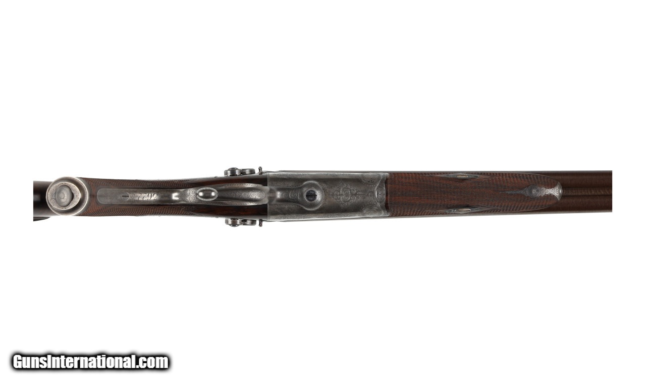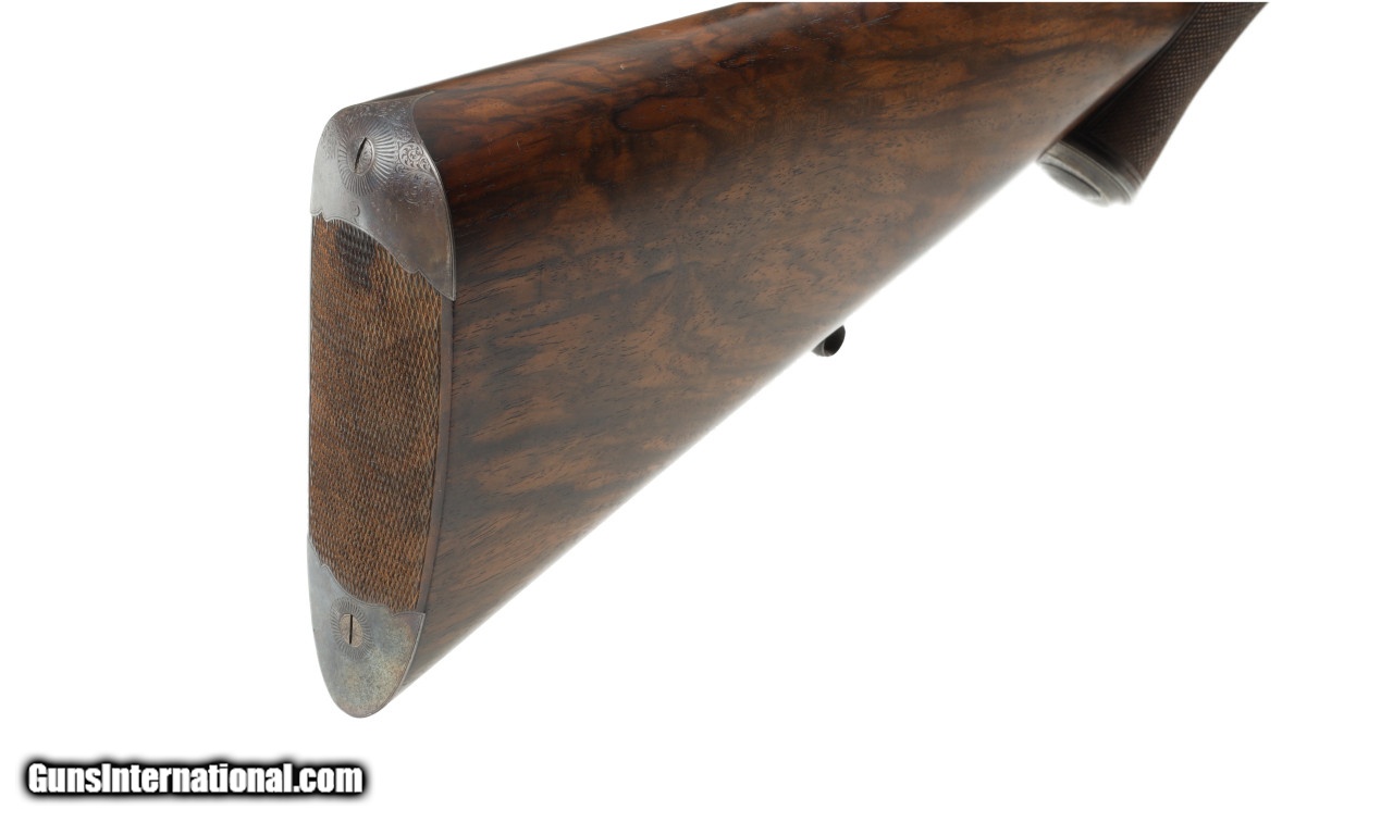 Description: This rifle is number two of a set. Back action locks, under lever hammer gun with half cock stalking safeties. Fully engraved action with long top strap. SOLD Manufacturer: Alex Henry Model: Double Express Rifle Caliber Info: .450-3 1/4 Black Powder Expres Condition: Preowned Metal Condition: Very Good Barrels: 28 Action: Hammer Gun Gauge Info: .450-3 1/4 Black Pow LOP: 14 1/4 Sights: Factory Sights Case: Oak And Leather Lugg |