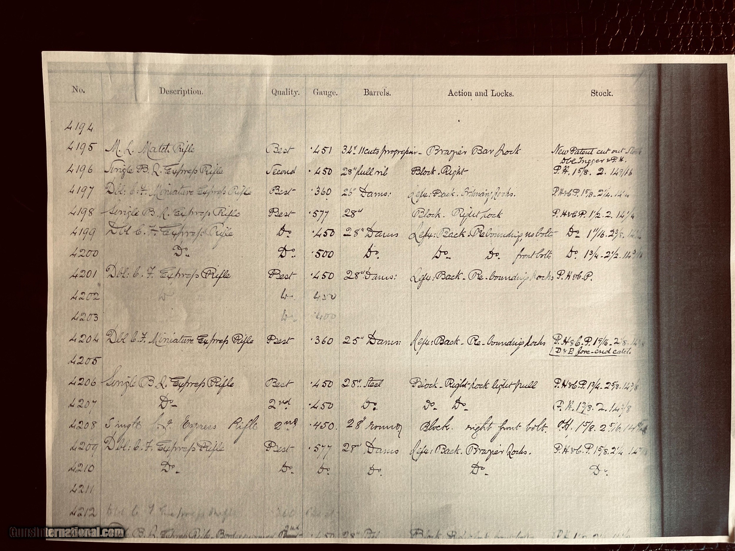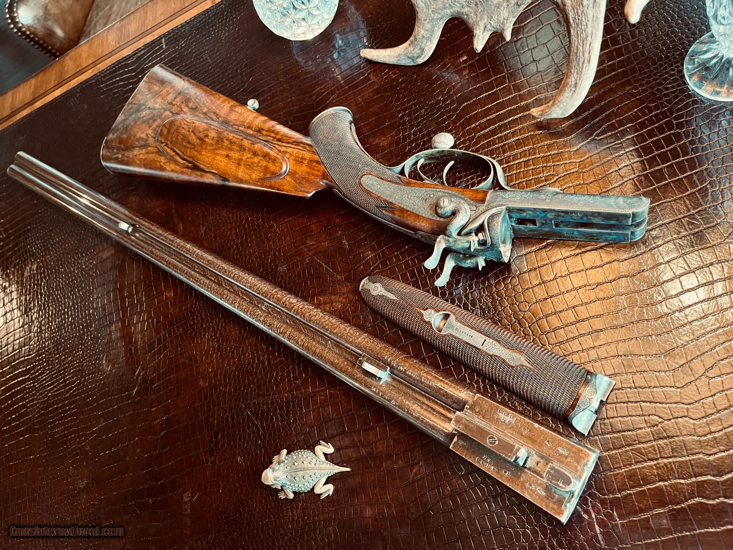 Description: Alexander Henry Double Rifle Express Deluxe Hammer Gun - .450 BPE Calibre - 28" - Underlever Back Action - Rebounding Hammers - Case - Spectacular Condition - Incredibly High Conditon Rifling - Documentation Onhand - this gun will ship to your front door - no FFL required. Quillen-Worfe Fine Gun Collection & Consignments *****Please read prior to making a purchase*****: