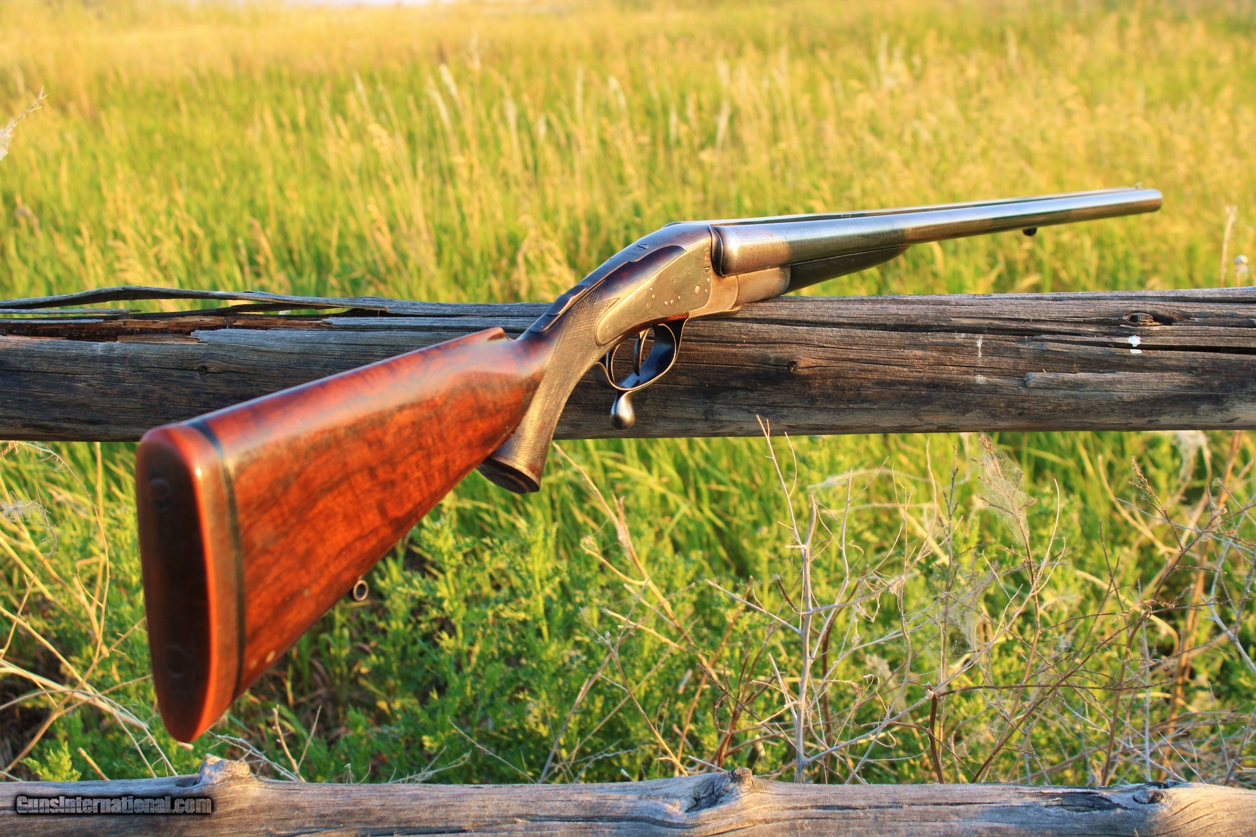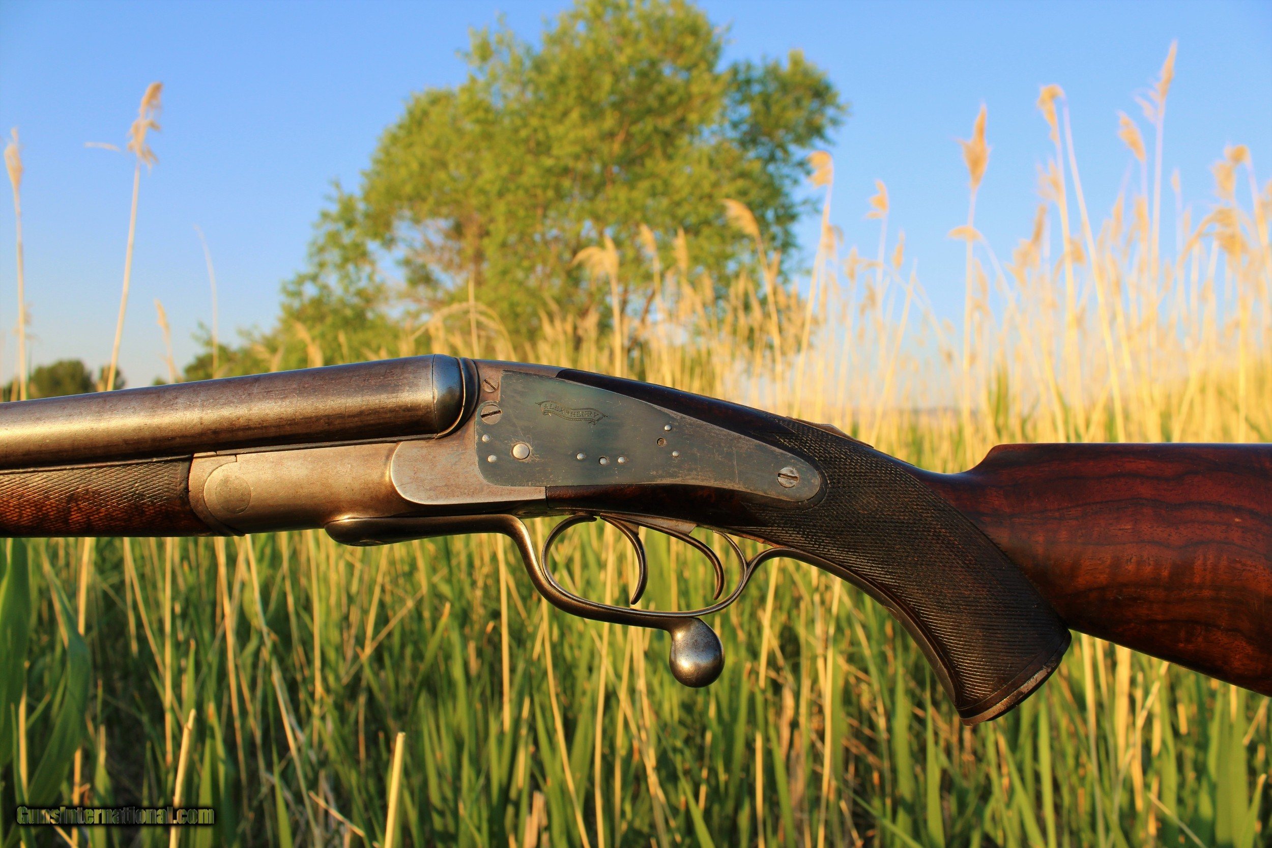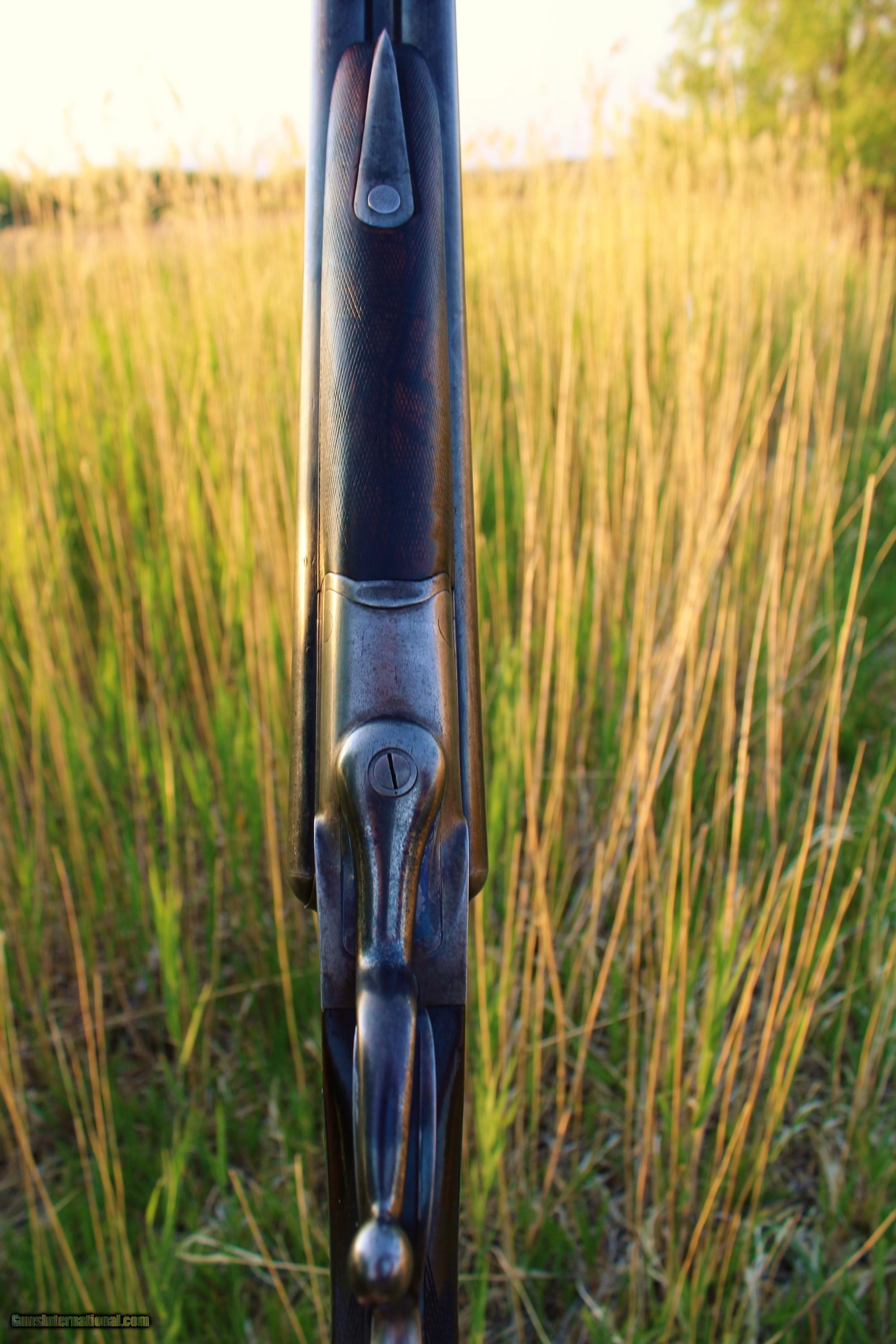Description: SOLD Here is a wonderful and rare Alexander Henry wildfowler, discovered by Geoffrey Boothroyd at the Alex Martin shop in the early 1960's, and used by him for many years (see attached articles by Boothroyd from Shooting Times.) The last owner of this remarkable gun, Mr. R. Y. of Montana, was kind enough to provide the following information: "It was originally chambered for Henry's proprietary 20/.577 black powder express, which he developed in 1880. It was one of the most powerful of the pre-smokeless .577s - a necked-down 2 3/4" 20 gauge brass case loaded with as much as 171 grains of black powder and a 650 grain bullet. According Donald Dallas, author of books on Alex Henry, Dickson, Boss and others, Henry built 39 rifles (all doubles) in the caliber--about half of them hammerguns--and a total of 19 on the #5273 hammerless patent. Of the 19, 14 were Best Quality; four were Second Quality (which were extensively engraved, but with less coverage than a Best; and the last one is the example at hand - completely devoid of engraving. Although Dallas describes rifles built on the #5273 patent as possessing "a beautifully designed sculpted action" that "just exuded power and strength," in truth, by 1899 when this gun was entered "In stock", it had been obsolete for nearly a decade. As early as 1888, Henry had been filling orders for express double rifles by finishing Birmingham-made barrel-cocking hammerless sidelocks and boxlocks chambered for cartridges far more modern than the short-lived and already-archaic 20/.577. In his history of Alexander Henry, Dallas writes: "To all intents and purposes, after Henry's death (1894) his beautiful hammerless action was dropped in favour of the Rogers (sidelock). One or two appear in the Dimensions Book but they were most probably part-finished old stock." Regardless of the fact that the gun was a dinosaur at the time it was originally purchased, someone did indeed purchase it and, if appearances are any indication, got quite a good deal of service from it. It is very likely that from the turn of the century on it saw extensive service in Africa or India (and indeed, Henry's hammerless 20/.577s were ordered by Manton & Co. of Calcutta). Perhaps as some Scottish army officer rose through the ranks during a distinguished colonial career, the bores of his big Henry double rifle were, simultaneously, suffering the combined corrosive affects of black powder and tropical humidity. And when the time came to retire back to Scotland--a land with no thick-skinned dangerous game--he once again took up the wildfowling of his youth. And now, bored out to three-inch 12 gauge, his trusty Alex Henry remained his companion in the hunt to the bitter end. Who knows?" Now to the particulars of the gun. The nitro-proved Damascus barrels are 28" with 3" chambers, choked .011/.031. The receiver features the maker's name in a flowing banner, but is otherwise unadorned. Large, British-style sling eyes are mounted. The fore-end has a lever release. The pistol-grip stock has a trap grip-cap. The crudely (though stoutly) repaired break at the wrist that Boothroyd refers to has been professionally repaired. The beautifully figured stock measures 1 7/8" x 2 7/8" x 14 1/4" (including an ancient 1/2" red pad) with cast off. The weight is 9 lbs 3 oz. I have killed wild roosters with this dainty piece, and the previous owner used it with great success on mallards, widgeon and Canadas. It's an extraordinary gun that needs to be held in the hands (and better yet, shot) to be appreciated. SOLD Antique: Yes Shotgun Gauge: 12 Gauge Manufacturer: Alexander Henry |
