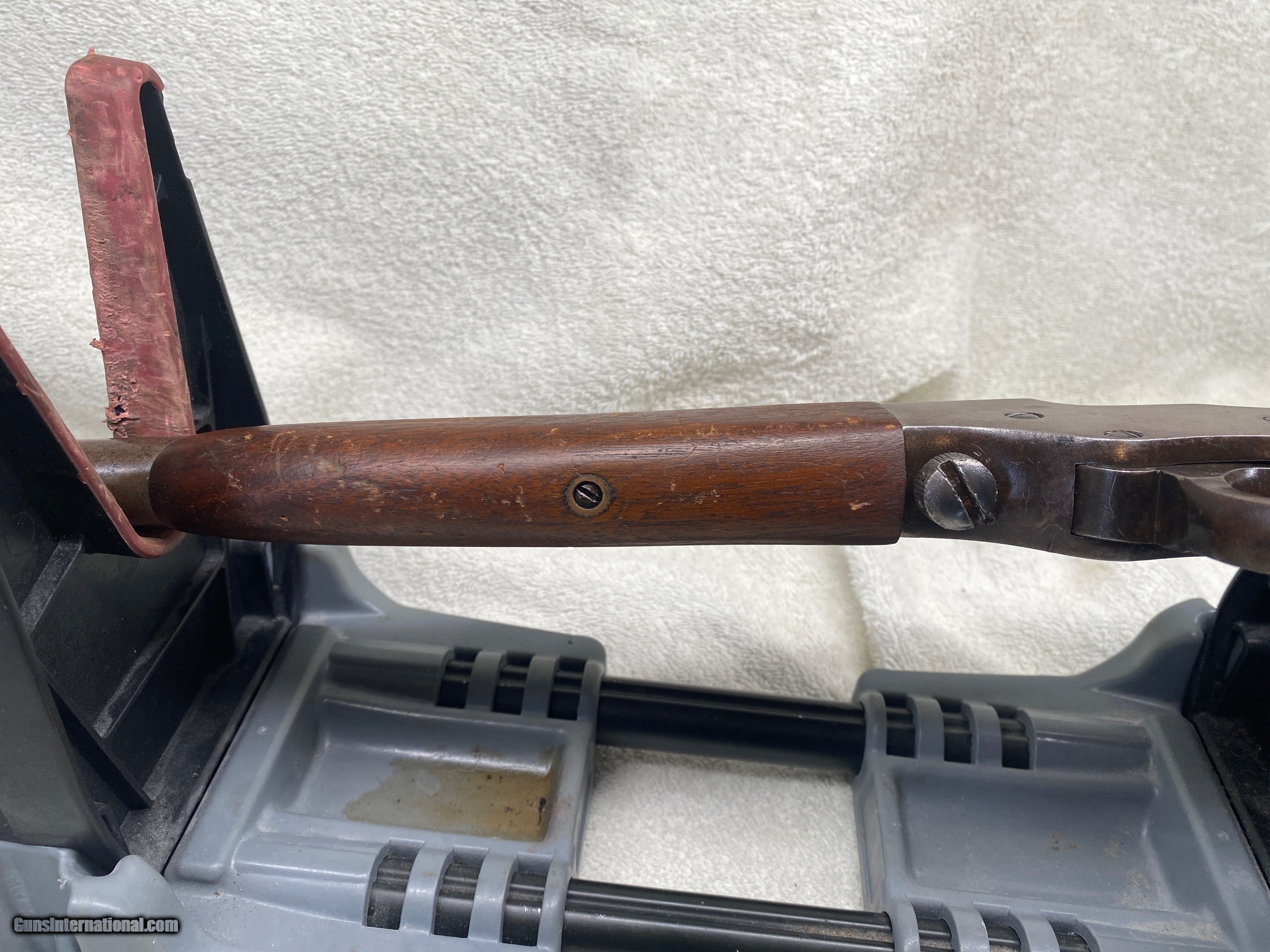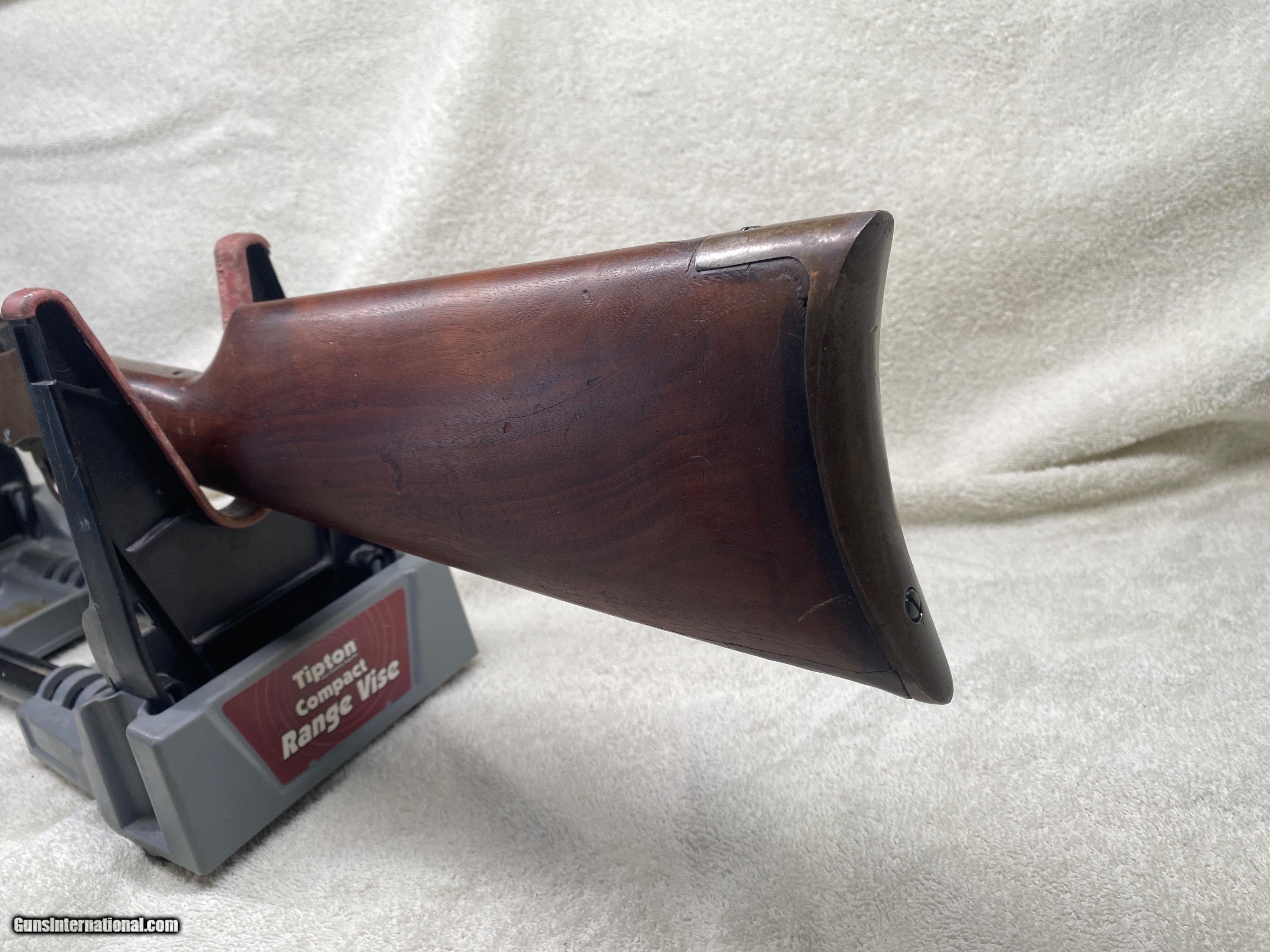 Description: Stevens Model 1915 "Favorite" in .32 long rimfire This is an early model 1915, marked "J. Stevens Arms & Tool Co.," Later models (post-1916) are marked "J. Stevens Arms Company". So this was the first or second year of the 1915 production. Bore is pitted, with visible rifling. Still shootable. $50.00 shipping to your C&R or FFL. Check or money order. Curio/Relic: Yes Rifle Caliber: .32 RF Manufacturer: J. Stevens A&T Co. Model: 1915 Favorite Serial Number: Y 590 Barrel Length: 24 Chambers: 32 rf Condition: fair Metal Condition: good Wood Condition: fair Bore Condition: poor Action: tipping block Weight: 4.9# Sights: original Manufacture Date: 1915-16 Item Location: Northern New York Price: $245.00 Buy Now Contact Seller |