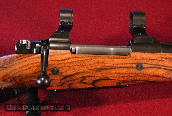 Description: Dave Caboth, Alta, Iowa .375 H&H built on a Brevex true magnum length Mauser action with a 23" all integral feature barrel with integral ramp front sight with warthog ivory bead, sling stud, barrel tie down lug, and quarter rib with one standing and two folding leaves with gold center lines. The Brevex receiver fitted with Smithson quick detach rings, custom bolt handle, three position side swing safety, Billingsly bolt release, Blackburn trigger, and Blackburn drop box bottom metal. Stocked in the English style with a gorgeous well figured piece of dense Circassian Walnut with darkly contrasting lines. Stock features include a pancake cheekpiece, double crossbolts, and ebony forend tip. LOP is 14" over a Siver's pad with widow's peak. Point pattern checkering with mullered border is by ACGG member Jesse Kaufman of Sturgis, S.D. Engraved floorplate, grip cap, crossbolts, and action screws by Leland Davis of Wells, KS. Weighs in at 9lb 15 oz without scope. This is a beautiful piece built exactly the way a safari gun should be with an all integral feature barrel and a true magnum length action. It is new from the very talented makers. SOLD |