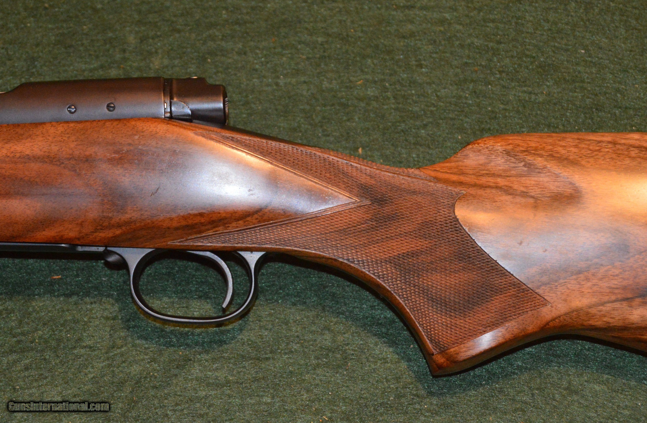 Description: Here is another custom pre-64 Model 70 stocked by Steve Nelson. This one is chambered for the 250-3000 round by those masters at Kreiger Barrels. The barrel is 24" in a light sporter weight. Nelson used a XXXX grade English walnut blank for the stock checkered 24 line-per-inch in a modified Winchester point pattern. The unscoped rifle weighs 8 lb. It is in as new condition with only a few test rounds fired. SOLD Rifle Caliber: .250-3000 Savage Manufacturer: Winchester Model: M70 Serial Number: 312082 Condition: 98% Metal Condition: 100% Wood Condition: 98% Bore Condition: 100% Barrel Type: Kreiger Action: Winchester M70 Triggers: factory Stock: XXXX English walnut Butt Pad: Biesen checkered steel LOP: 13 7/8 Finish: hand-rubbed oil Weight: 8 lb. Case: padded double cardboard shipping box Item Location: Oregon |