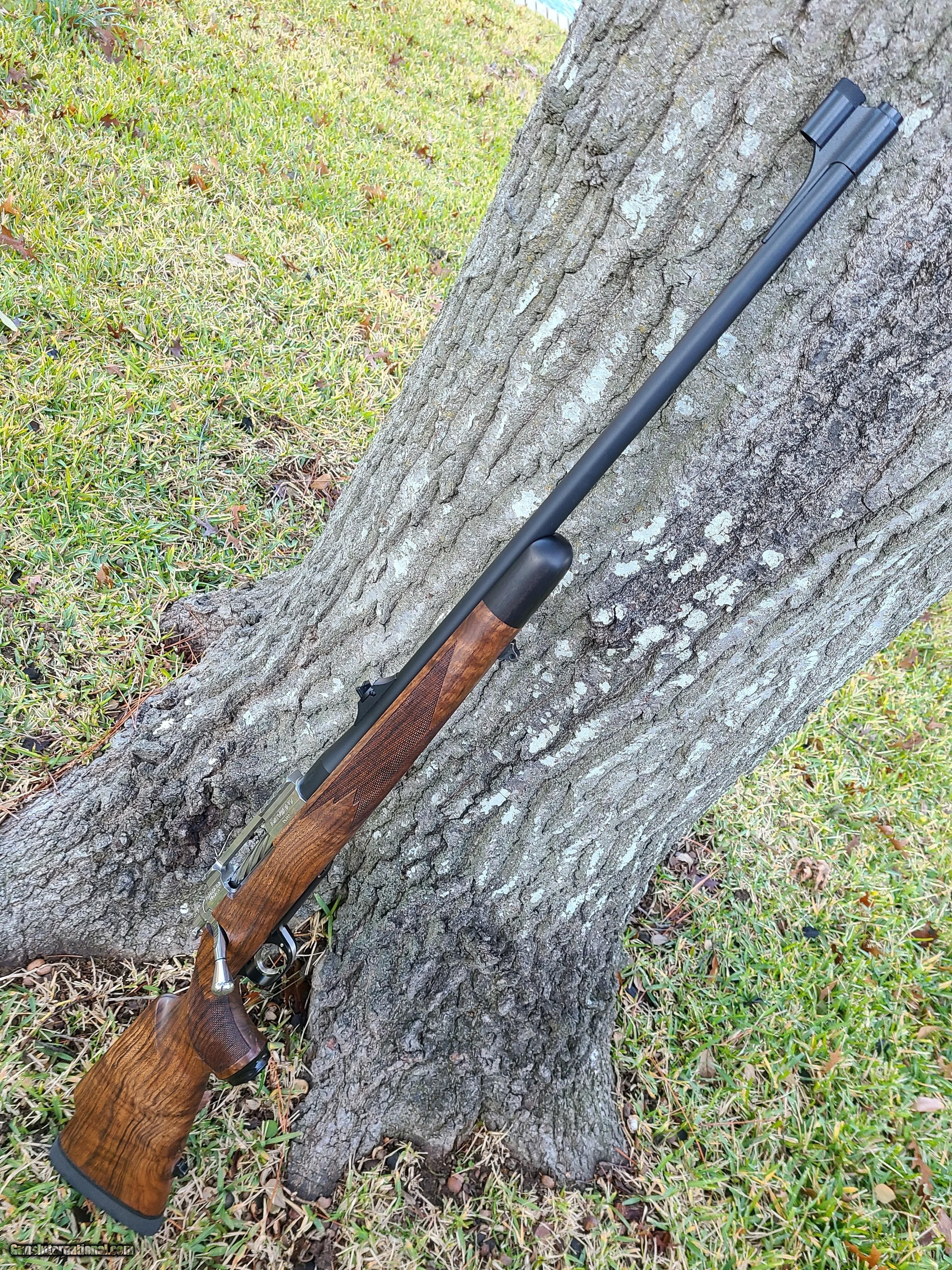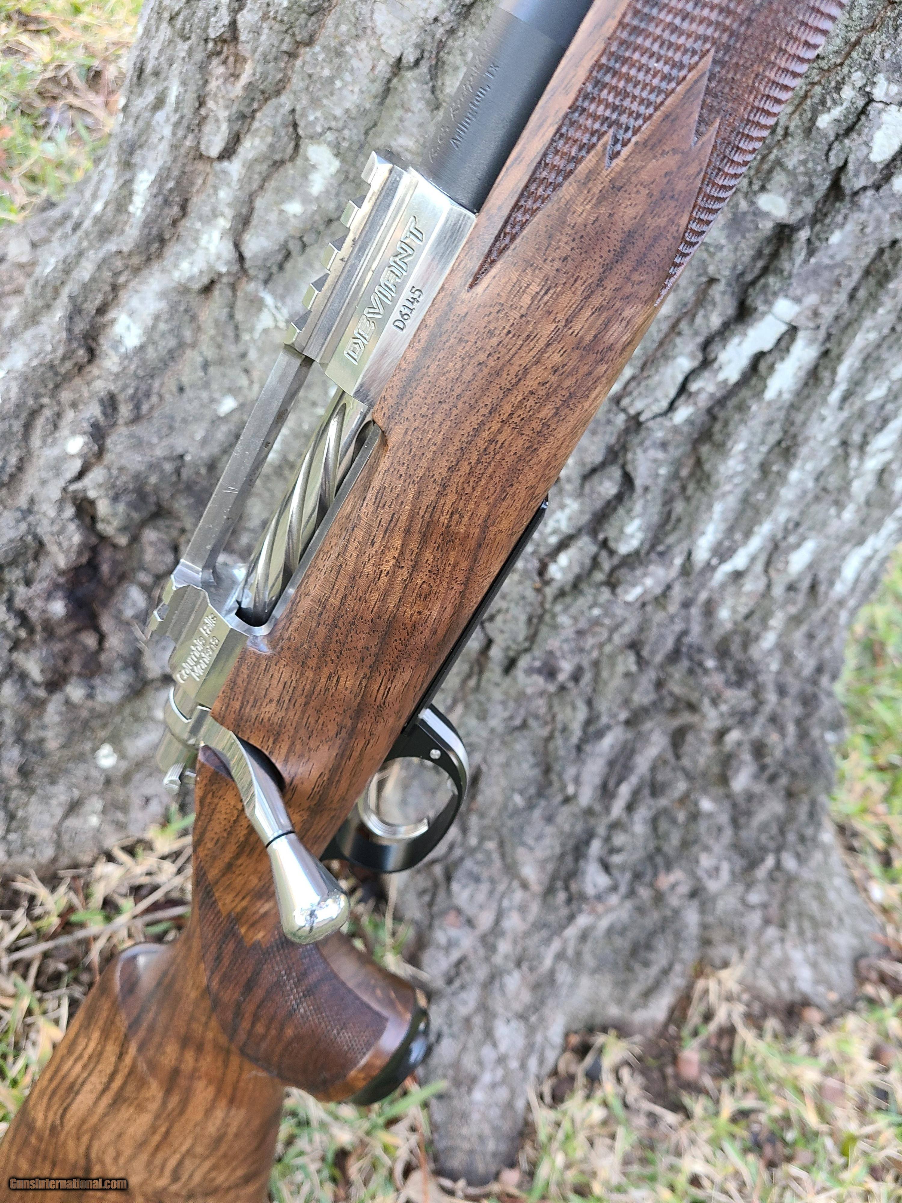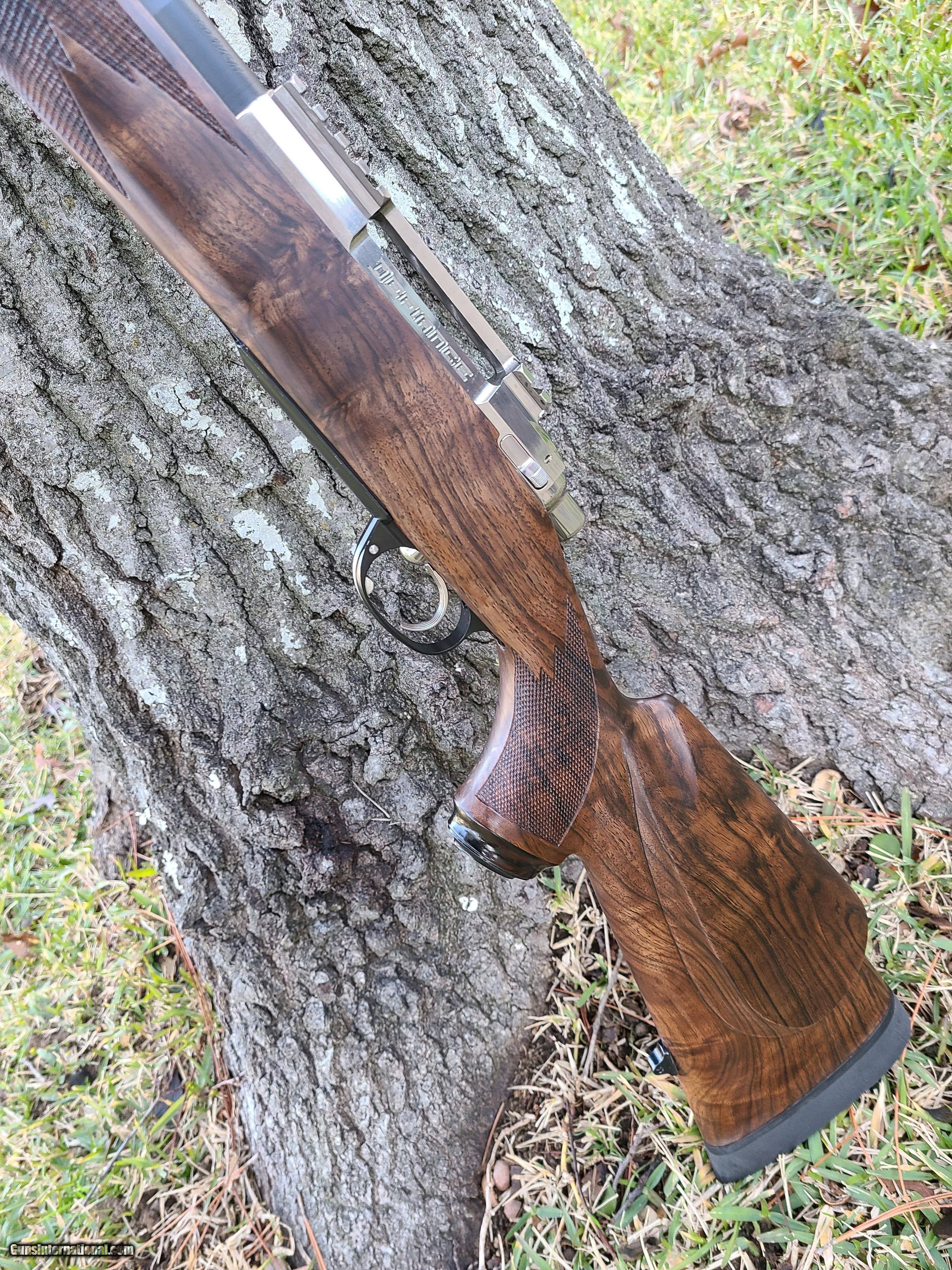 Description: Custom rifle by RC Knipstein in .300 WSM. The action is a Defiance Deviant which has been mated to a Mullerworks ss barrel with 10" twist at a length of 24". A Trigger Tech trigger has been fitted to the receiver. It has a steel floorplate by Sunnyhill Enterprises. The stock is Bastogne Walnut with McCassar Ebony accents and a Limbsaver recoil pad. This rifle is also fitted with Masterpiece iron sights. SOLD Rifle Caliber: .300 Winchester Short Magnum Manufacturer: RC Knipstein Custom Model: Defiance Deviant Serial Number: D6145 Barrel Length: 24 Bore: New Chambers: New Ejectors: Sako style Condition: New Metal Condition: New Wood Condition: New Bore Condition: New Barrels: Mullerworks ss Barrel Type: Stainless steel Action: Defiance Deviant Triggers: Trigger Tech Stock: Bastogne Walnut Fore End: Macassar Ebony forend cap Butt Pad: Limbsaver LOP: 13&1/2 Weight: 8# Sights: NECG Masterpiece iron sights Manufacture Date: 11/30/2020 Item Location: Arlington, Tx |