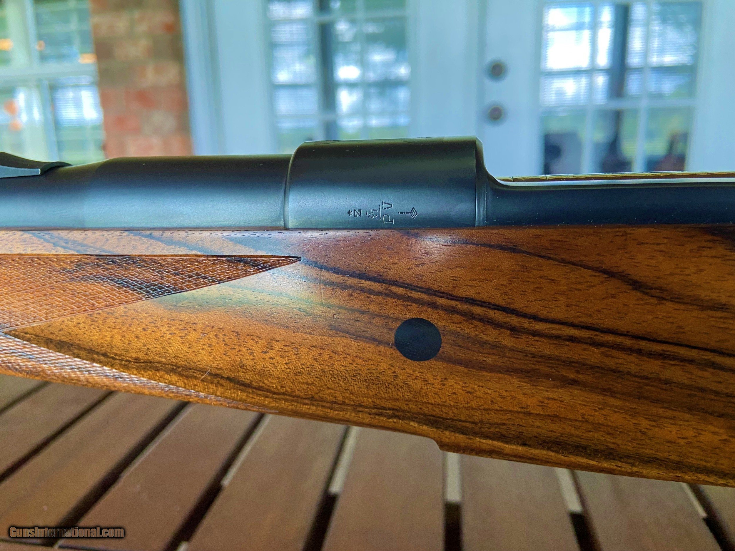 Description: SOLD PENDING INSPECTION !!!!!!!!!!!!!!!!!!!$1000.00 PTICE REDUCTION ----- BEAUTIFUL STERLING DAVENPORT COMMERCIAL MAUSER IN 338 WIN MAG -- SHADOW LINE CHEEK PIECE -- DROP FLOOR PLATE MATTE FINISH BARREL BLUE STANDING SINGLE LEAF SIGHT -- SLING SWIVEL BARREL BAND -- HOODED FRONT BANDED SIGHT -- GORGEOUS FULL FIGURED FRENCH WALNUT -- CAPPED GRIP -- EBONT TIP -- THESE ARE THE FINEST CUSTOM BIG BORE RIFLES AVAILABLE FOR THE MONEY IN A VERY USEABLE AND DESIREABLE BIG GAME CARTRIDGE -- THE PERFECT NORTH AMERICAN AND PLAINS GAME RIFLE -- HANDLES AND SHOWS BEAUTIFULLY -- ALL FINISHES REMAIN IN EXCELLENT ORIGINAL CONDITION. Description: FN / Sterling Davenport Custom Bolt Action 338 Win Mag 24"