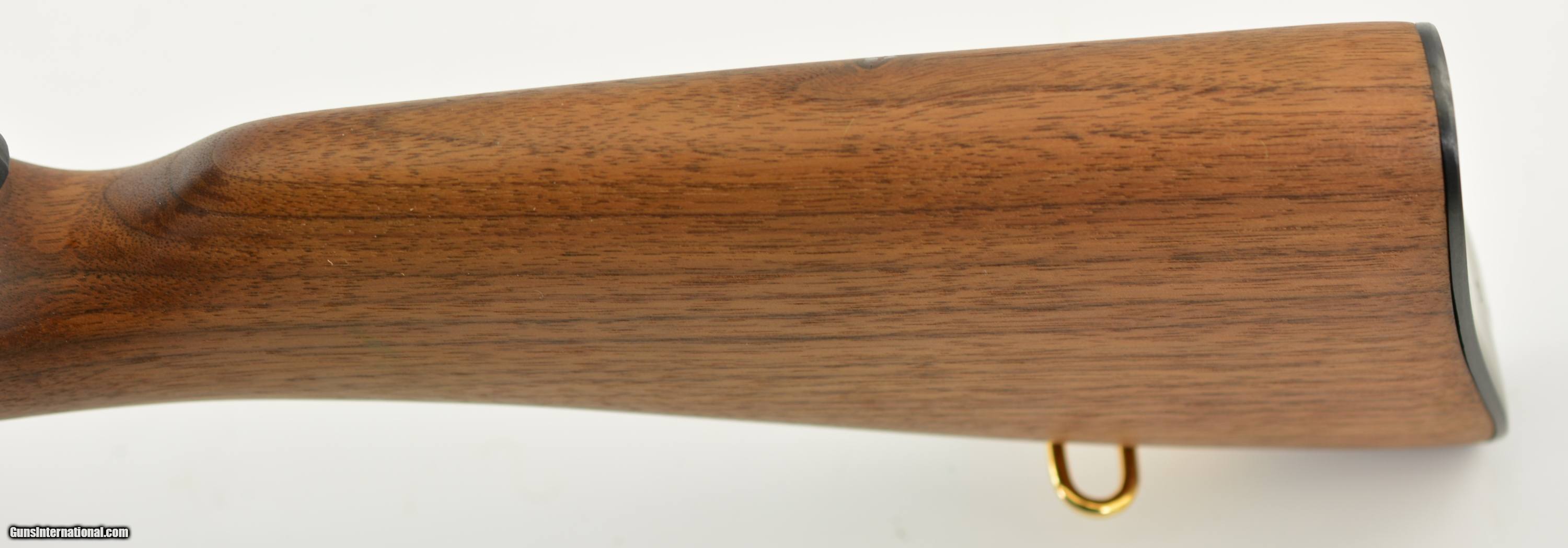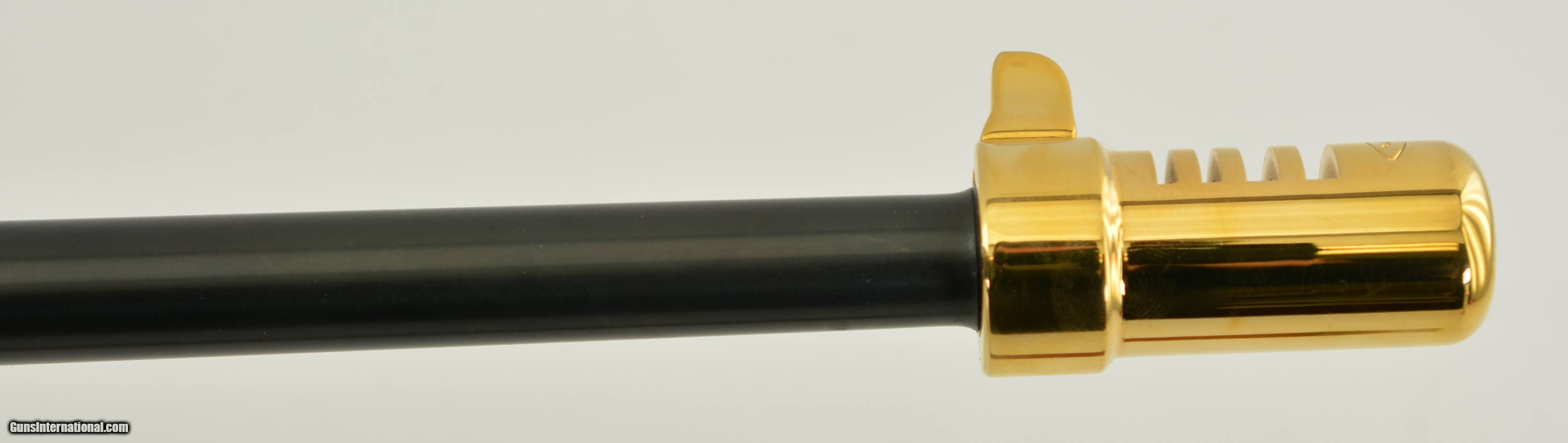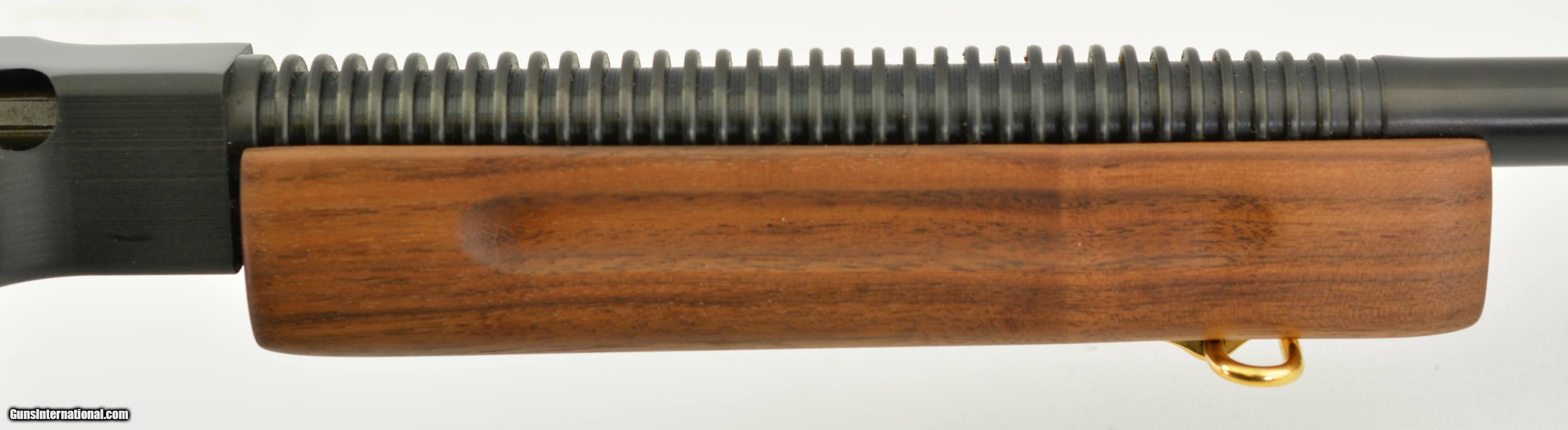 Description: Serial #ETO-010 / 19183, .45 ACP, 16 inch barrel with an excellent, bright bore. This is a West Hurley-made gun that has a bright gold plate finish on the Cutts compensator, cocking-handle, trigger, sling swivels, and rear sight protectors. The remaining metal has nearly all of the original blue finish remaining, apart from a few minor scratches on the left side opposite the ejection port, and also has a gold wash filling on the extensively marked receiver. The horizontal forend, pistol-grip, and buttstock have all of their original matte finish remaining, with almost no handling marks or blemishes, as well as excellent multi-colored enamel inlays on the pistol-grip and base of the buttstock. The gun comes with a single 20 rd. stick magazine, and the original unused leather sling. FFL or C&R SOLD Manufacturer: Auto-Ordnance Model: Thompson Serial Number: ETO-010 / 19183 Caliber Info: .45 ACP Gauge Info: .45 ACP |