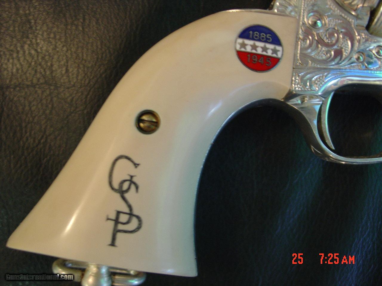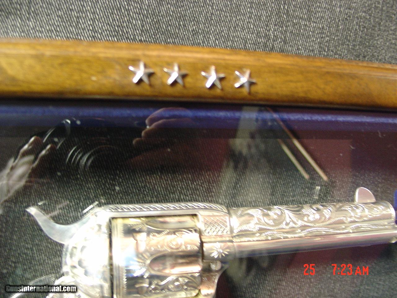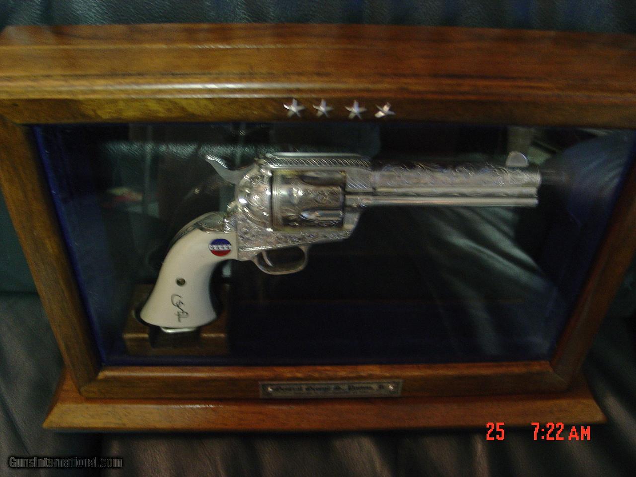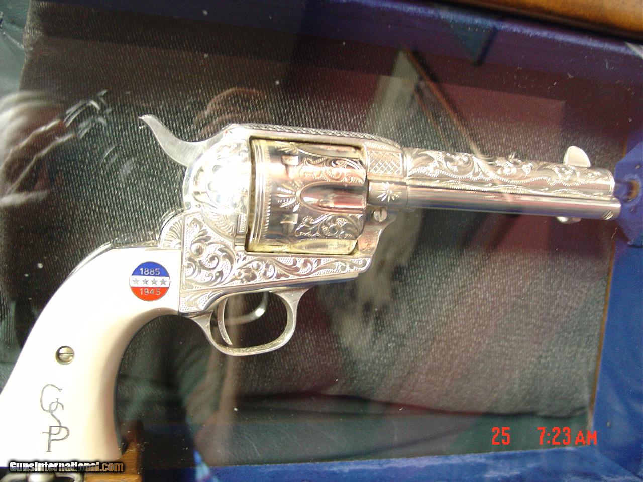 Colt SAA replica from Uberti & America remembers,General Patton Tribute 45Colt,pure silver plated,factory engrave,stand up pres case,faux ivory,