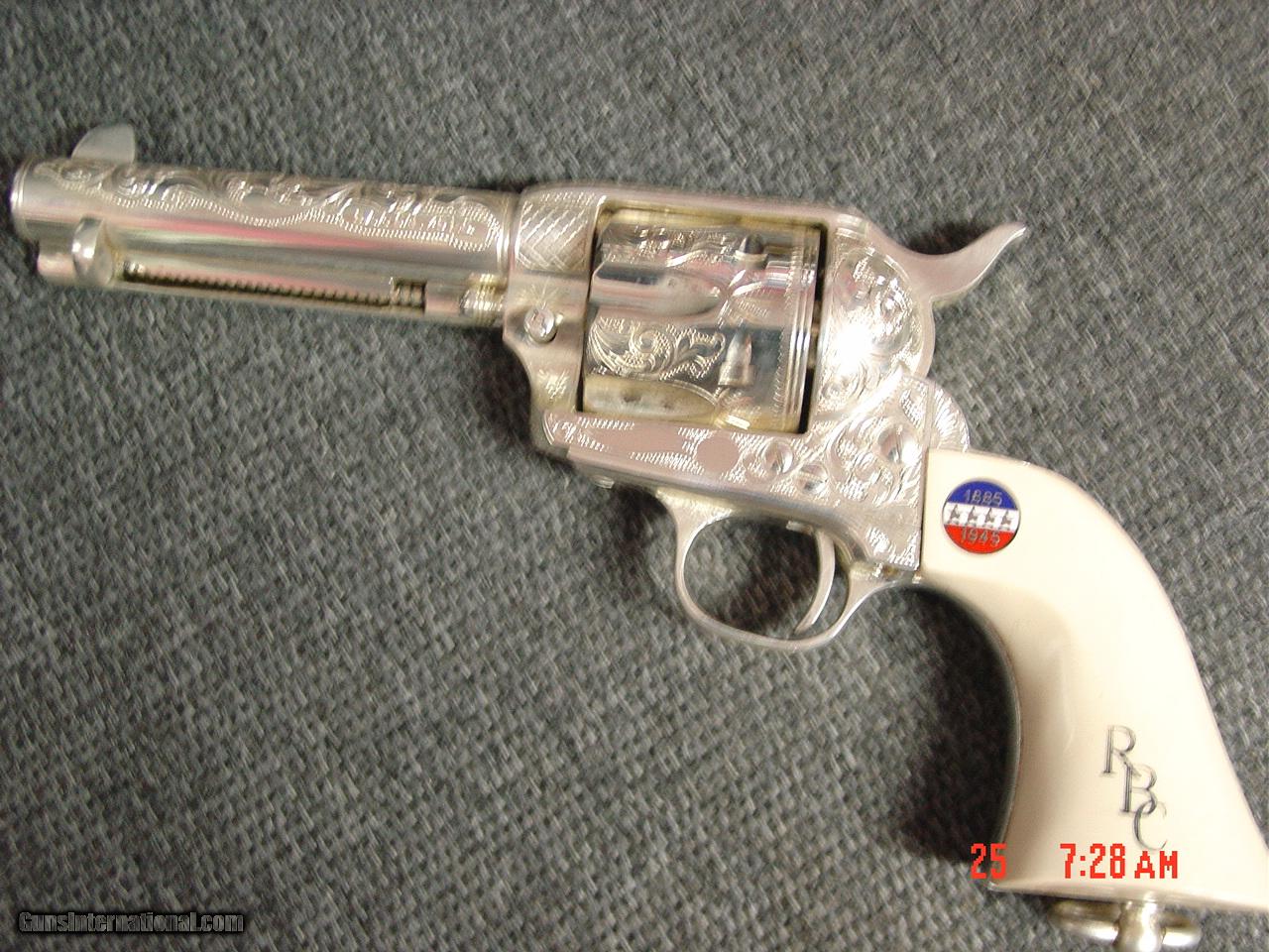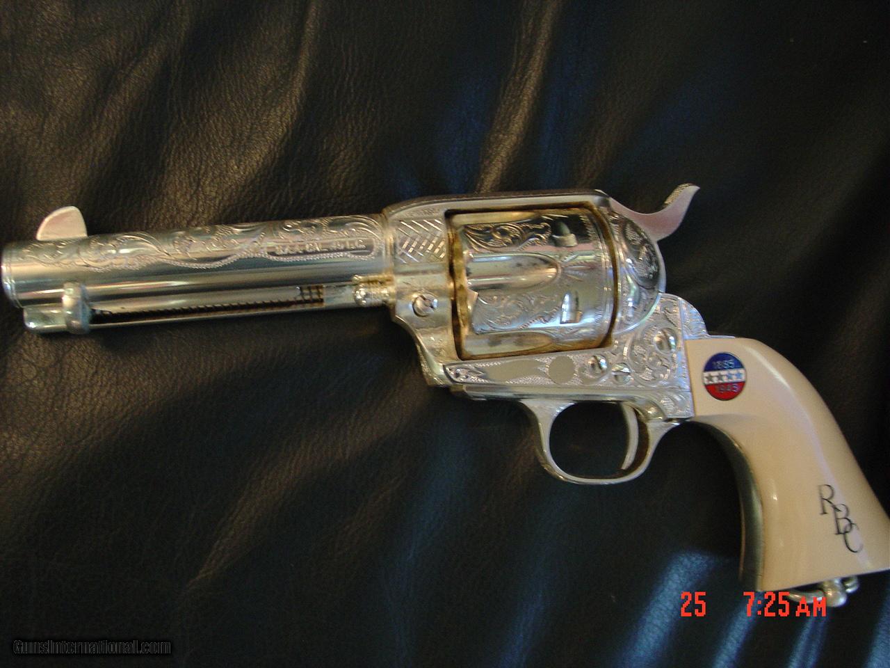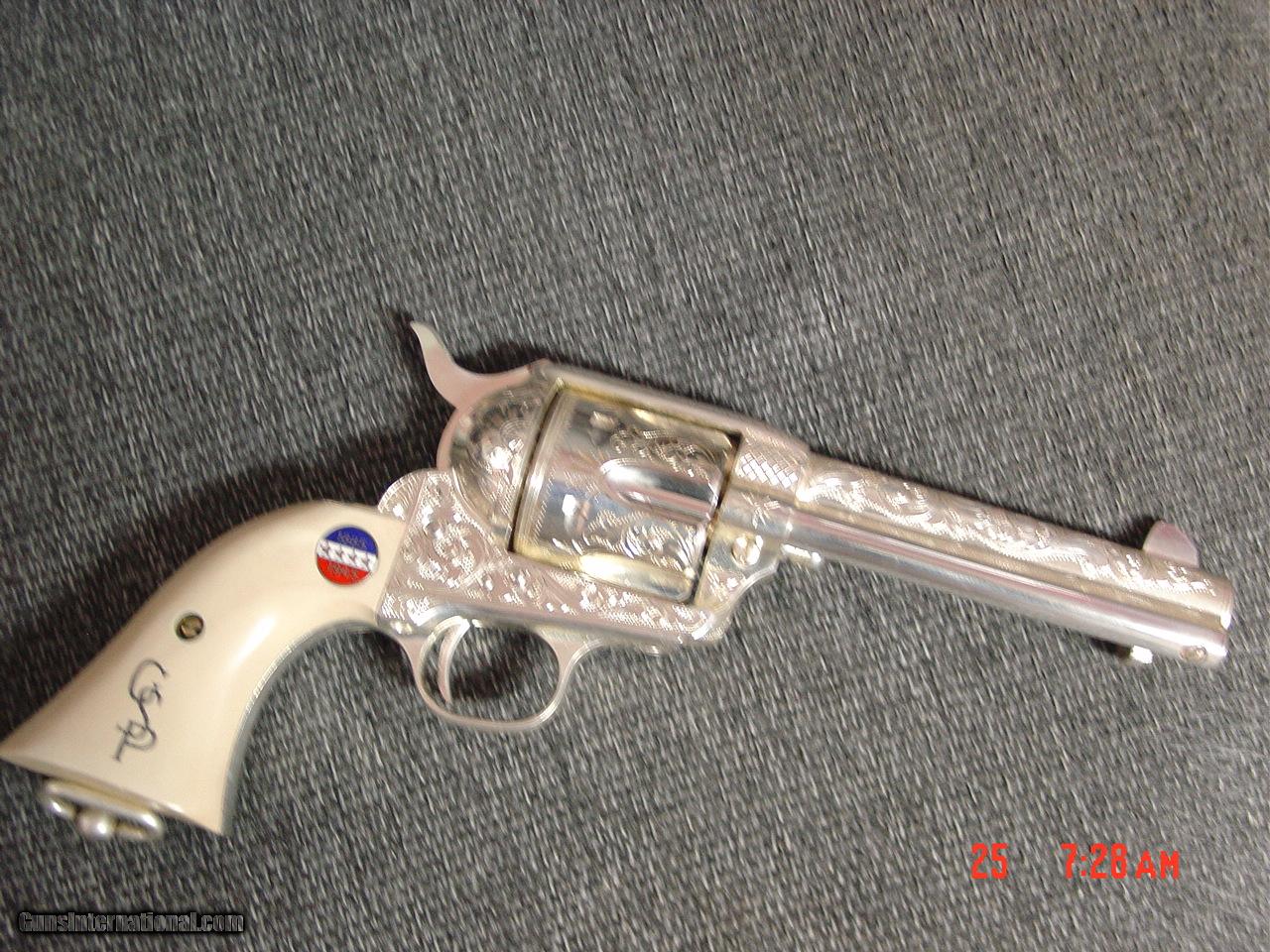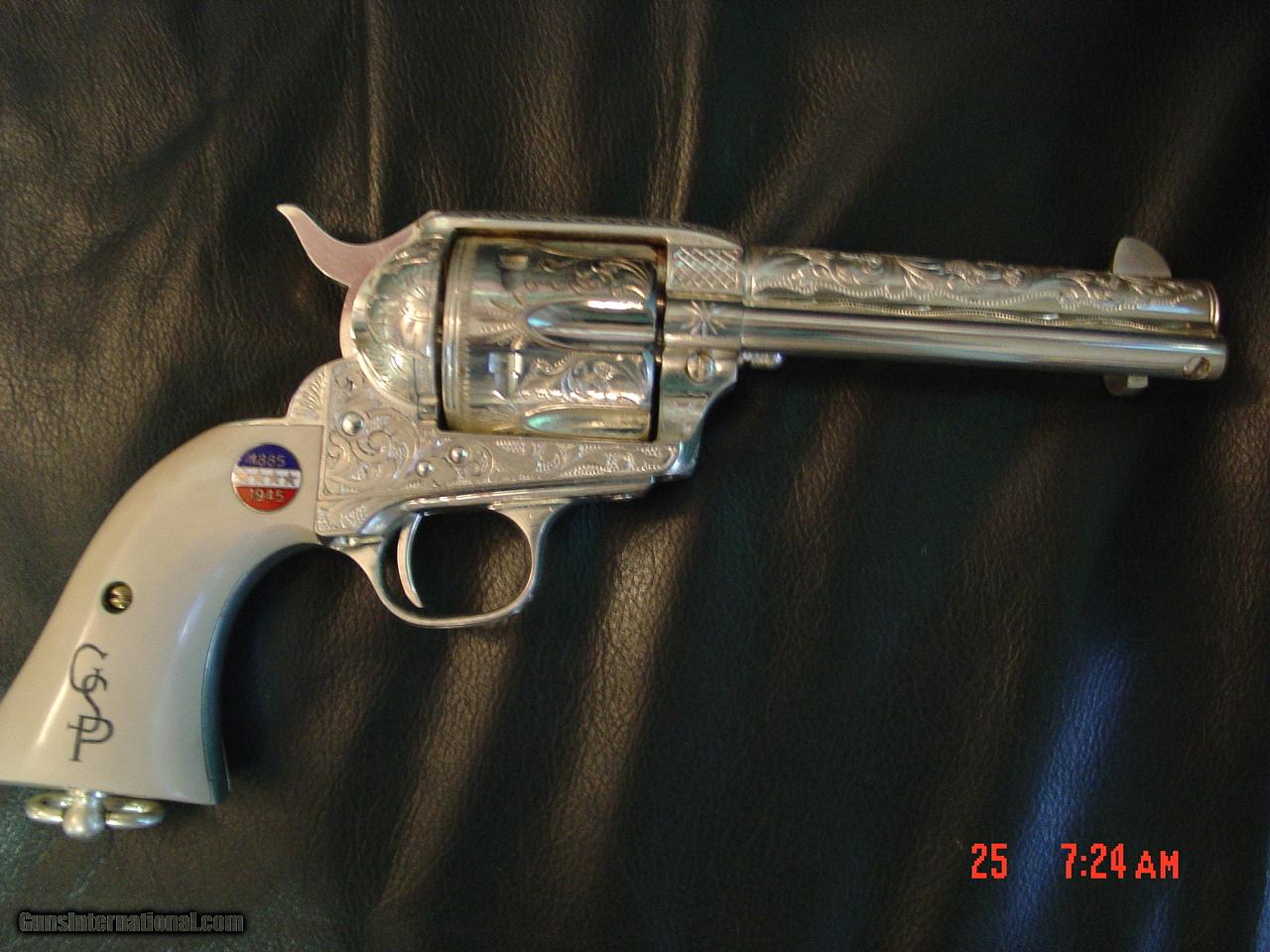Colt SAA replica from Uberti & America remembers,General Patton Tribute 45Colt,pure silver plated,factory engrave,stand up pres case,faux ivory,