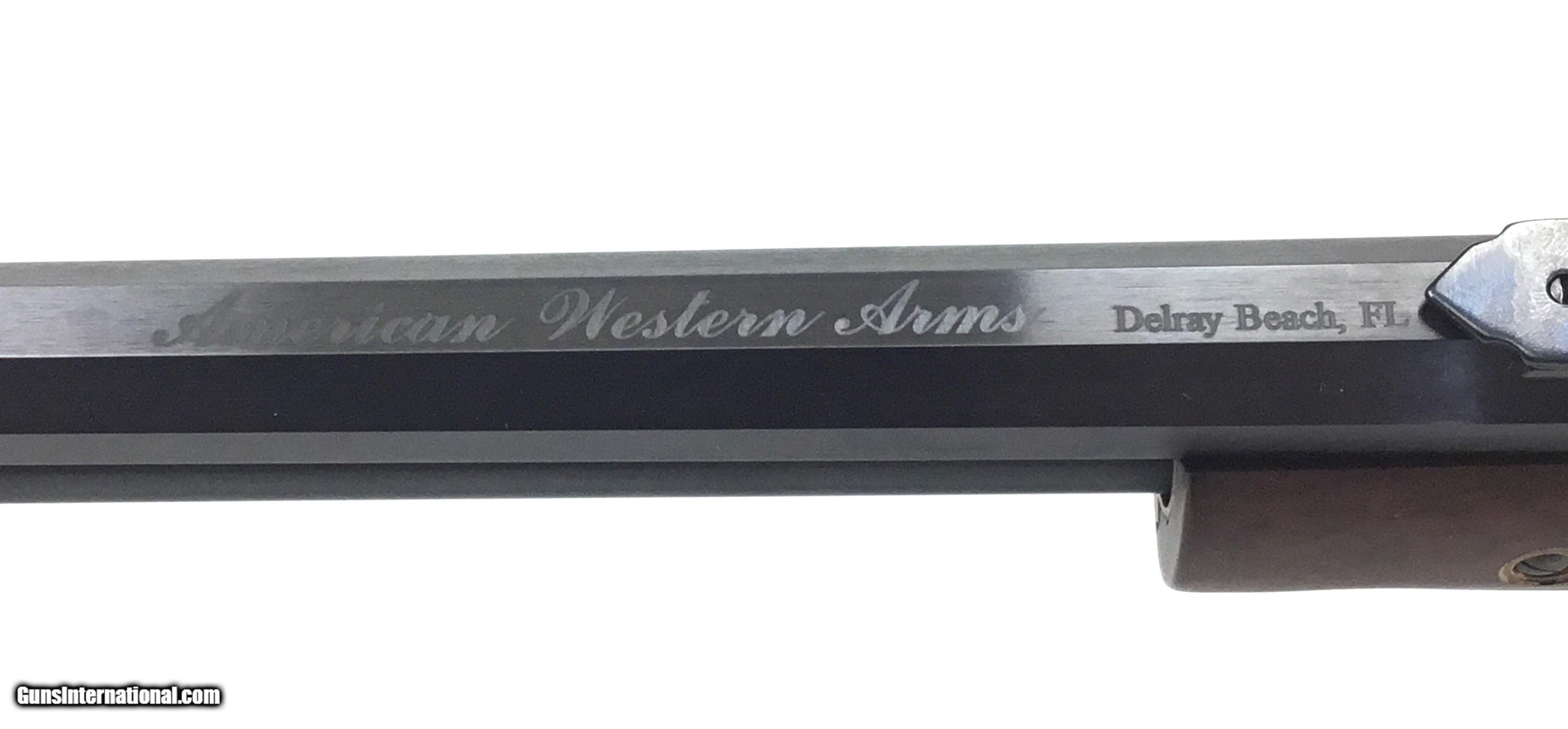 Description: American Western Arms Lightning 45 Colt Pump Action Rifle, Lightly Figured Straight American Walnut Stock over Curved Butt Plate, 24” Octagon Barrel with Semi-Buckhorn Rear Sight and Brass Front Blade, Highly Polished Receiver Engraved with AWA Logo, Weight: 6 lbs. 6 oz. SN-LOO-3121, #868, $679.00, HAMPELSGUNCO SINCE 1919 SOLD |