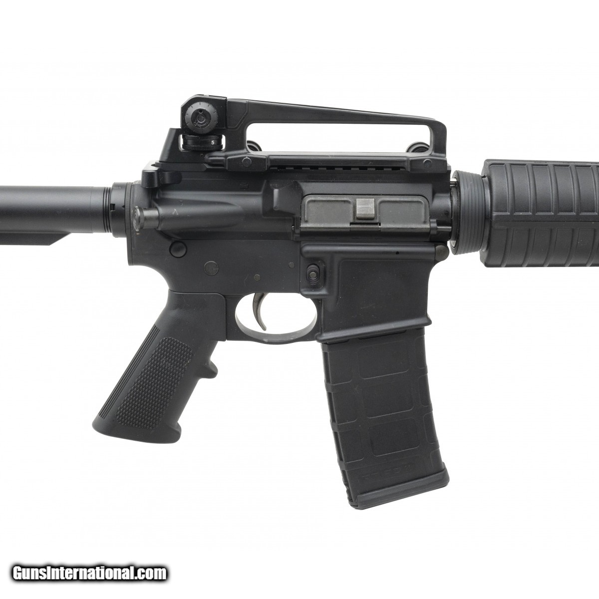 SN: 16446498. Lower receiver was made in 2016 & was paired with an M4 profile flat-top upper with standard handguards made by DPMS. The 16-inch barrel is 1 in 9 twist & has a traditional A1 type front sight base as well as an A2 type flash suppressor. Bore is bright with strong rifling. The receiver has aftermarket fire control components in it & the carbine length buffer tube has a plastic 6-position collapsible waffle stock. The M16 type bolt carrier is equipped with an ""MPI"" marked bolt. Comes with a black nylon ""silent"" sling, a detachable carry handle with A2 type windage adjustable rear sight assembly & a plastic ""shoot through"" muzzle cap.