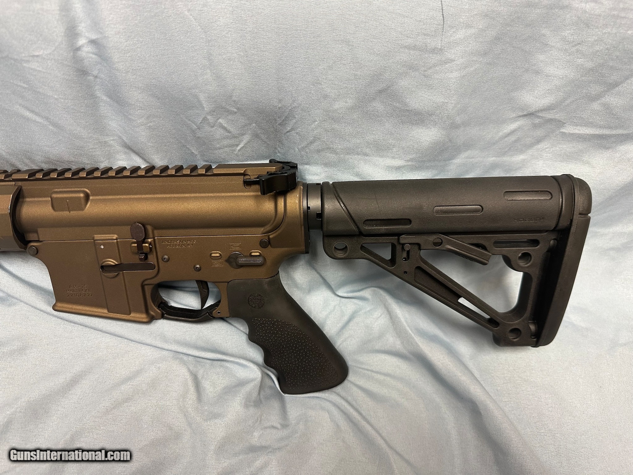 Description: Guns Listing ID: 848452 Order contains 1-Anderson am15 rifle. Parts in rifle contain Midwest industries muzzle break, ballistic advantage barrel in 5.56, aero precision enhanced handguard, Midwest industries bolt carrier, cmc lower parts kit/no trigger, rise armament trigger pack, hogue grip and stock. SOLD Manufacturer: ANDERSON MANUFACTURING Model: AM 15 Caliber Info: 5.56X45MM NATO Condition: Used - Non-Certified Barrels: 16 BARREL Finish: BURNT BRONZE |