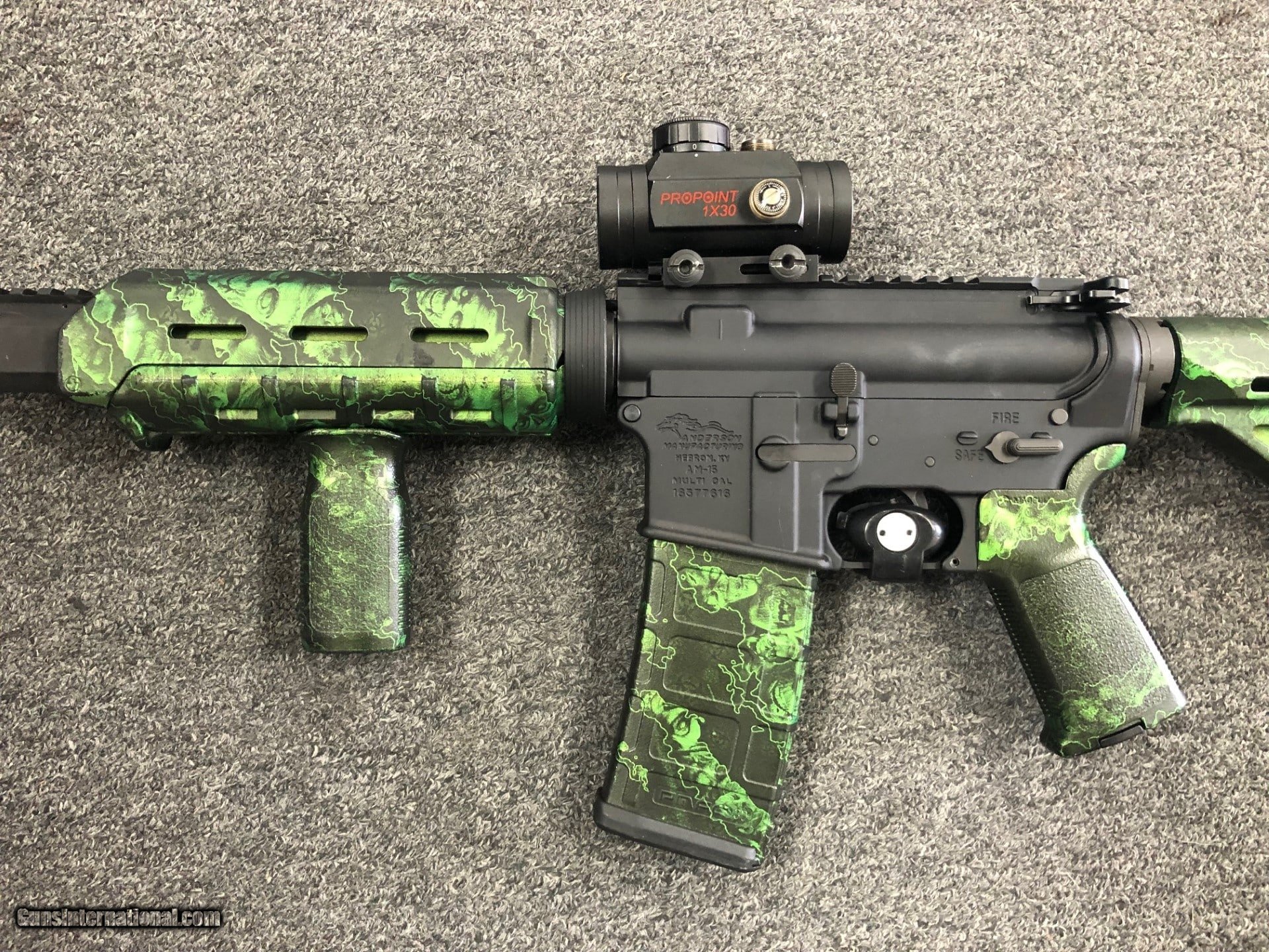 Description: Guns Listing ID: 925587 Comes with zombie themed Magpul furniture, I believe it was sold originally by Matrix Diversified. It‚‚s getting hard to find the zombie themed stuff now that it is out of vouge. Also comes with a Tasco Pro Point red dot mounted on top, missing the turret covers. See photos for condition SOLD Manufacturer: ANDERSON MANUFACTURING Model: AM-15 Caliber Info: 5.56X45MM NATO Condition: Used - Non-Certified Barrels: 16 BARREL Finish: BLUE |