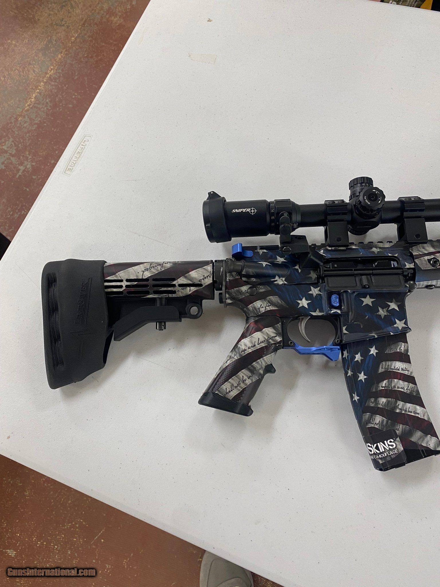 Description: Guns Listing ID: 375231 Very patriotic looking rifle comes with three magazines SOLD Manufacturer: ANDERSON MANUFACTURING Model: AM-15 Caliber Info: 5.56X45MM NATO Condition: Used - Non-Certified Barrels: 18 BARREL Finish: RED, WHITE, AND BLUE Weight: not specified |