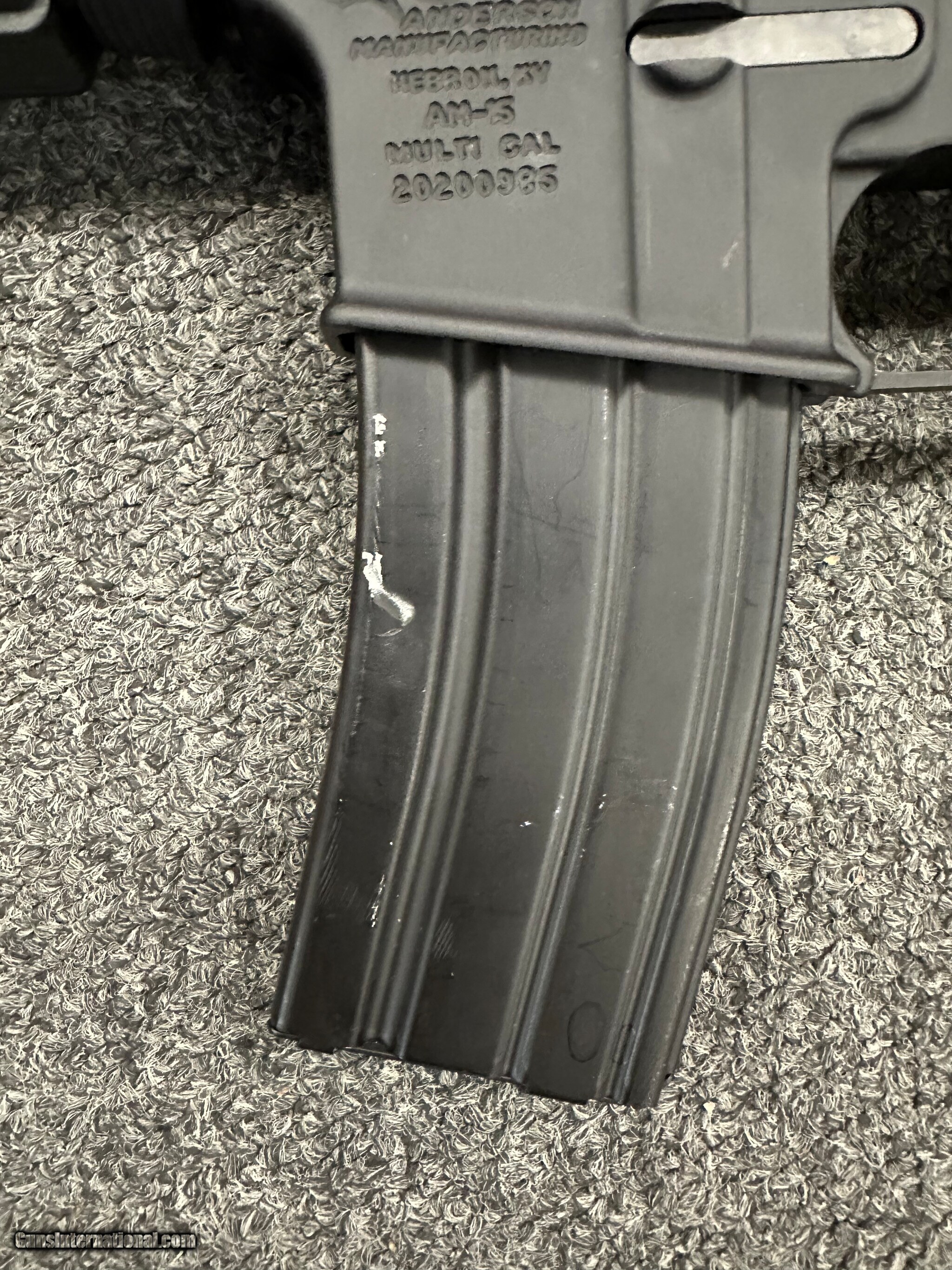 Description: Guns Listing ID: 661177 Anderson AM-15 in good condition with minor scuffs (pictured). Features a birdcage flash hider. Comes with 1-30 RND magazine. SOLD Manufacturer: ANDERSON MANUFACTURING Model: AM-15 Caliber Info: .223 / 5.56 NATO Condition: Used - Non-Certified Barrels: 16 BARREL Finish: BLACK |