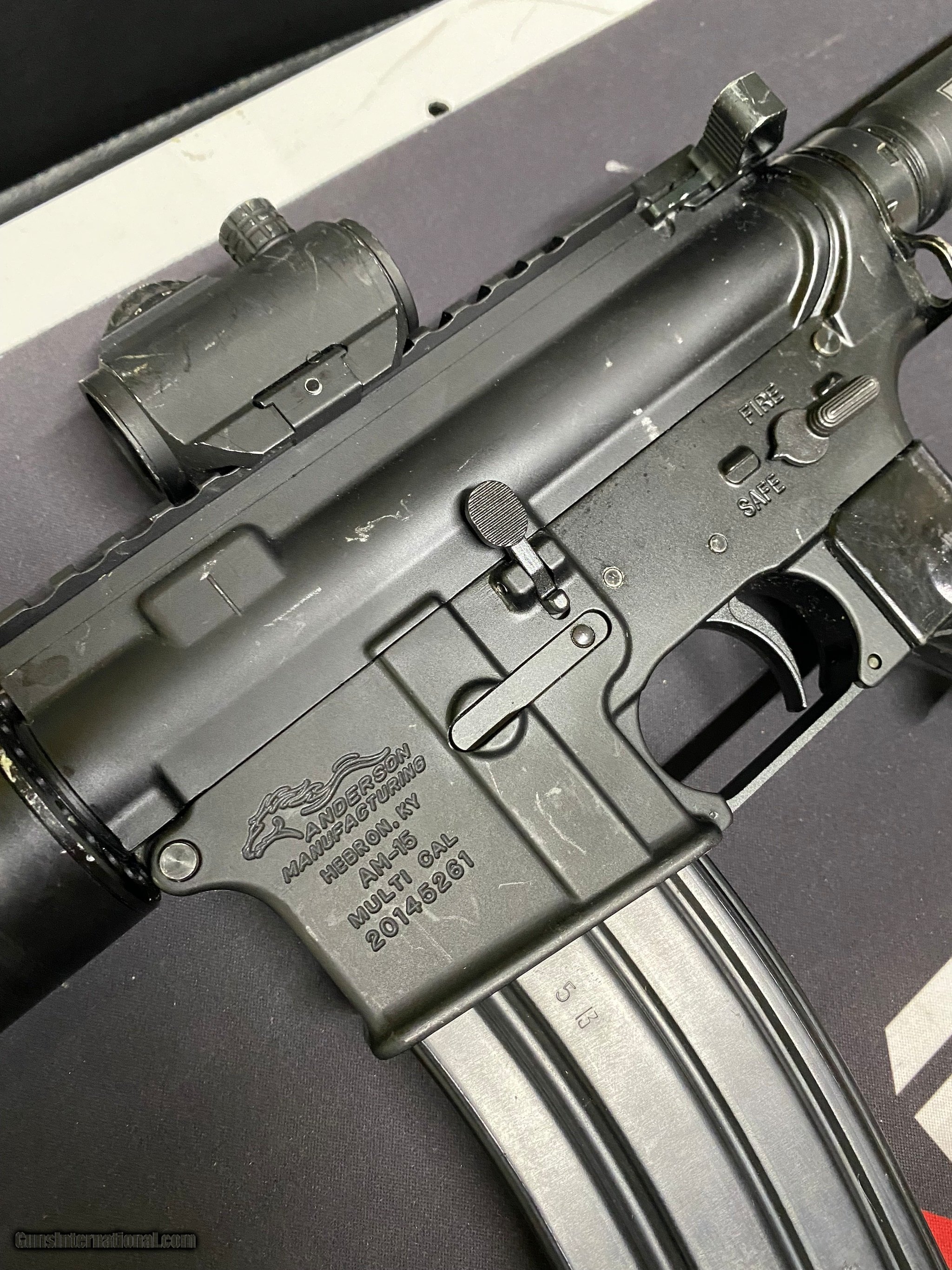 Description: Guns Listing ID: 730611 *** PRE-OWNED / IN VERY GOOD CONDITION *** (WITH MINOR WER AND TEAR / SEE ALL PHOTOS) . \" ANDERSON MANUFACTURING AM-15 MULTI CAL. SEMI-AUTO RIFLE \" . \"COMES WITH OPTIC SCOPE AND ONE 30-ROUND MAGAZINE \" . \" SEE ALL PHOTOS \" . \" ALL FIREARMS ARE INSPECTED BY A CERTIFIED GUNS-SMITH & NRA INSTRUCTOR \" (ITEM CODE: G-2007836-1) (BLS) SOLD Manufacturer: ANDERSON MANUFACTURING Model: AM-15 Caliber Info: 5.56 / 223 Condition: Used - Non-Certified Barrels: 17 BARREL Finish: BLACK |