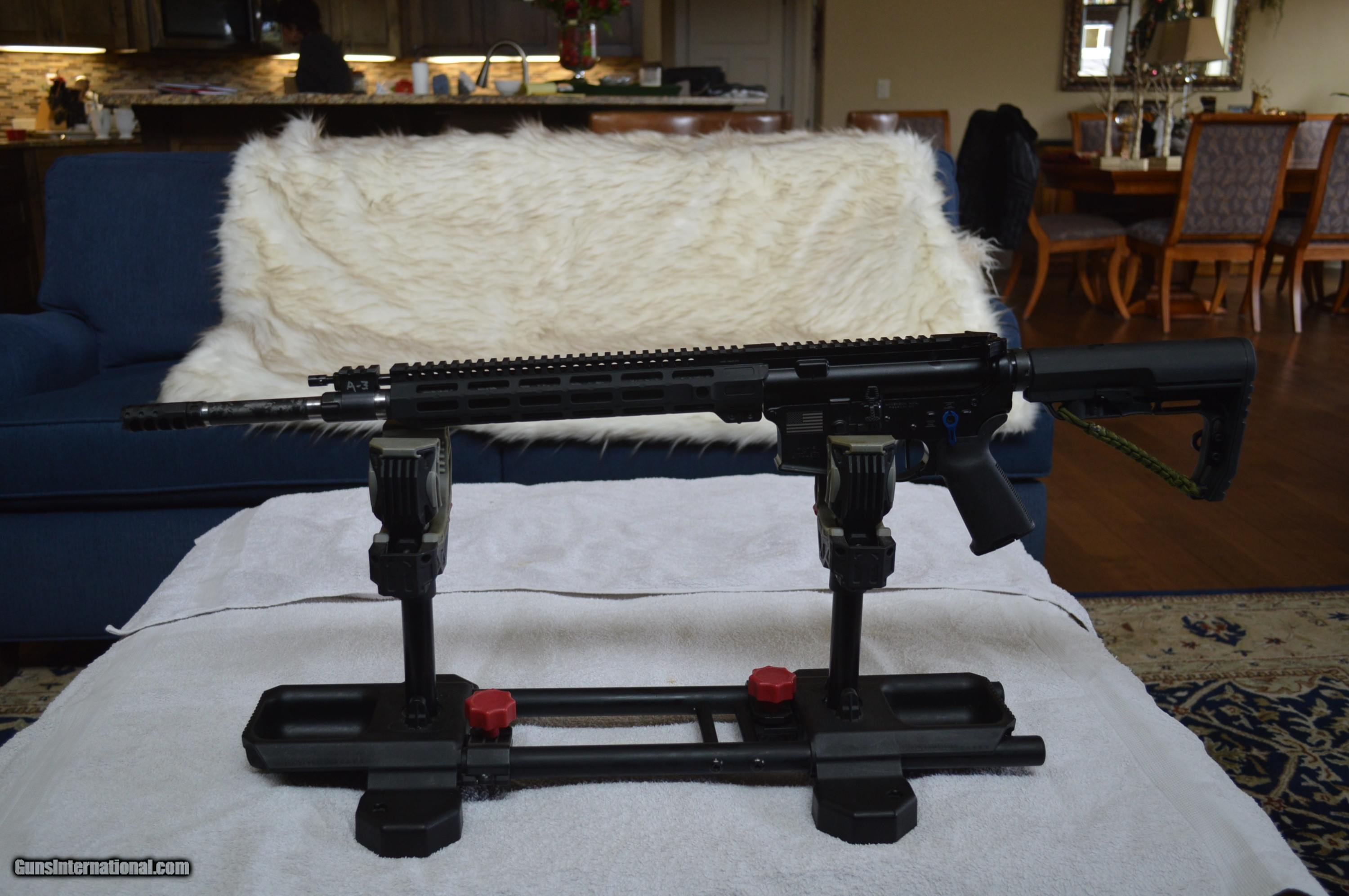 Description: This rifle is new, unfired, unscratched,built with the following new parts: Anderson Manufacuring lower receiver (SN: 21094500), Sons of Liberty (SOLGW) upper receiver, JP Enterprises Bolt Carrier Group (LMOS model), JP Enterprises silent captured spring, JP Enterprises oversize takedown/pivot pins, Proof Research Carbon Fiber wrapped barrel, 223 Wylde, 18", 1-8 twist, Proof Research fitted gas block/tube,Midwest Industries handguard,11.5", (Model MI-CRM 11.5), Timney adjustable trigger (Daniel Horner model), Mission First Tactical (MFT) lightweight stock w/woven parachute cord and 6 slot buffer tube, Trybe Defense ambidextrous charging handle, Precision Armanent muzzle brake(Hypertap),Battle Arms enhanced bolt catch & magazine release, CMMG ambidextrous magazine release, Leapers ambidextrous safety, Leapers QD receiver end plate. Total parts cost- $2282. The barrel to upper receiver fit is tight along with the addition of JP oversize takedown/pivot pins and Proof Research barrel should lend it to good accuracy. Yes, the rifle is being sold at a very reasonable price as I'm in the process of downsizing. SOLD Rifle Caliber: .223 Remington |