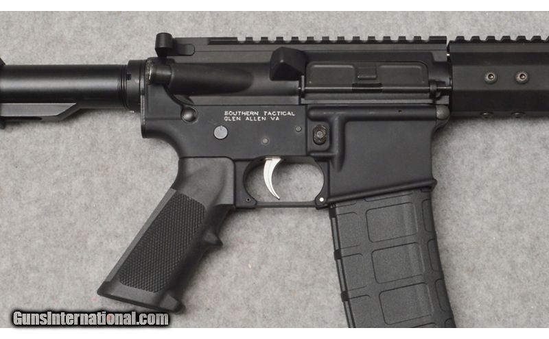 Description: This Southern Tactical Model AM-15 semi auto carbine built on an Anderson Manufacturing lower, in 5.56 X 45MM Nato/.223 Remington is new. The blued 16" carbine length barrel is enclosed by a 15" blued slotted aluminum fore end hand guard. This Southern Tactical rifle comes with an adjustable 6 position butt stock, mil-spec trigger, flat trigger guard, and a Magpul PMAG 30 Gen2 magazine. No box or other accessories are included. 5.56x45mm NATO SOLD Metal Condition: New Bore Condition: New Barrels: Blued 16 Triggers: Mil-Spec Stock Dimensions: LOP 10 1/2" to 14 Fore End: Free Float 15" Blued Slotted Aluminum Butt Pad: Adjustable 6 Position Weight: 6 Lbs 8 Oz. Sights: None - Picatinny Rail Item Location: West Chester, OH |