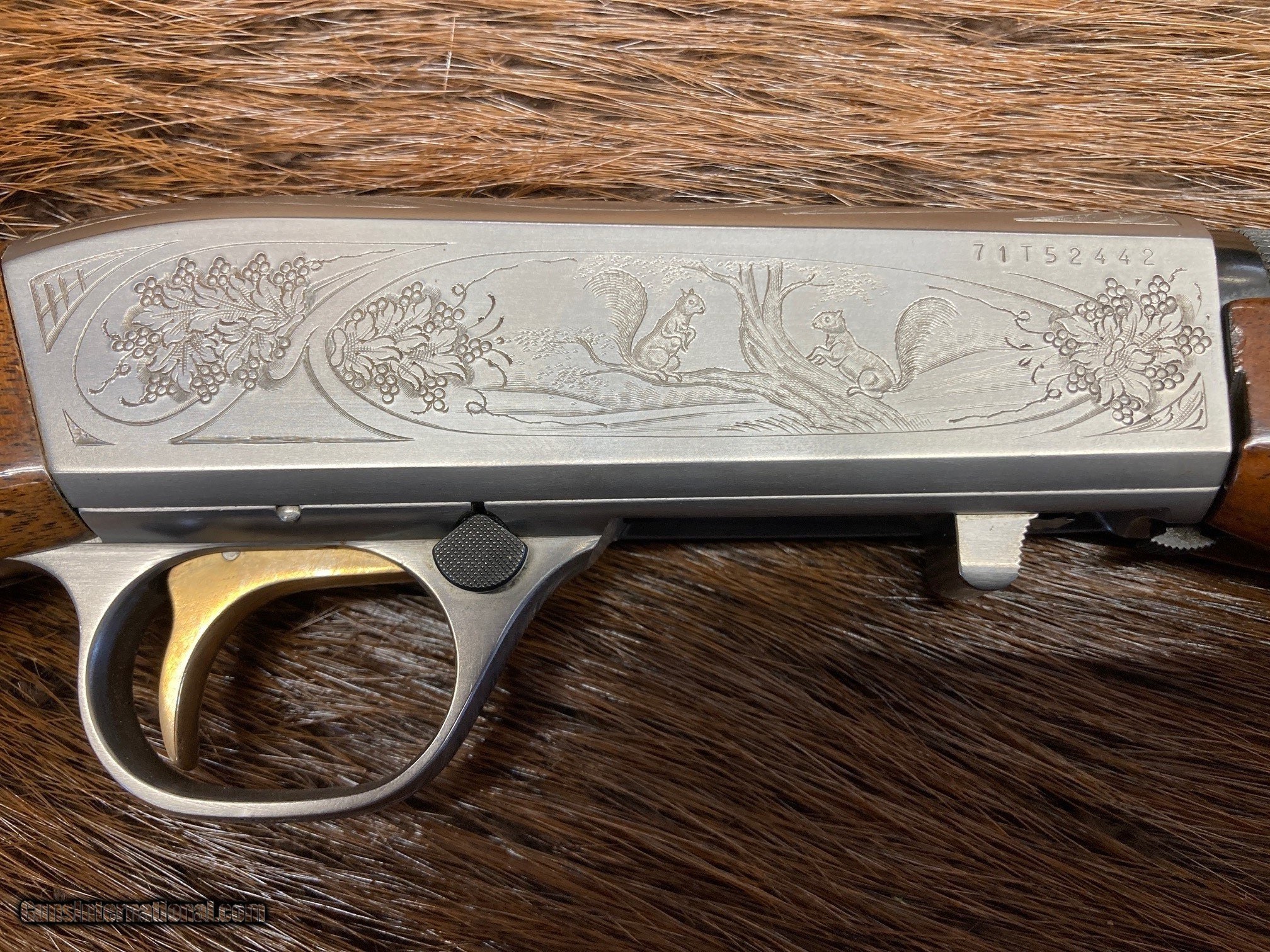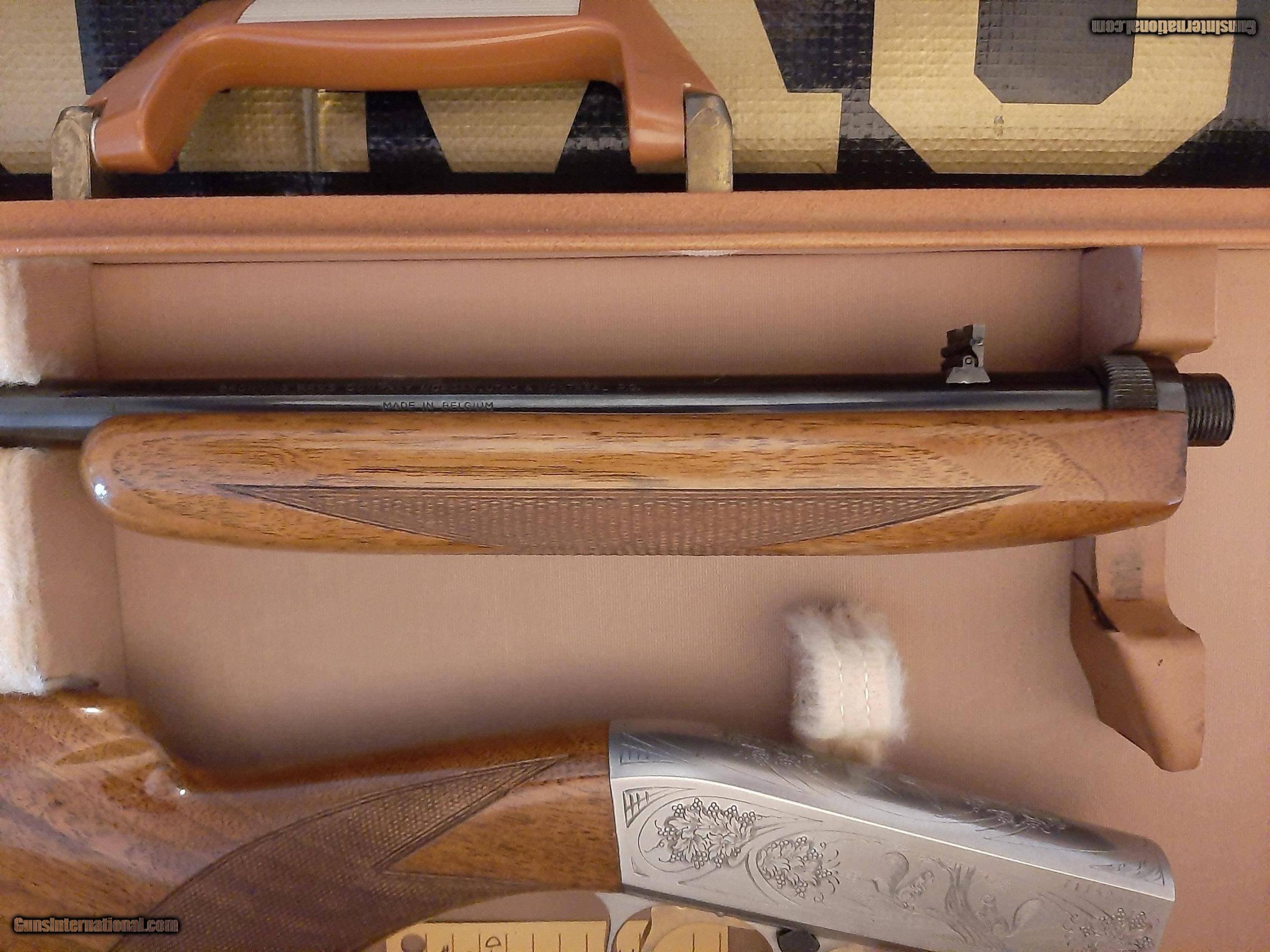 Description: Browning SA-22 Grade II, made in Belgium. Engraver was Angelo Bee, with his signature on the gun. Original in 99% condition. It is relatively rare for an engraver in the employ of a factory to have signed their work. SN: 71T52442. Includes the factory case. No box. $3,999 plus shipping and insurance. No sales to CA or anywhere originating shipper must be an FFL. Price is firm as it’s fair. No trades. Cash, check, money order or gold & silver only. Owner is determined by payment received and verified, not some other assumption or understanding unless mutually agreed to in writing. No texts…email or USPS only. Gun will be packed exceedingly well but not insured. No shipments to states such as CA where they require the shipper be an FFL, with exception of pistols or revolvers. All shipments to receiver of course to an FFL. SOLD Rifle Caliber: .22 Long Rifle |