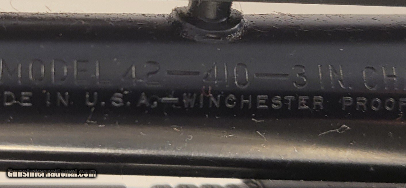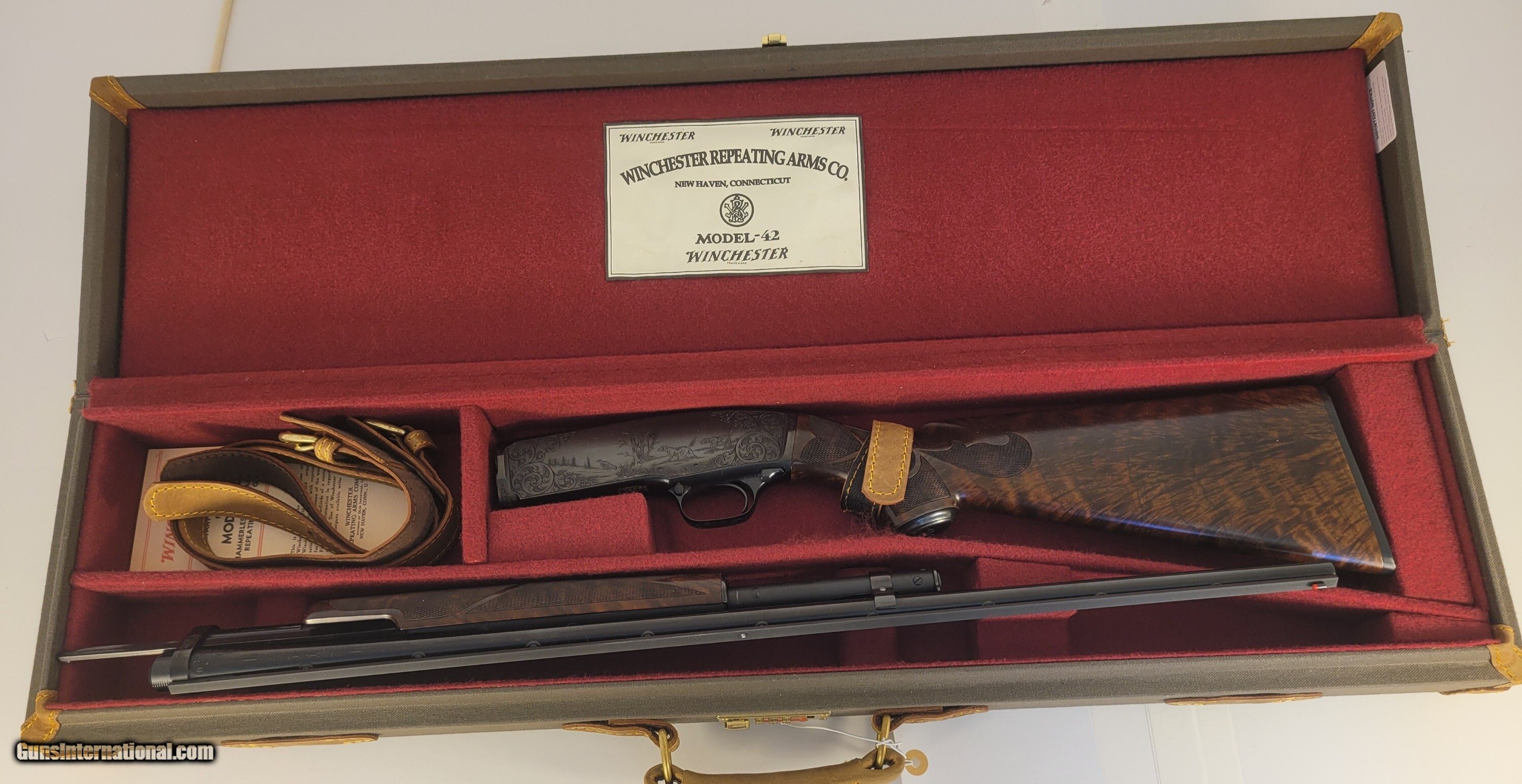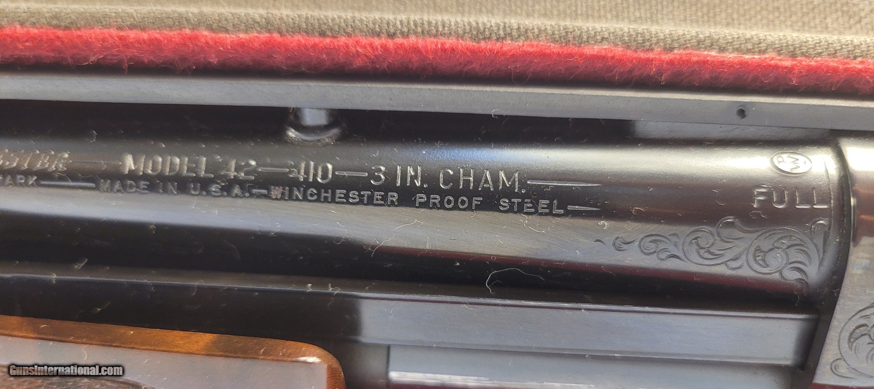 Description: Winchester Model 42 410 ga Angelo Bee Engraved amazing wood excellent condition in custon case Manufacturer: Winchester Model: 42 Serial Number: 132023 Barrel Length: 26 Bore Info: Excellent Chambers: 410 Condition: Excellent Metal Condition: Excellent Wood Condition: Excellent Bore Condition: Excellent Action: pump Rib: vent rib Finish: Factory Manufacture Date: 1958 Chokes: Full Engraving: Angelo Bee Case: custom case Price: $10,750.00 Shipping: $65.00 Buy Now Contact Seller |