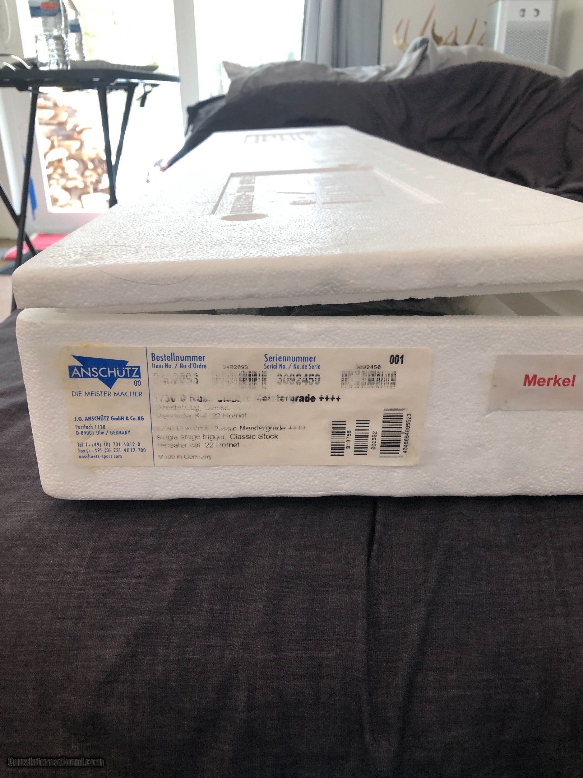 Description: This gun it’s in the box never shot all original paperwork I have it’s twin sister with consecutive serial numbers which is not for sale unless the offer was good enough for me .Twin sister is in the same condition never shot all paperwork original box I have several. you will never find a gun like this brand new in the box never shot the bolt never been in it Only from the factory I am a gun collector . Thanks Danny SOLD Manufacturer: Anschutz Merkel Germany Model: 1730 D 54 action Meister grade 22 hornet Serial Number: 3092449 Barrel Length: 24” Bore: 100% Chambers: 100% Ejectors: 100% Condition: 100% brand new in box Metal Condition: 100% Wood Condition: 100% Bore Condition: 100% Barrel Type: Round Action: 54 action Triggers: Single stage Stock: Meister grade beautiful walnut fiddle back Stock Dimensions: ? Stock Drop: New Stock Comb: New Stock Heel: New Stock Cast: New Fore End: New Butt Pad: New Weight: 7lbs Sights: None Dovetail Manufacture Date: 2007 Chokes: None Choke Left: None Choke Right: None Engraving: None Extras: Clip Case: Original form bucks plus shipping box Item Location: mich. |