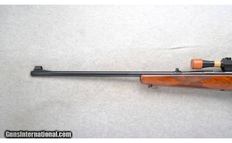 Description: This Anschutz Model 1416 DST is a right hand bolt action rifle in .22 Long Rifle Cal. It has a 21.5 inch barrel. A hooded front blade sight and a two position notch middle sight. It is outfitted with a Bushnell Scope. It has a double set trigger. The butt stock is a checkered grip walnut pistol grip with a raised cheekpiece. The forearm is a checkered grip walnut. .22 Long Rifle SOLD Chambers: Detachable Magazine. Metal Condition: Excellent. Wood Condition: Very Good. Bore Condition: Excellent. Barrels: 21.5 inch. Triggers: Double set trigger. Stock Dimensions: LOP 14 inches. Fore End: Checkered grip walnut. Butt Pad: Grooved black plate. Weight: 6 lb. 0 oz. Sights: Hooded front blade. Two position notch middle. Bushnell 4X Scope. Item Location: Richfield, WI |
