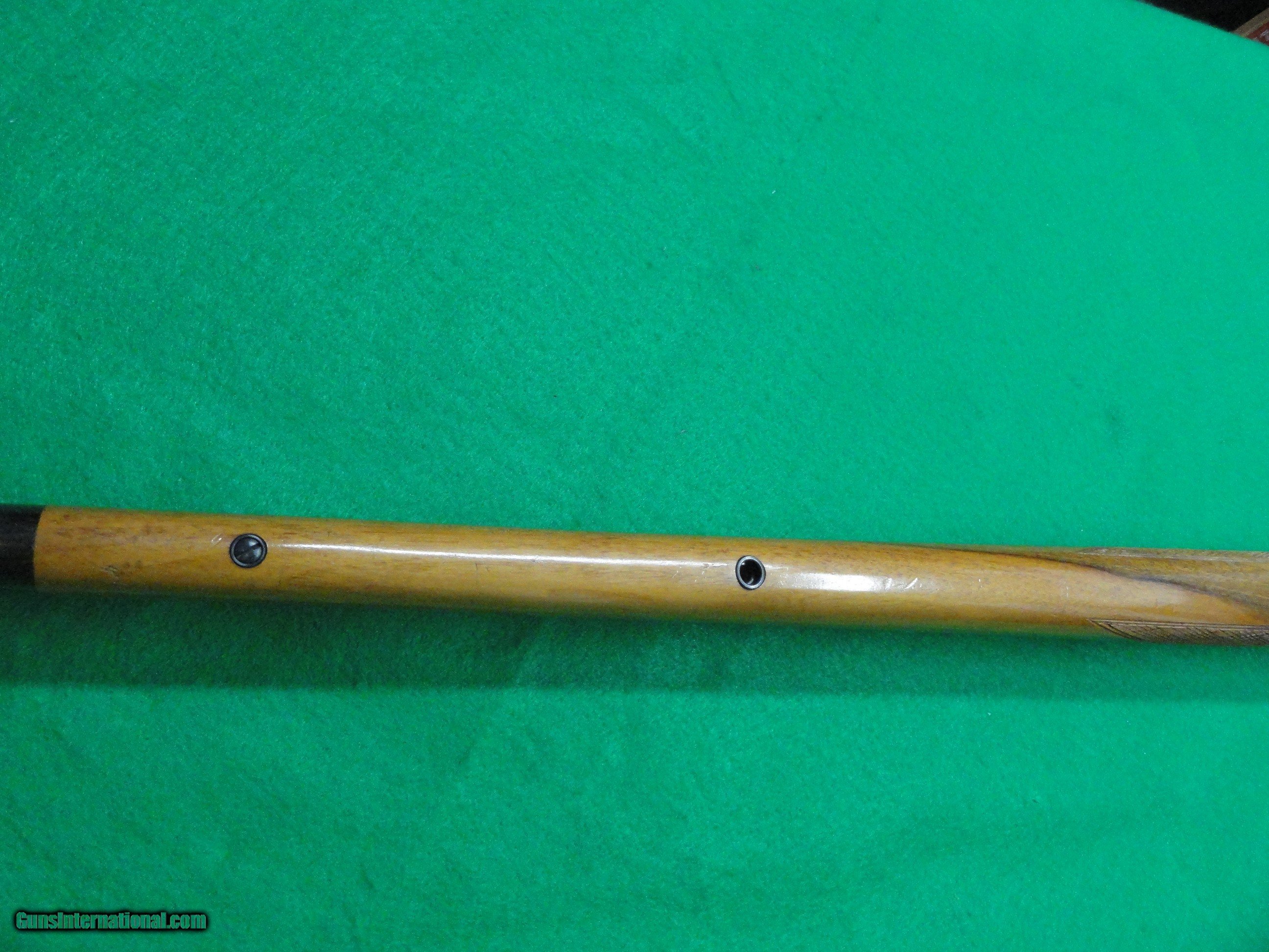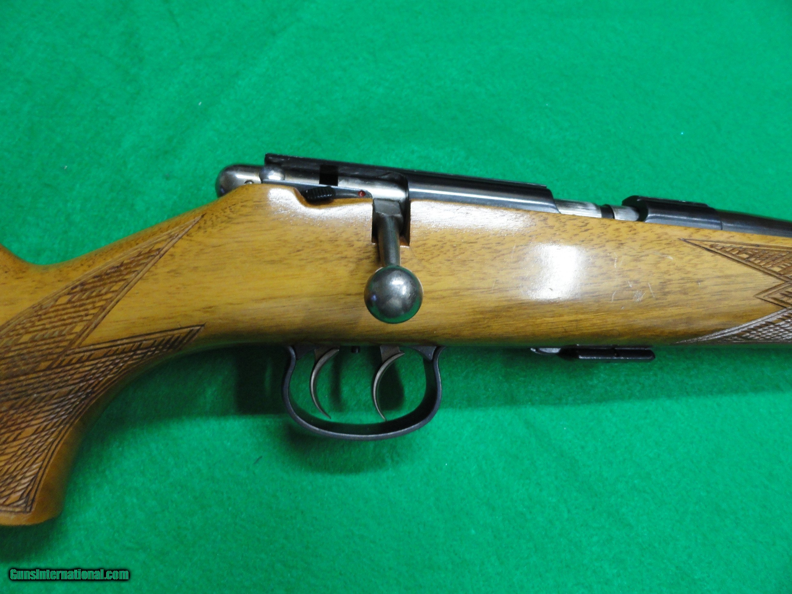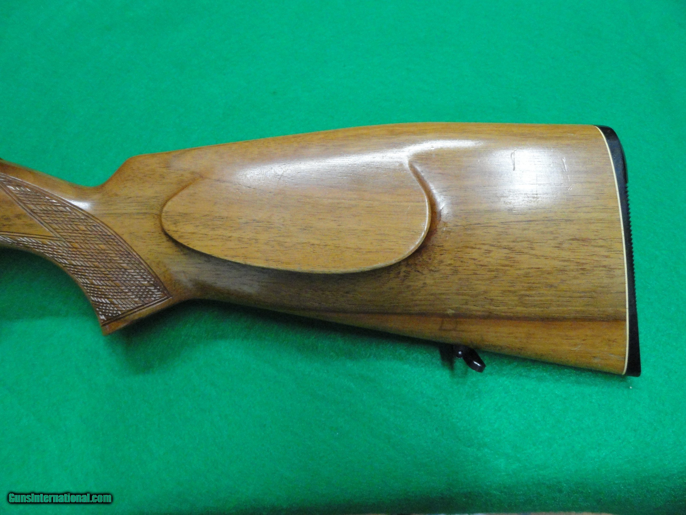 Description: For sale is an Anschutz 1418 Hunting Model (not Sporter) with Full Mannlicher Monte Carlo stock, fine checkering and nice light colored wood grain. Manufactured in 1971 this firearm is in Factory Original condition, with some light scratches and compression marks, but still excellent condition for a 50+ year old firearm. Metal is excellent on the receiver and 20" barrel. The butt plate, sights and 5 shot magazine are factory original. The factory box and documents are absent, but the firearm will ship in a hard plastic case. The Double Set Triggers add to the inherent accuracy of these legendary rifles. Easily add a scope to the factory dovetail groves. Overall length is 38" and LOP is 14 1/2" to secondary (front) trigger. Must ship to your FFL, who will accept shipments from Private Collectors. Offer for sale is valid only where legal, it is your responsibility to know the gun laws that affect you, the purchaser. Payment is by USPS Money Order or similar. I am a Private Collector not able to accept Credit Cards, Thank you for your interest. Feel free to call or write for more information. SOLD Rifle Caliber: .22 Long Rifle Manufacturer: Anschutz Model: 1418 Barrel Length: 20 |