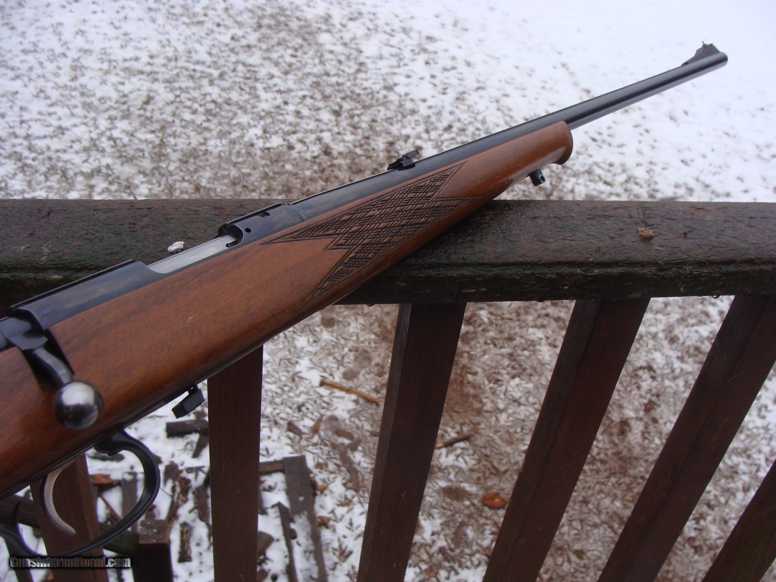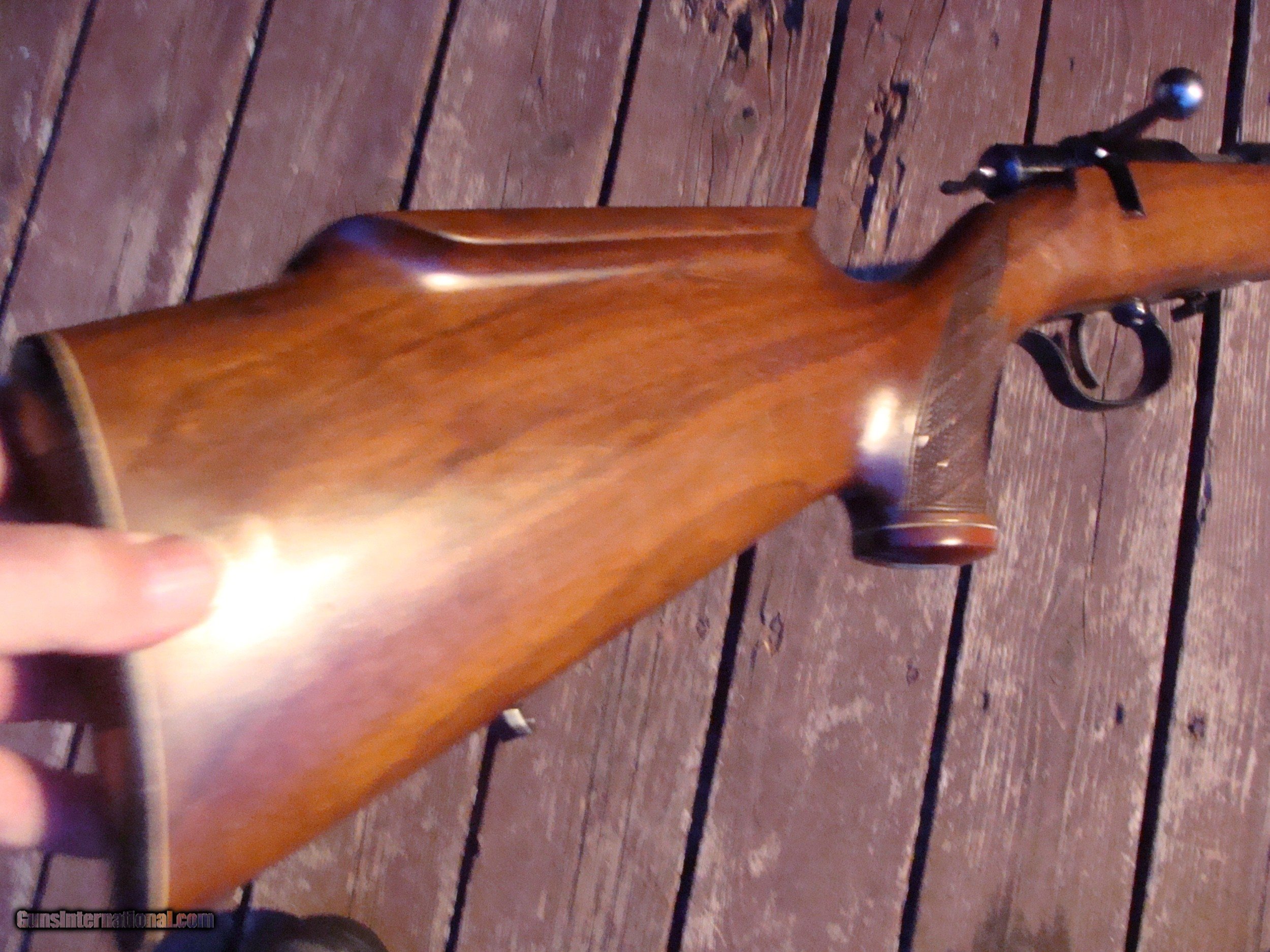 Description: Hard to find in this caliber; ideal varmint cal for more densly poplulated areas where a hotter round with respect to noise or distance carried is an issue. Readily avail ammo, mild report and accurate (Early Varmint Cal) Fine quality W. German workmanship, known for accuracy. This is one of the more deluce models similar to Meister Grade with handsome Euor Walnut Stock, skip line checkering (match grade action) Rosewood PG cap with white inlay and distinctive roll over cheeck piece. This gun has been carried and used but not abued. No pitting or loss of clue on barrel or action. There are several compression marks on stock and some brusing underside of forend where it was rested while shooting from a bench or rest but elsewhere no scratches (only compression marks and none penetrate the hard finish (I can advise you on how to get these out) Trigger is perfect. These guns are often seen offered for amounts up to nearly 2k. We are offering this one at an almost unheard of price for any high grade Anschutz especially a Hornet. WE ARE LOCATED IN CT WHERE MANY FINE US MADE GUNS WERE PRODUCED AND WE OFTEN GET SOME FAIRLY HARD TO FIND AND HARDLY USED VINTAGE MODELS WE HAVE OVER 1500 SALES ON ALL SITES WITH AN A+ RATING ON ALL (WE ALSO KEEP AN INVENTORY OF OLDER PERIOD CORRECT SCOPES; CALL WITH NEEDS) WE MOSTLY PICK VERY CLEAN GUNS, PRICE THEM FAIRLY AND WORK WITH MODEST MARGINS WE ARE HAPPY TO TAKE CONSIGNMENT GUNS AND COLLECTIONS OR WILL BUY YOURS OUTRIGHT. WE SOMETIMES ARE EMPLOYED FOR ESTATE PURPOSES AND VALUATIONS. CT RESIDENTS MUST CONTACT US TO UNDERSTAND OUR IN STATE TRANSFER POLICIES. WE CAN TAKE A CREDIT CARD HOWEVER THERE IS A 3% ADD ON BASED ON THE TOTAL FOR USE OF A CARD. IT IS ALWAYS THE BUYERS RESPONSIBILITY TO GET US A COPY OF YOUR RECEIVING FFL'S LIC AND WE REQUIRE A COPY OF YOUR PHOTO ID BEFORE THE GUN SHIPS YOU MUST CALL YOUR FFL.WE DO NOT CALL FOR YOU. SHIPPING IS $ 45.00 TO MOST LOCATIONS SOLD |