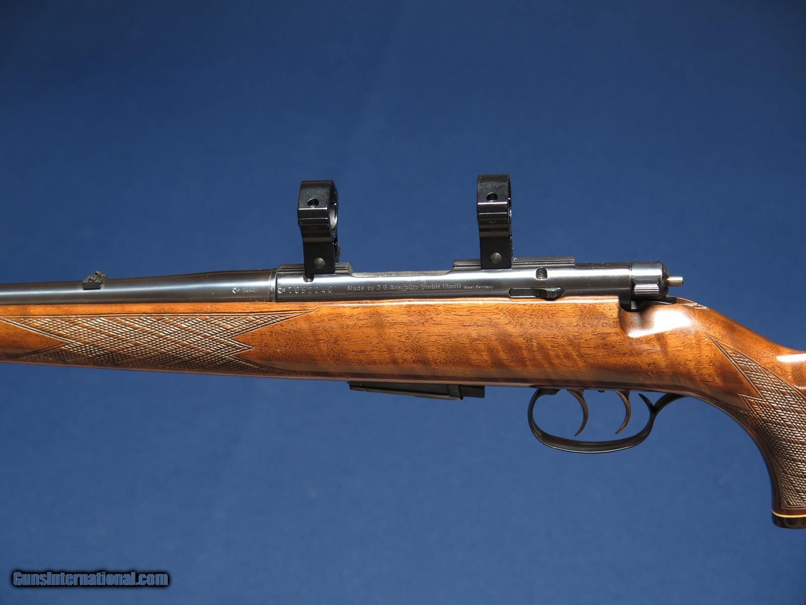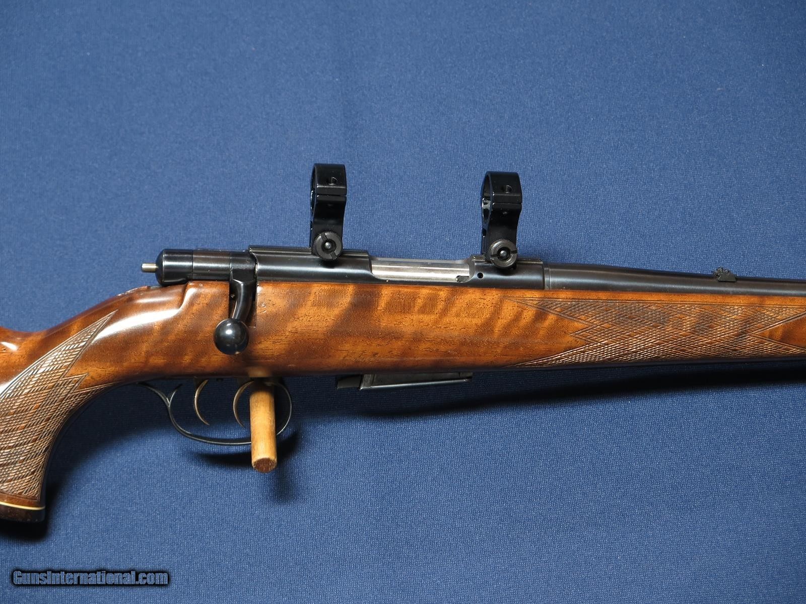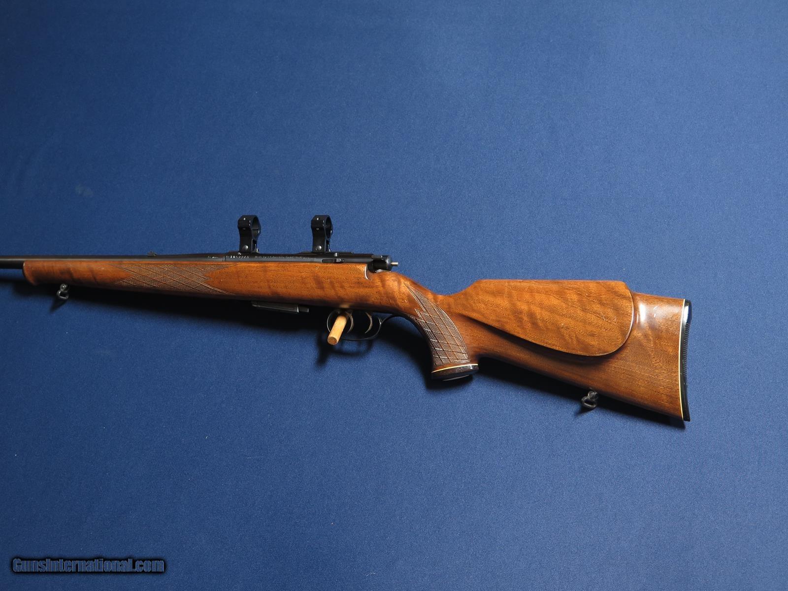Description: Anschutz 1431/32 22 Hornet. Double set triggers. 24 inch barrel. 1974 manf. Top of rear sight missing. With rings. 97%. Excellent bore. SOLD |