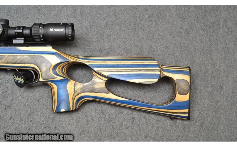 Description: This bolt action rifle is an Anschutz 1517 chambered for .17 HMR. This rifle features a target style bull barrel, a color laminated thumbhole stock, and a 5089 two-stage trigger. This rifle comes with one five round magazine, and a Vortex Diamondback 4-16x42mm rifle scope. .17 HMR SOLD Metal Condition: "Overall good condition, light scratching on top of barrel towards muzzle Wood Condition: Overall excellent condition Bore Condition: "Bright and shiny, crisp rifling Barrels: 23 inch target bull barrel Triggers: No. 5089 two-stage trigger Stock Dimensions: 14 in LOP Fore End: Colored laminate stock Butt Pad: 1/4 in black plastic butt plate Weight: 8 lbs 6 oz Sights: Vortex Diamondback HP 4-16x42 Item Location: Wichita, KS |